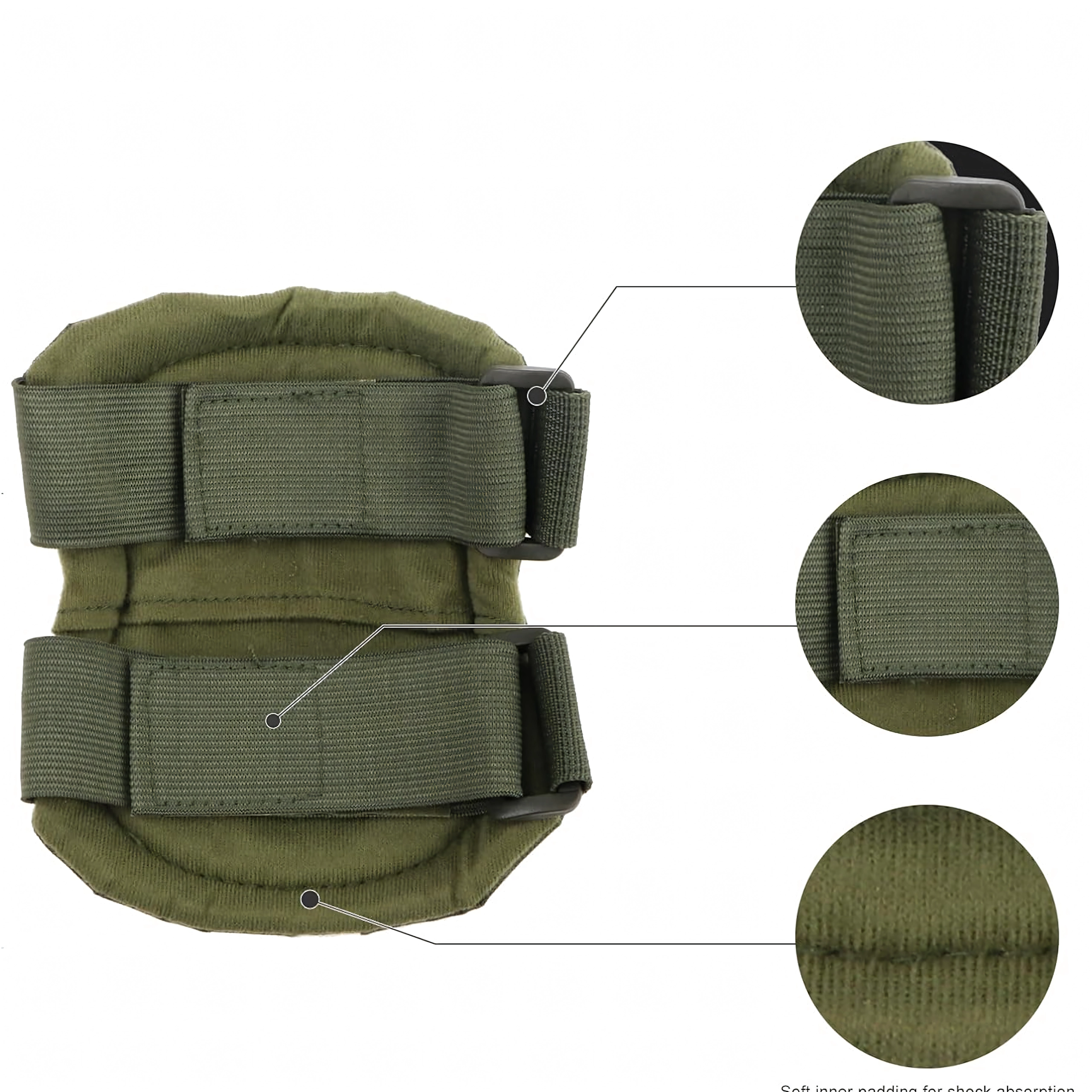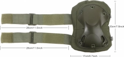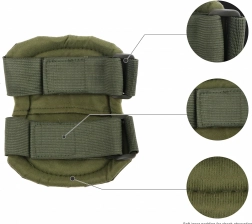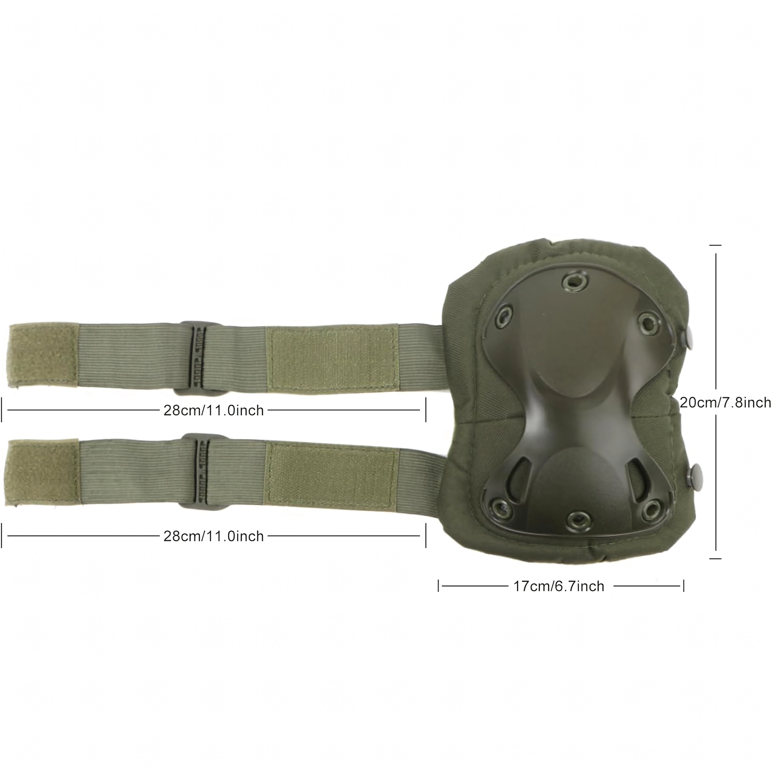Chrániče sa upevňujú pomocou elastických popruhov s možnosťou presného dotiahnutia. Nitované spojenie zvyšuje odolnosť proti vytrhnutiu, zatiaľ čo rýchloupínacie spony umožnia bleskové nasadenie a zloženie bez opätovného nastavovania dĺžky páskov. Vhodné pre airsoft, paintball, cyklistiku, skate/kolobežku/inline, outdoor aj ľahké pracovné činnosti.