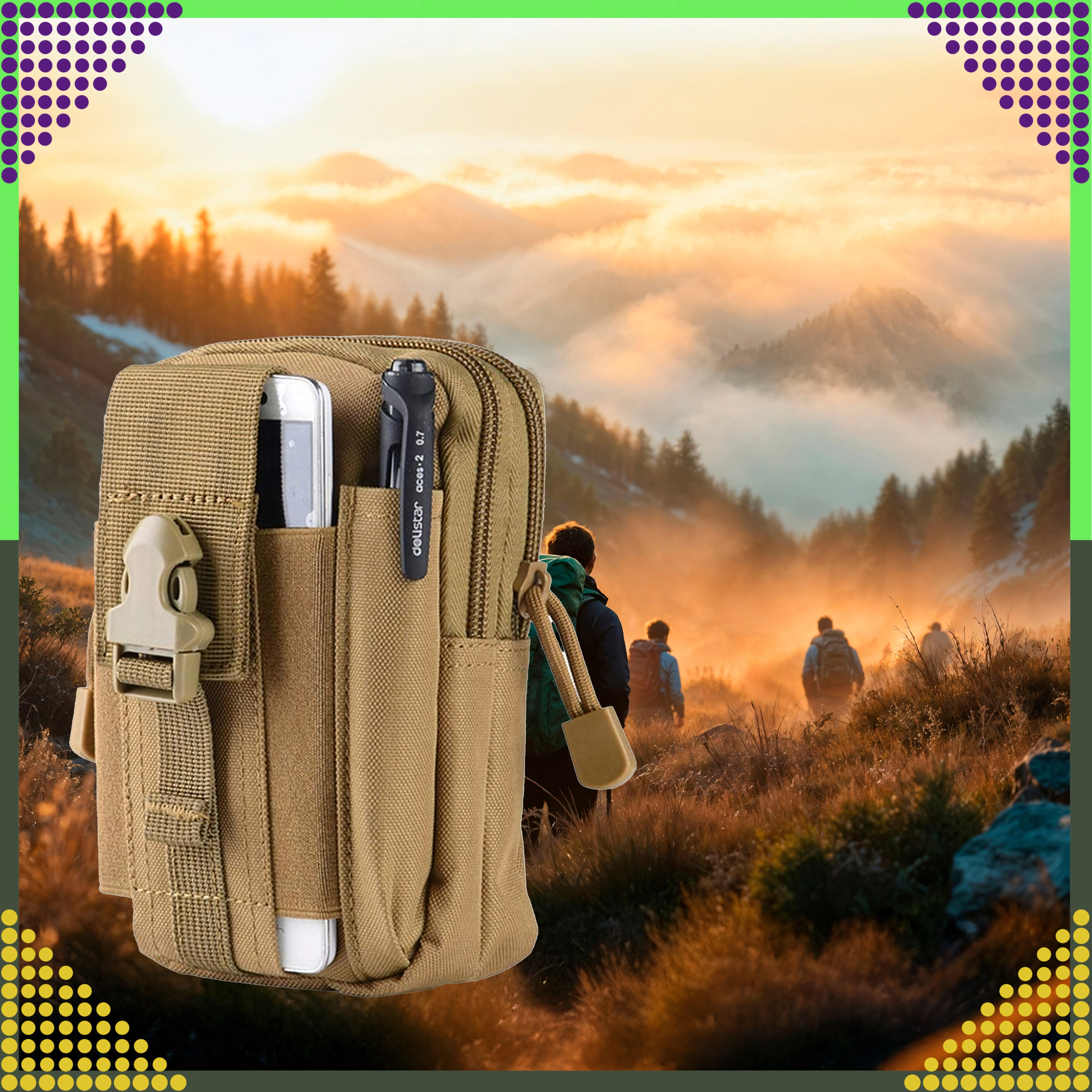 Tento univerzálny outdoorový organizér v hnedej farbe udrží vaše nevyhnutnosti prehľadne a bezpečne na dosah. Vďaka systému MOLLE ho ľahko pripnete na opasok, batoh alebo taktickú výstroj. Dve priestranné hlavné komory na zips, predné vrecko na telefón a bočné pútka na ceruzku/flashlight zabezpečujú rýchly prístup a skvelú organizáciu.