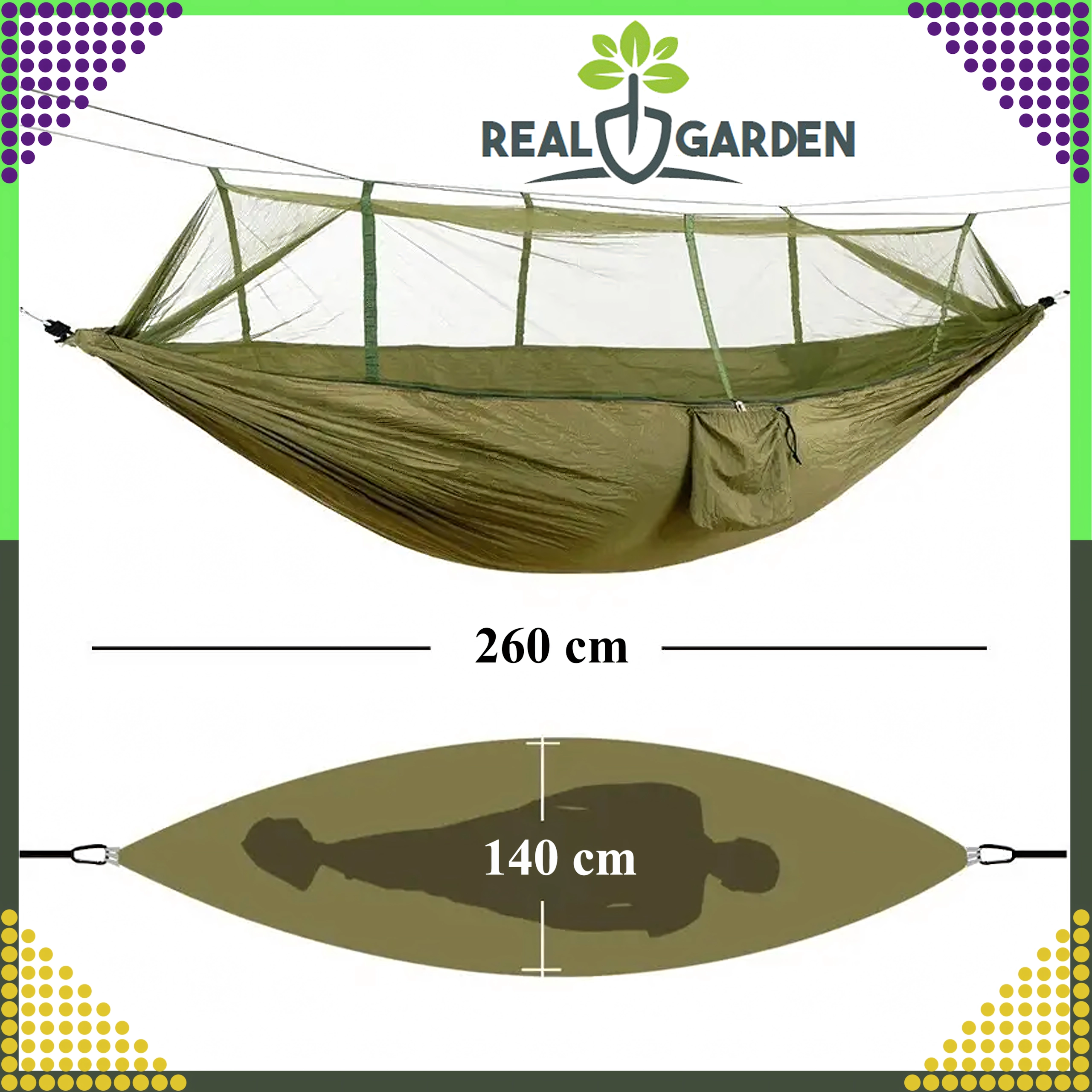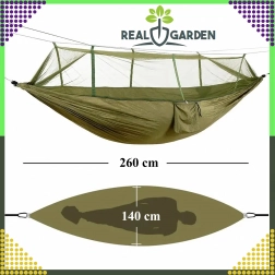 Integrovaná moskytiéra vás spoľahlivo ochráni pred hmyzom, takže si vychutnáte pokojný spánok aj v prírode. Vďaka rozmerom 260 × 140 cm poskytuje dostatok priestoru a nosnosť 180 kg zaručuje bezpečné používanie.