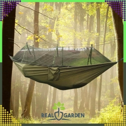 Hamak s moskytiérou je ideálnou voľbou na kempovanie, výlety aj leňošenie na záhrade. Ľahký a priedušný nylon zaisťuje pohodlie aj pri dlhšom používaní a vďaka rýchlej inštalácii ho ľahko zavesíte medzi stromy či stĺpiky pomocou šnúr a karabín.