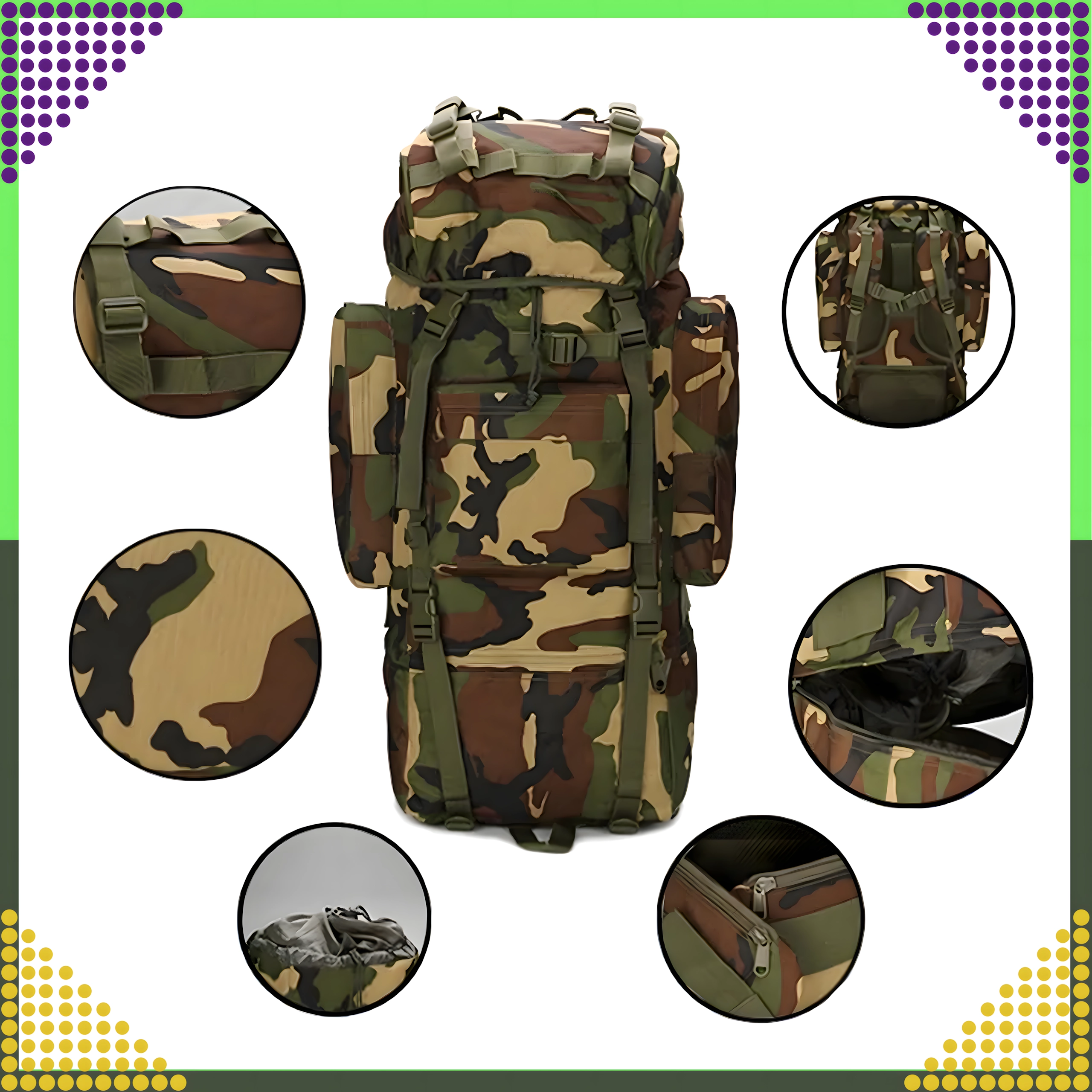 Hľadáte spoľahlivý batoh do hôr, na kemp alebo dlhšie výpravy do prírody? Tento taktický batoh s kapacitou 65 l kombinuje vysokú odolnosť, komfort nosenia a praktické členenie. Hlavnú komoru s rukávom dopĺňajú predné a bočné vrecká na zips, takže všetko podstatné máte rýchlo po ruke.