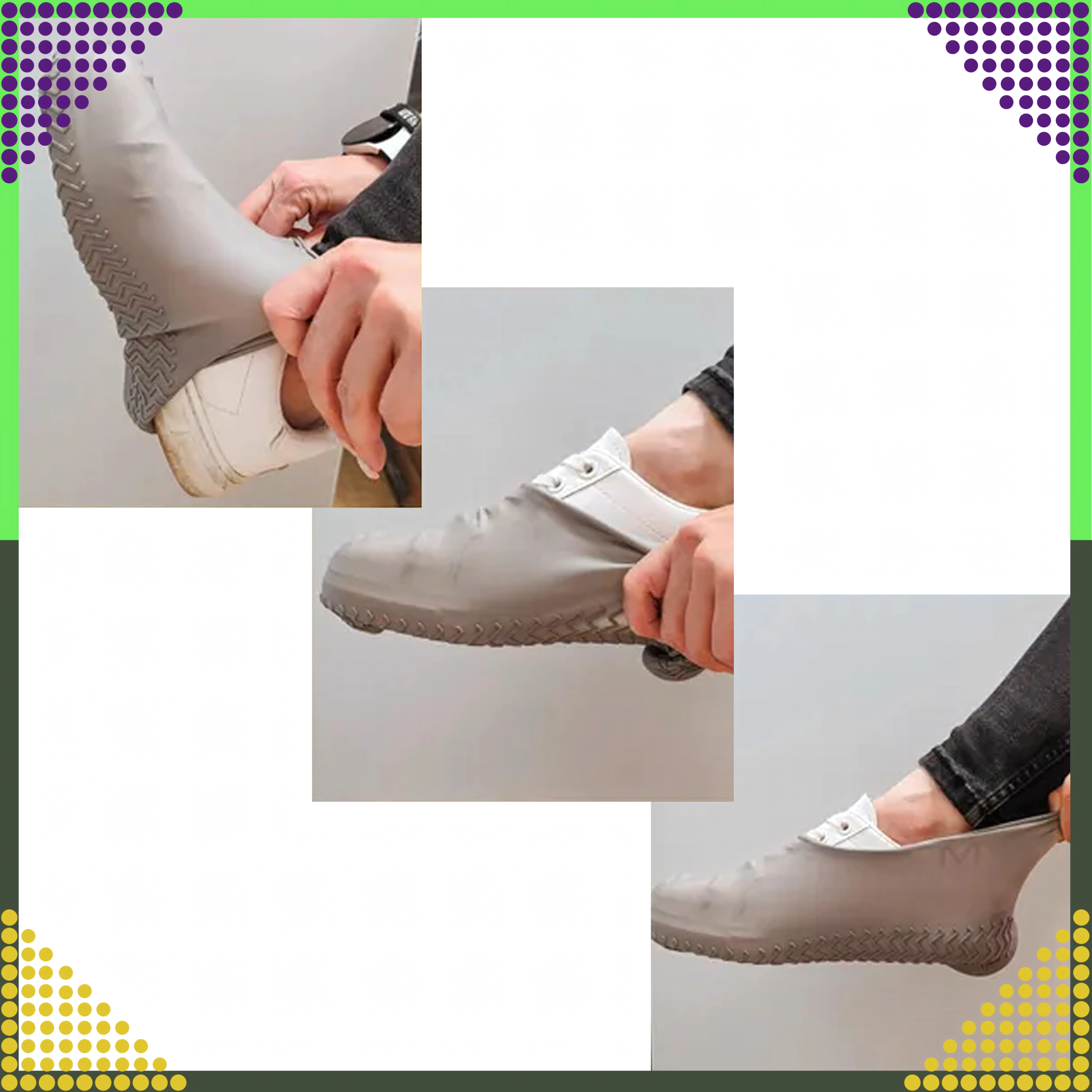 Vyrobené z vysokokvalitného, pružného silikónu pre pohodlné nosenie, dlhú životnosť a jednoduché čistenie. Návleky sú ľahučké, skladné a ideálne do kabelky či batohu – majte ich poruke pri nečakanom daždi, na cestách aj pri každodennom dochádzaní.