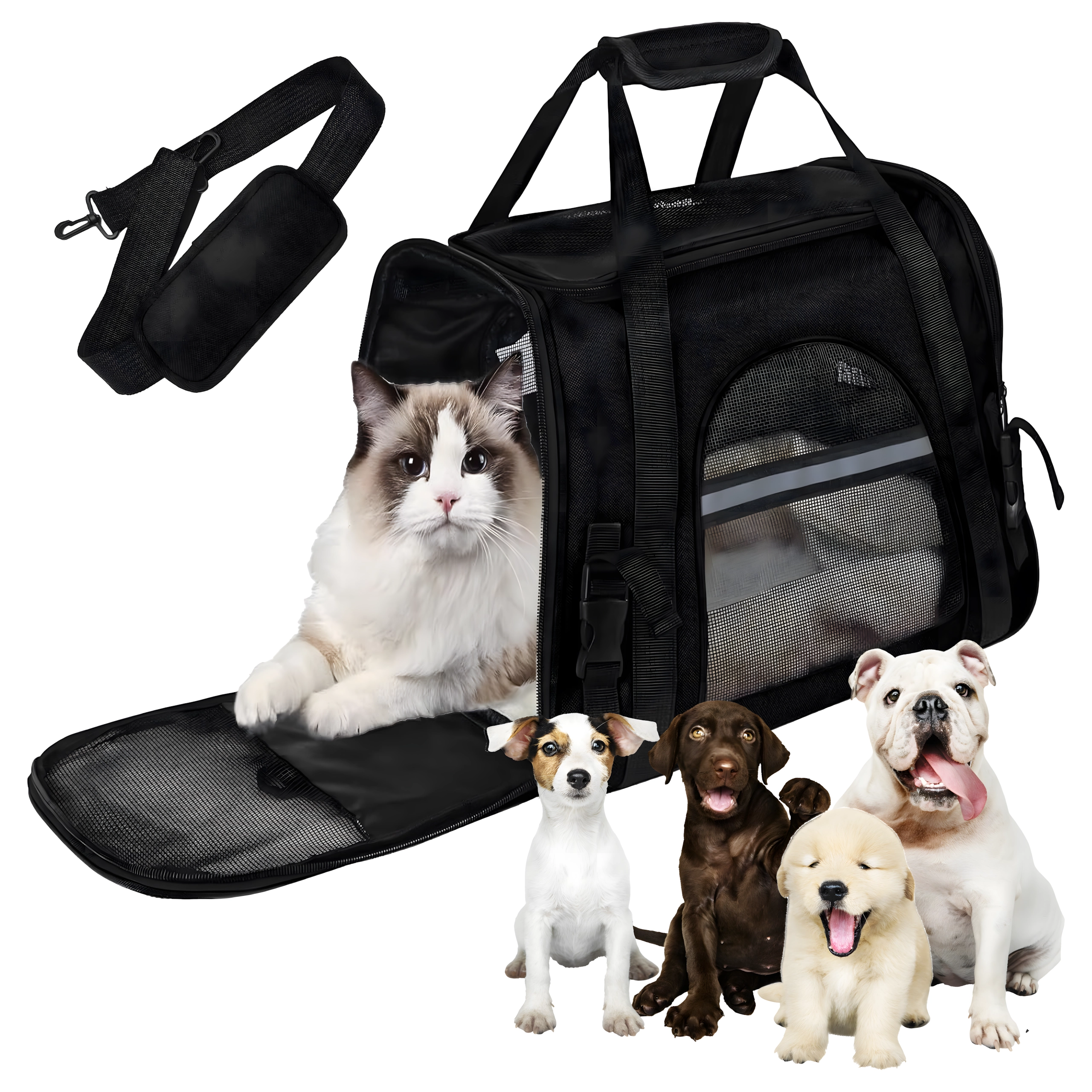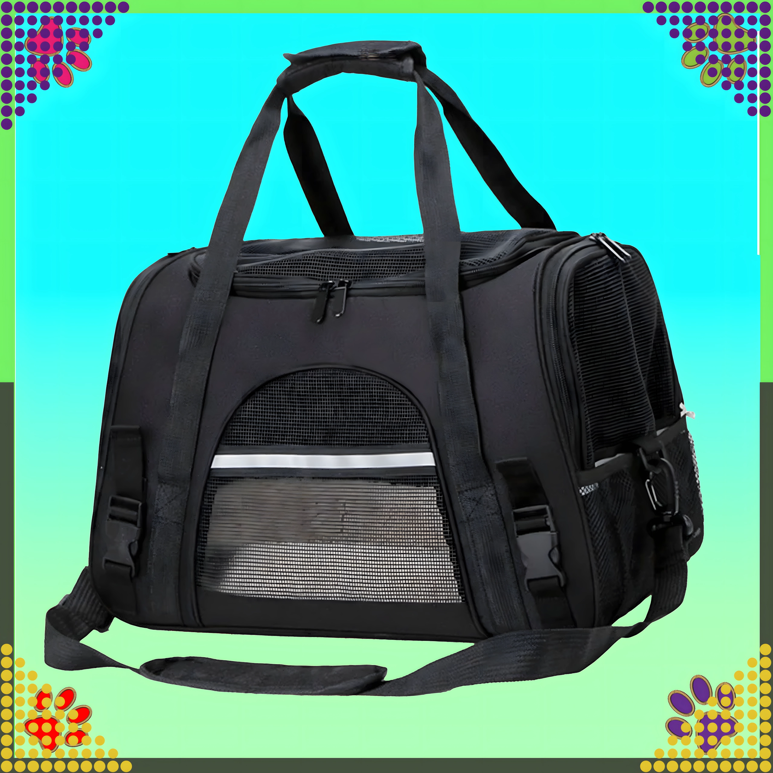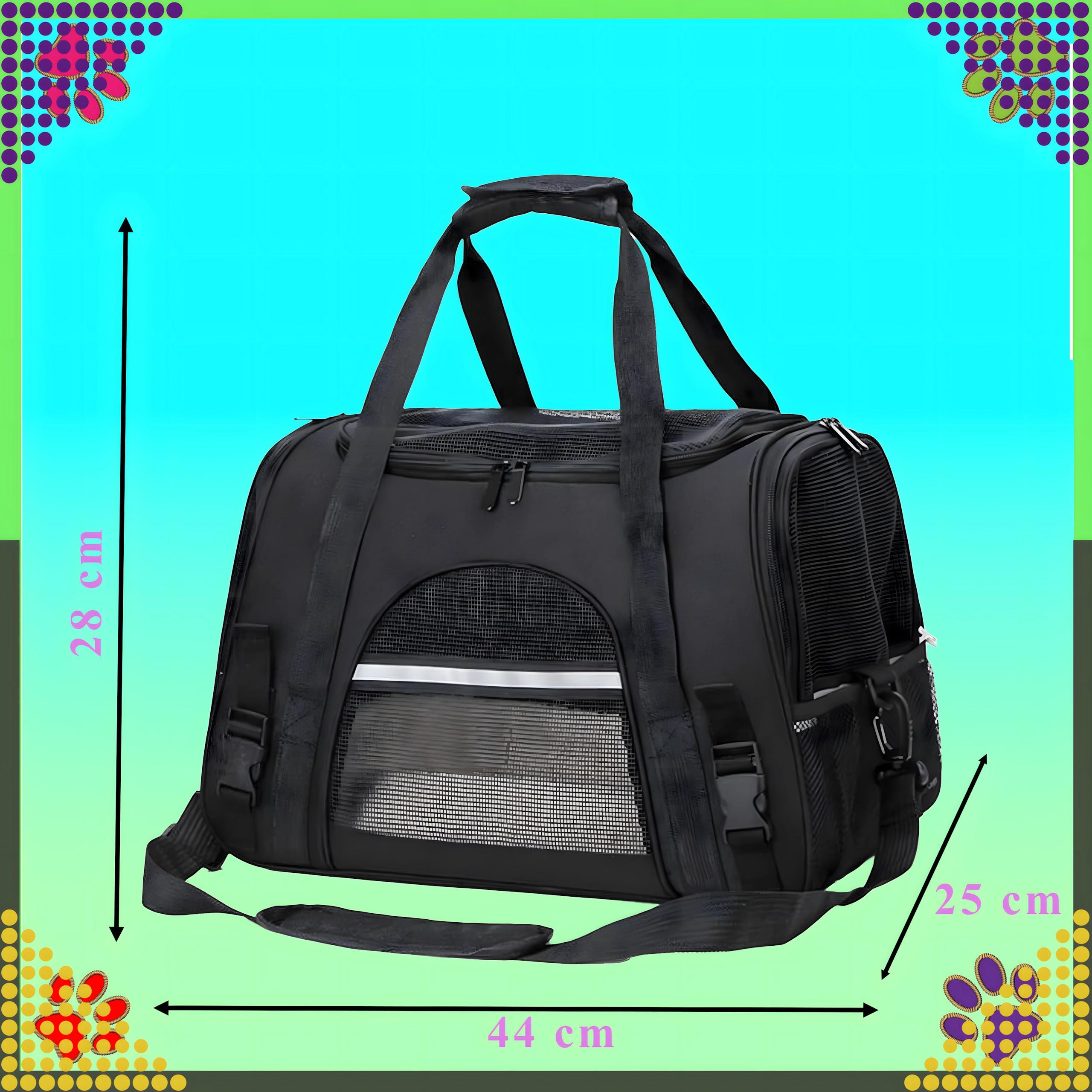 Spoľahlivý spoločník na cesty pre vášho psa, mačku alebo drobné zvieratá. Tento priestranný a stabilný transportér je vyrobený z kvalitného polyesteru, ktorý neabsorbuje nepríjemné pachy a je ľahko umývateľný. Poskytuje bezpečné a pohodlné miesto pre zviera počas prepravy autom aj verejnou dopravou.