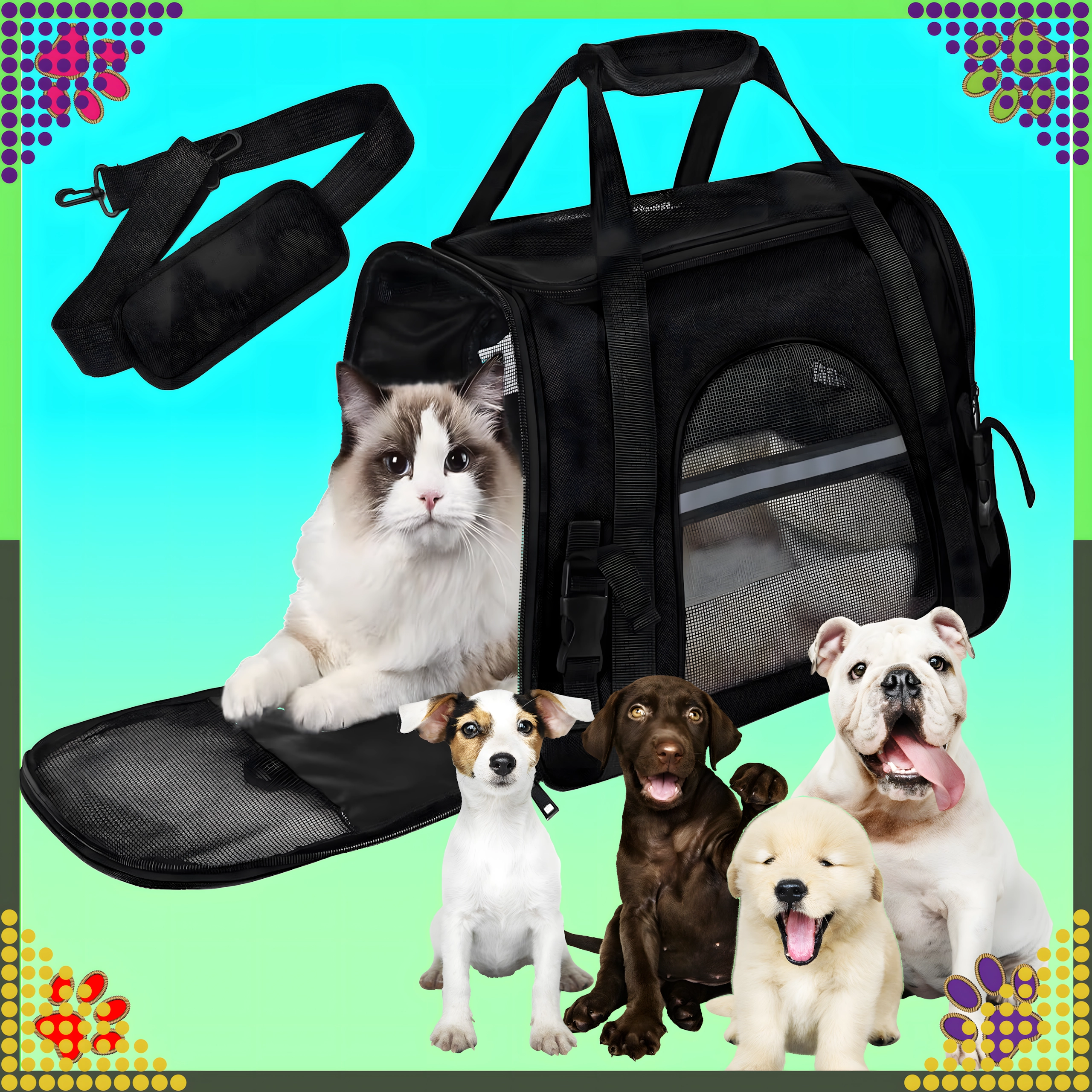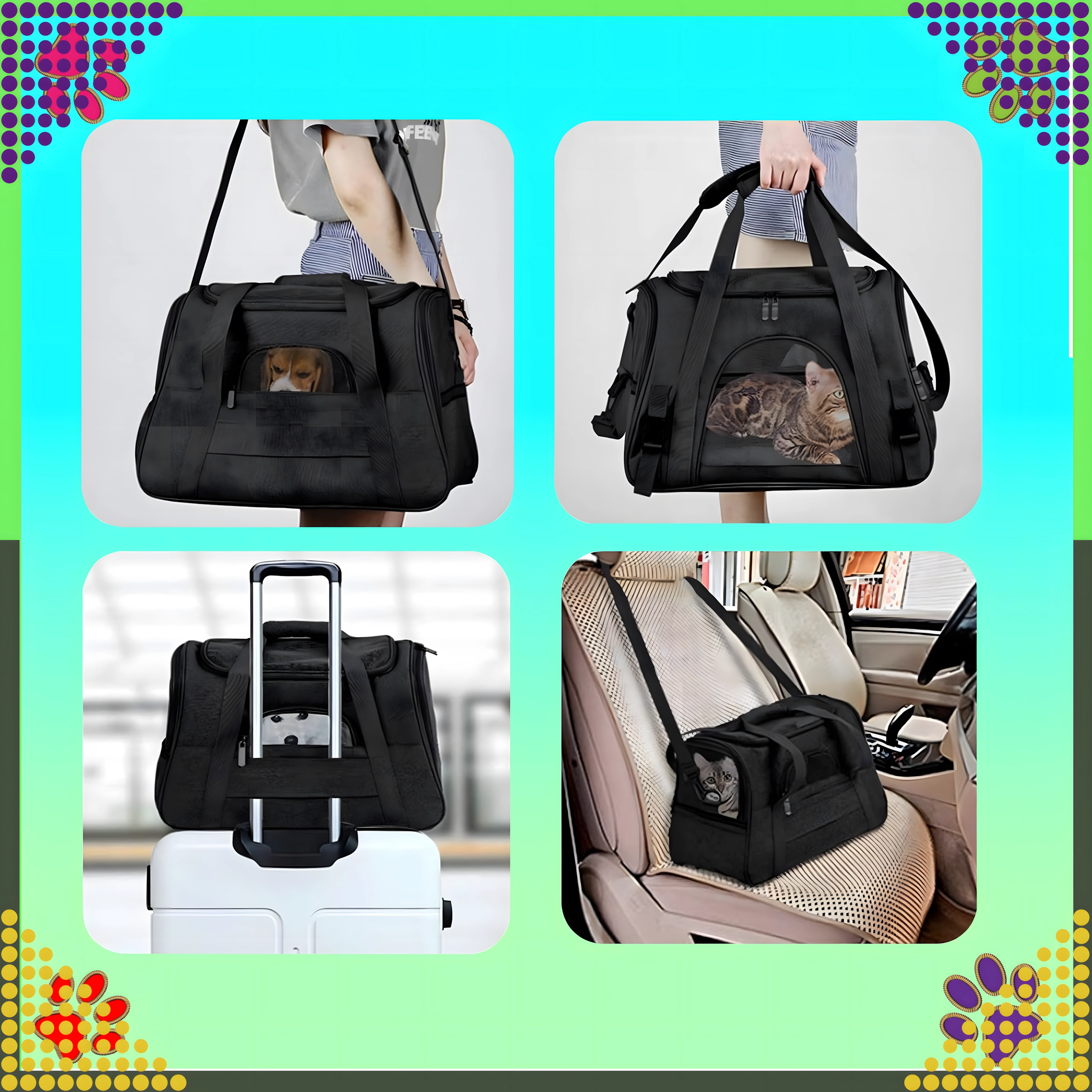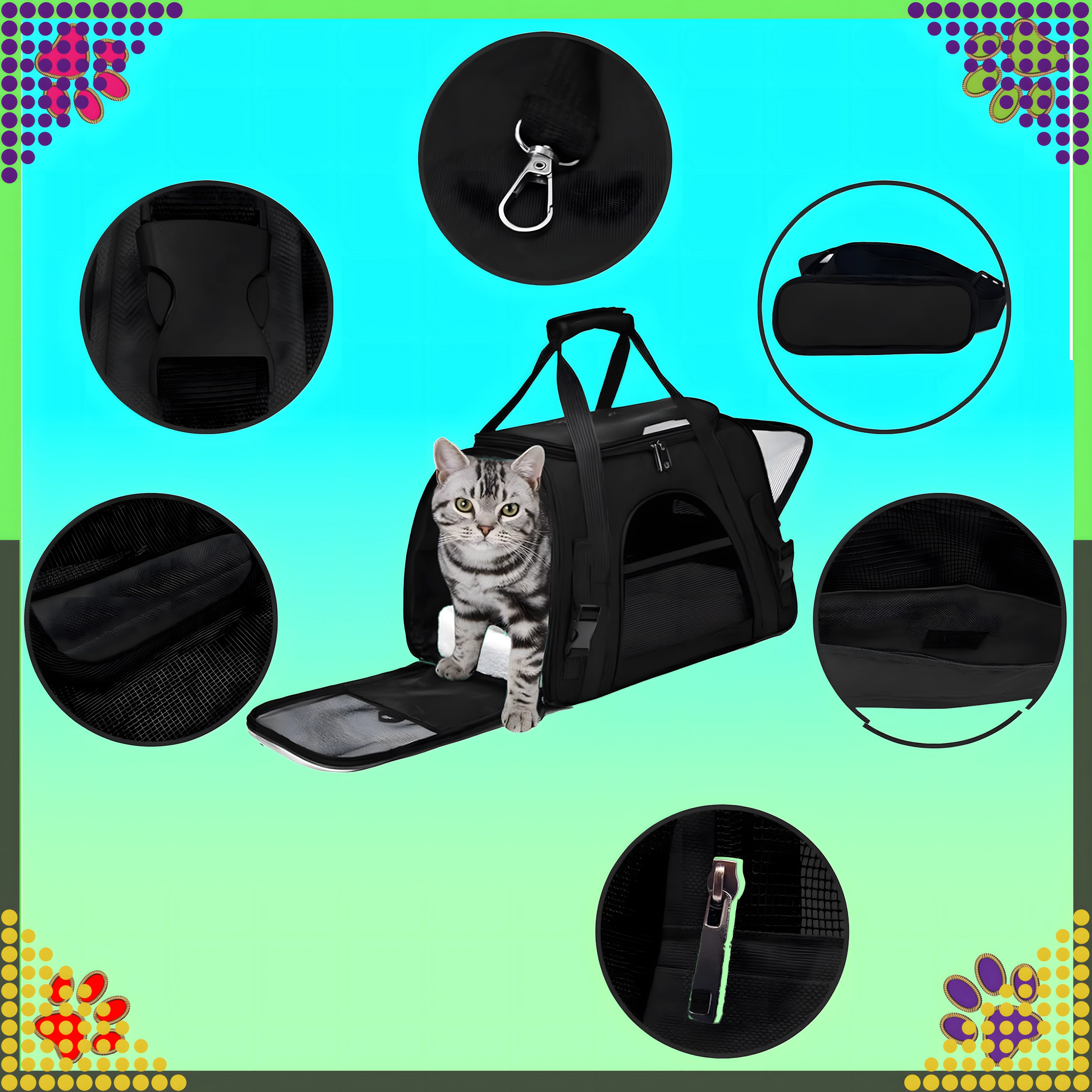Spoľahlivý spoločník na cesty pre vášho psa, mačku alebo drobné zvieratá. Tento priestranný a stabilný transportér je vyrobený z kvalitného polyesteru, ktorý neabsorbuje nepríjemné pachy a je ľahko umývateľný. Poskytuje bezpečné a pohodlné miesto pre zviera počas prepravy autom aj verejnou dopravou.