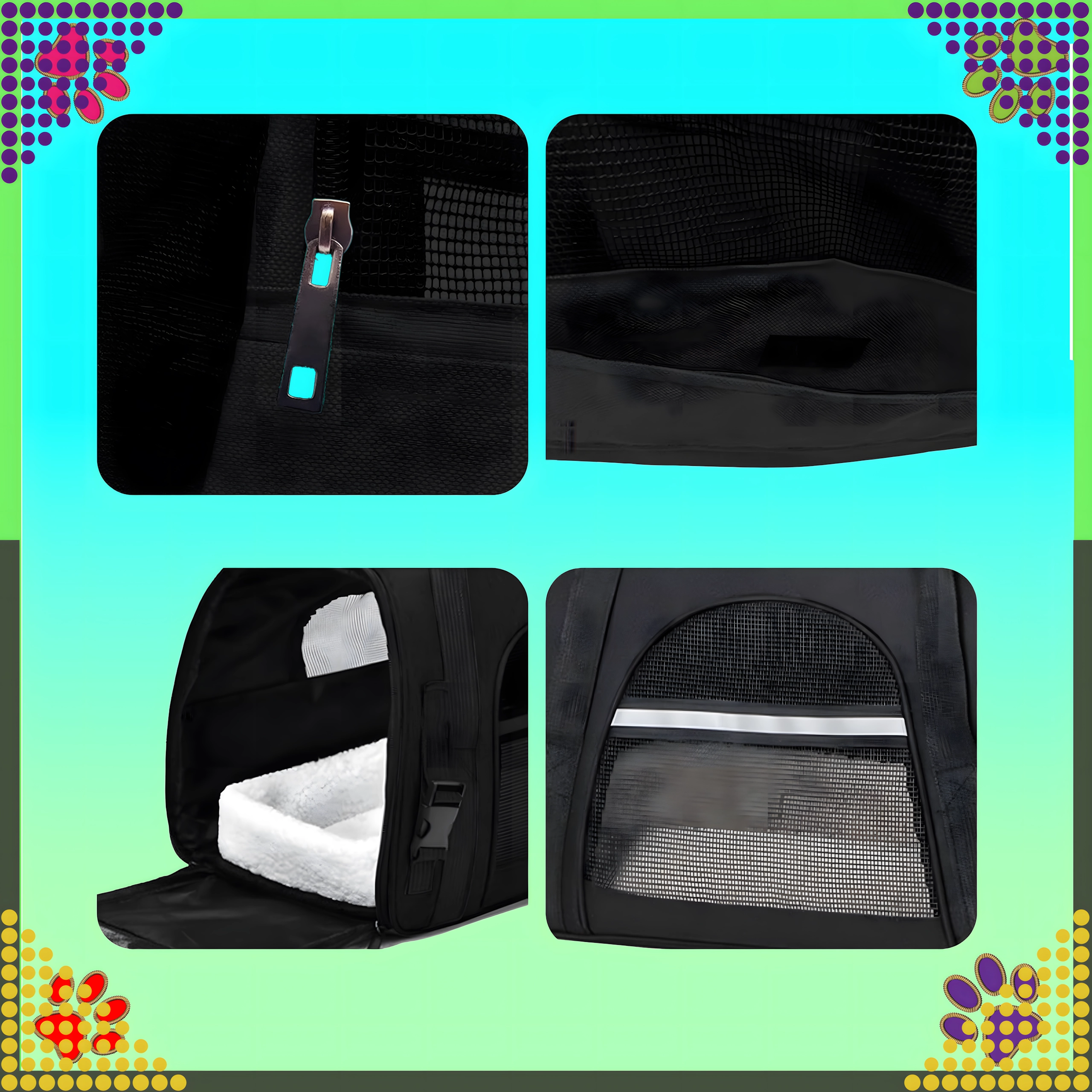 Vďaka praktickému spracovaniu a univerzálnym rozmerom ponúka dostatok priestoru pre miláčika aj jeho obľúbené maškrty a hračky. Materiál je odolný proti škvrnám a poškodeniu, takže sa hodí na každodenné používanie aj dlhšie cesty.