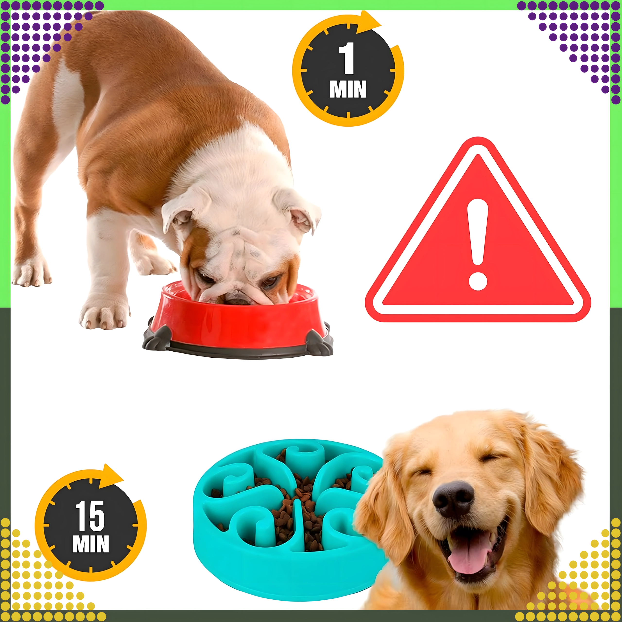 Vyvýšené kanáliky a priečky vytvárajú labyrint, ktorý zviera núti jesť pomalšie. Tým sa znižuje hltanie, podporuje lepšie trávenie a obmedzuje riziko obezity.