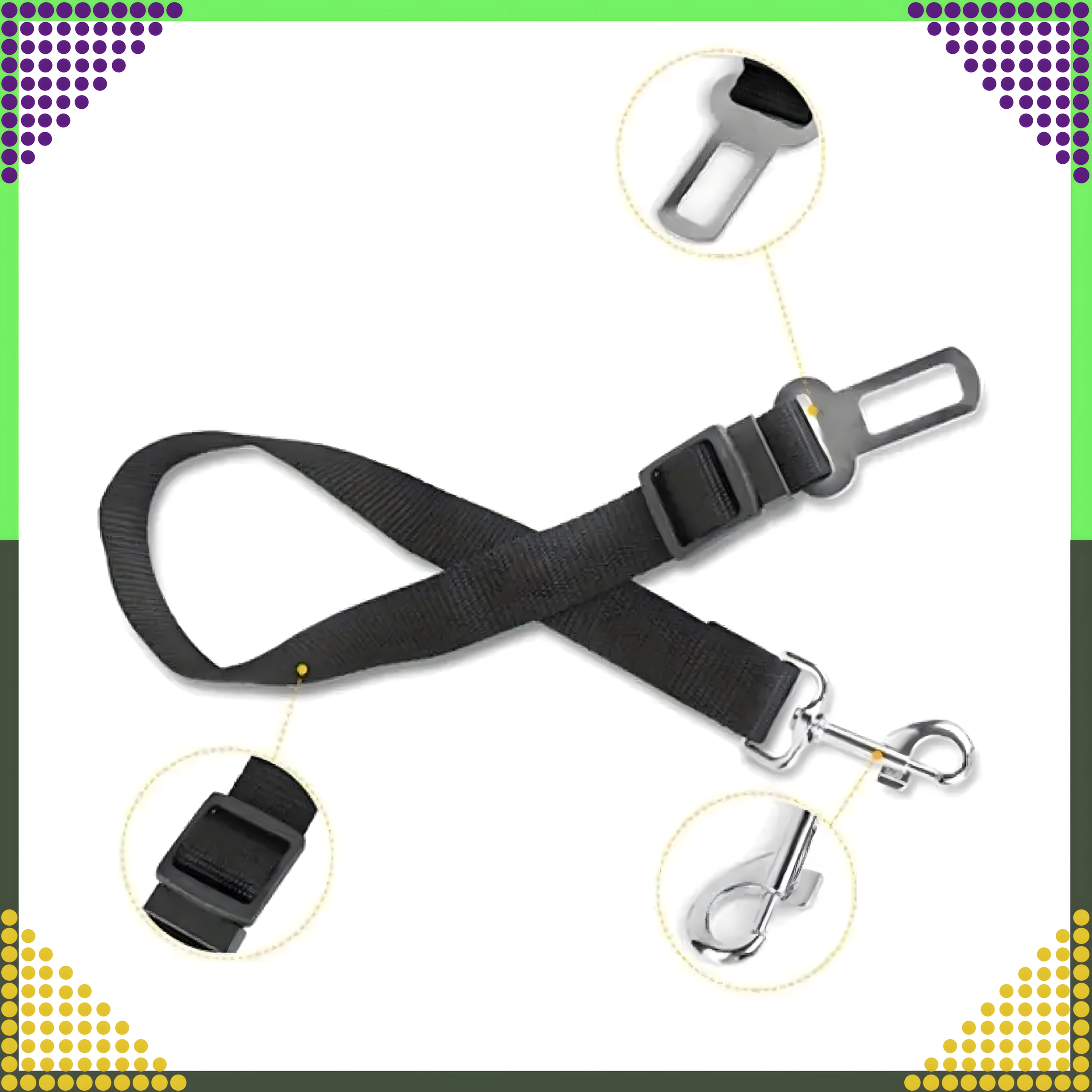 Odolný nylonový popruh a kovové komponenty zaisťujú spoľahlivosť pri každej jazde. Riešenie je kompatibilné s väčšinou automobilov a pomáha udržať interiér vozidla aj cestovanie pokojné a bezpečné.