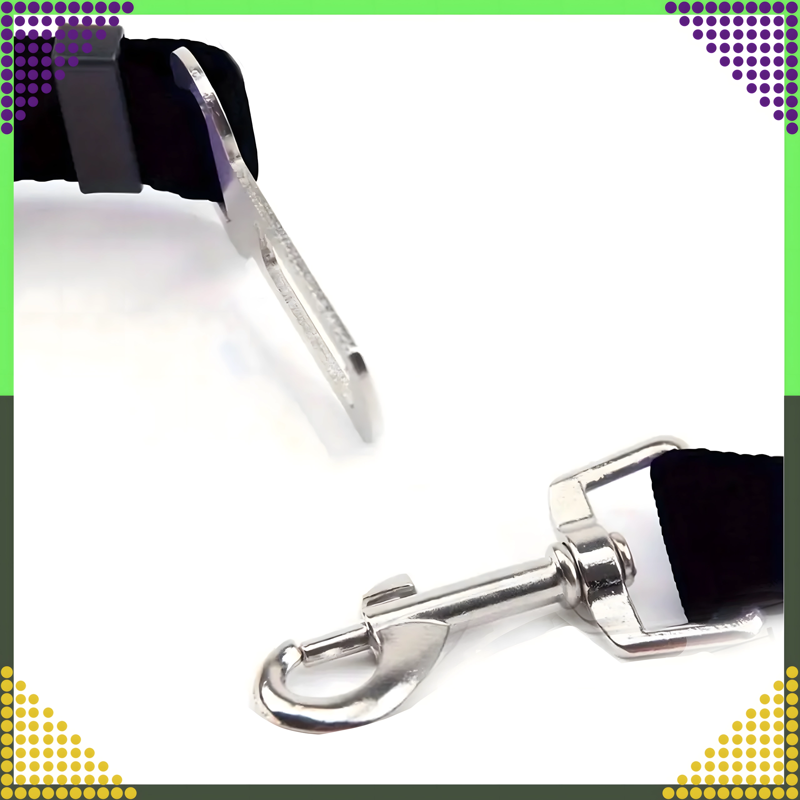 - Komfort a odolnosť – pevný nylon, kovová pracka a otočný karabín proti prekrúteniu.