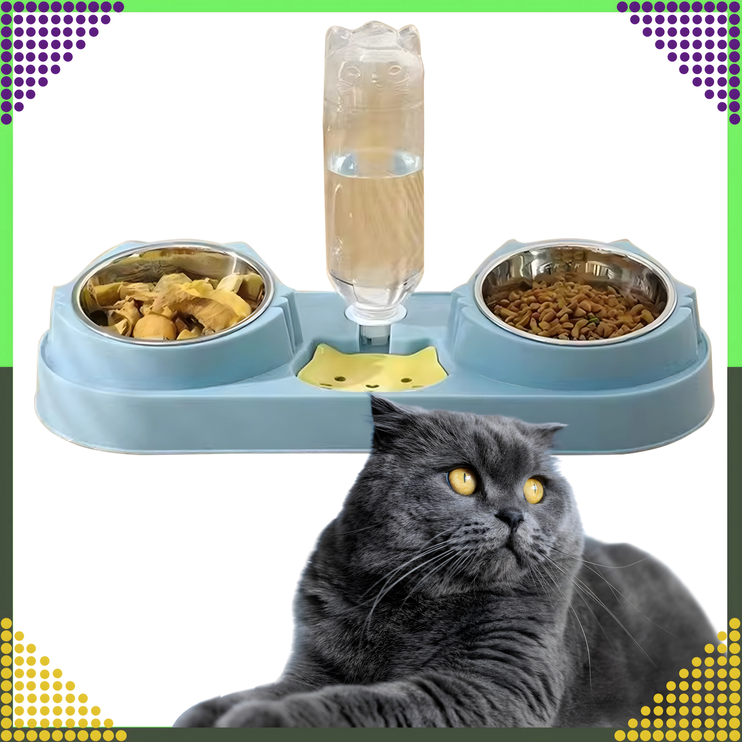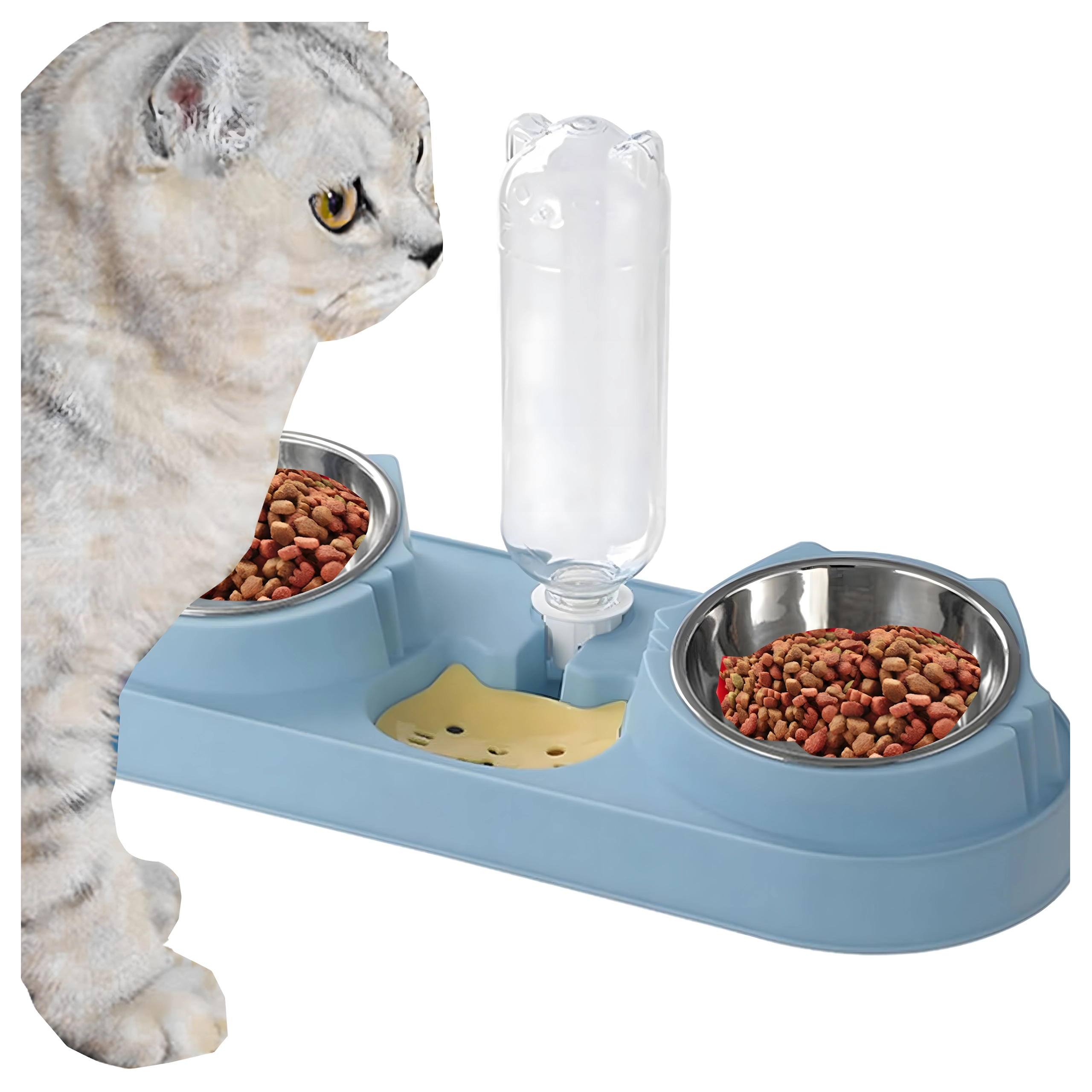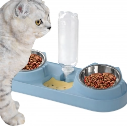 Táto dvojitá miska s automatickou napájačkou je ideálna pre psy aj mačky. Dve vyberateľné nerezové misky (každá s objemom 220 ml) umožňujú oddelené servírovanie mokrého a suchého krmiva, zatiaľ čo gravitačný dávkovač priebežne dopĺňa zásobník na vodu. Odolná plastová základňa v elegantnej modrej farbe je stabilná a nenáročná na údržbu.