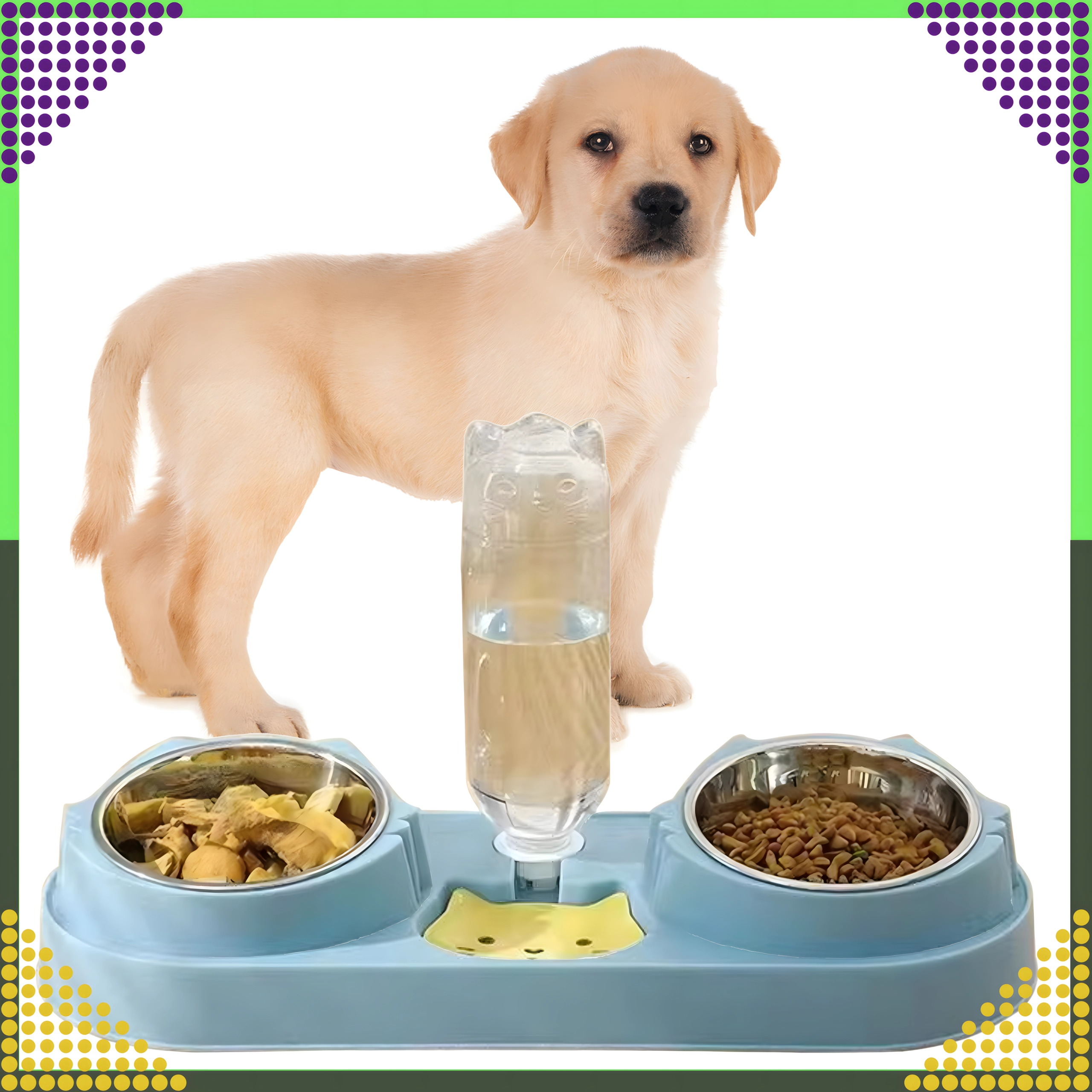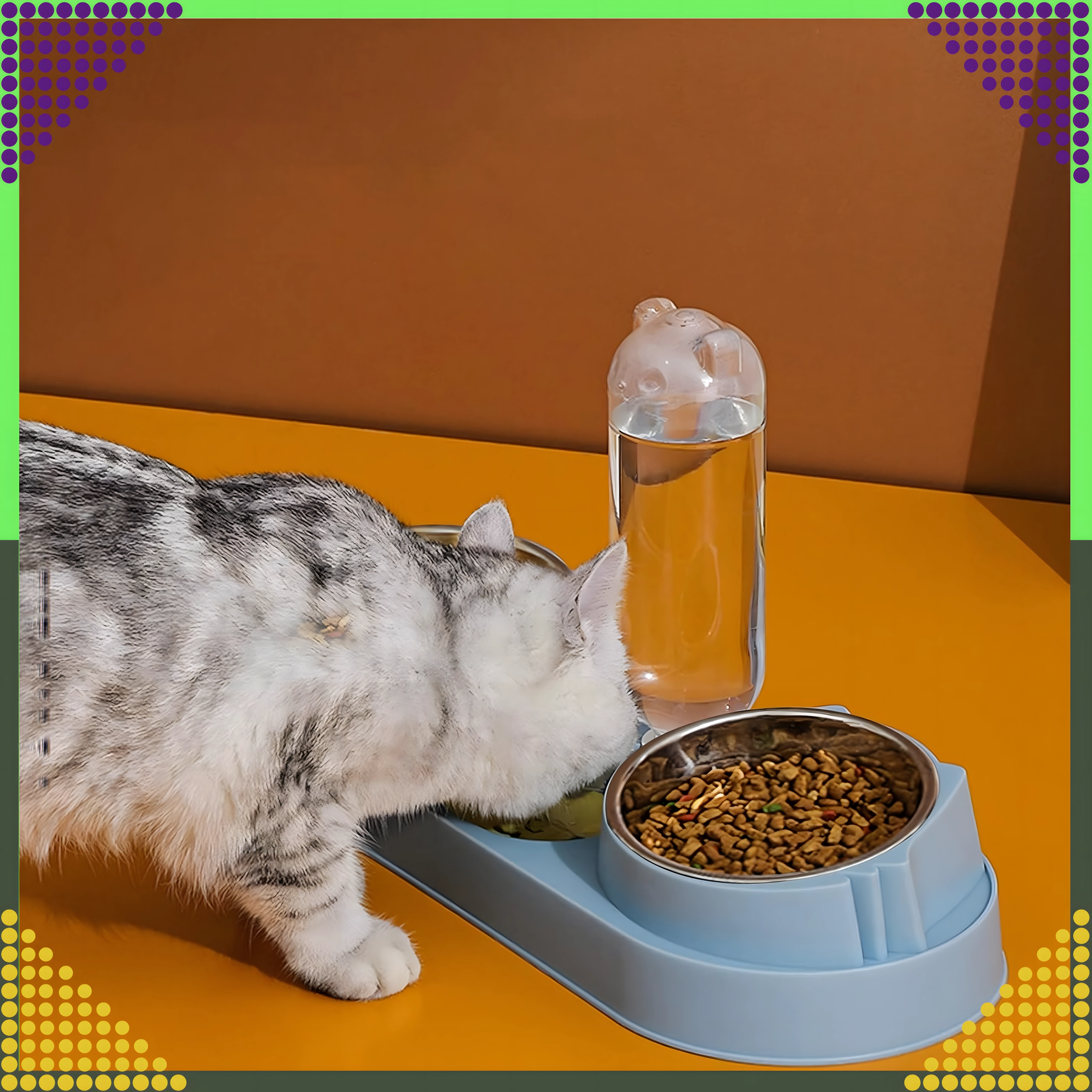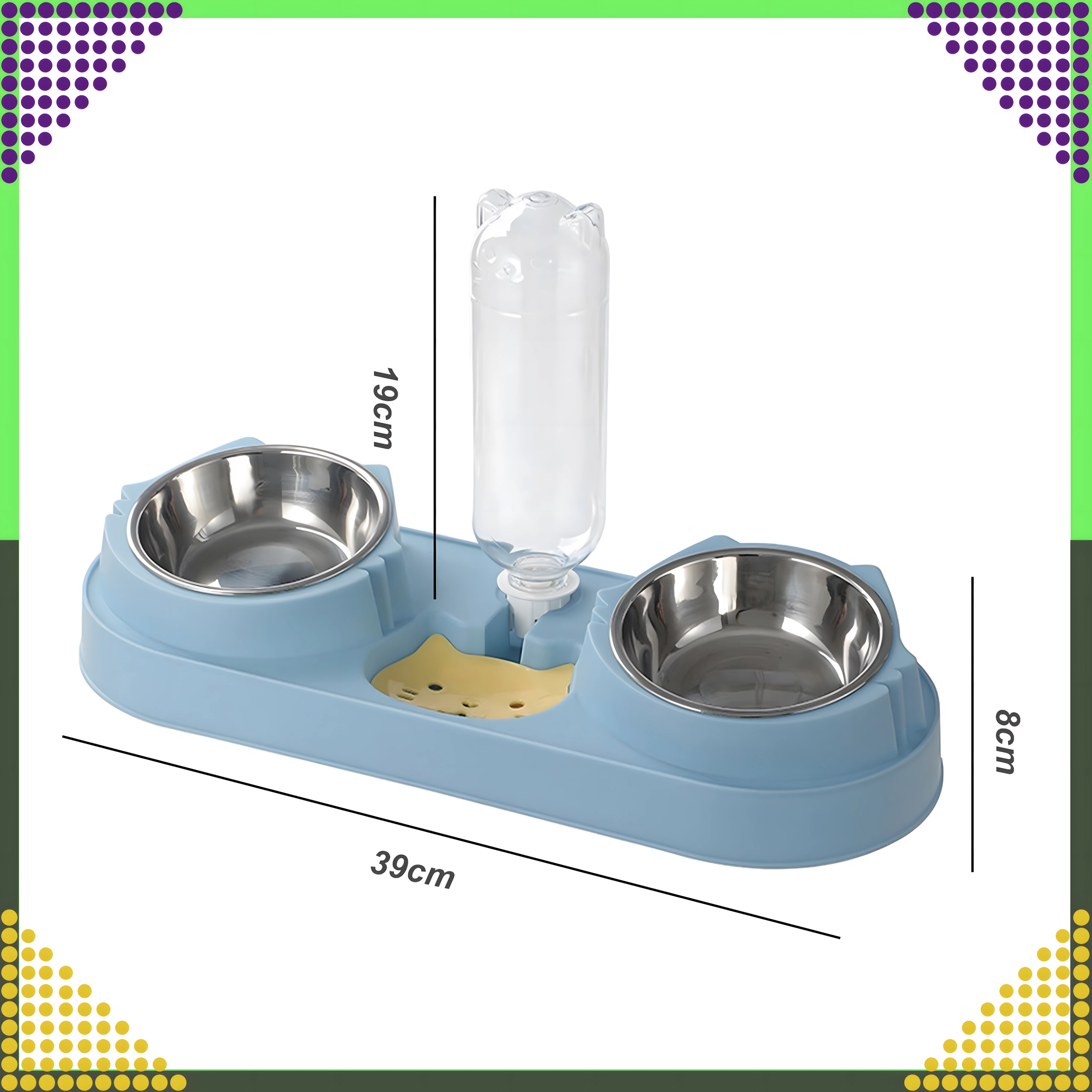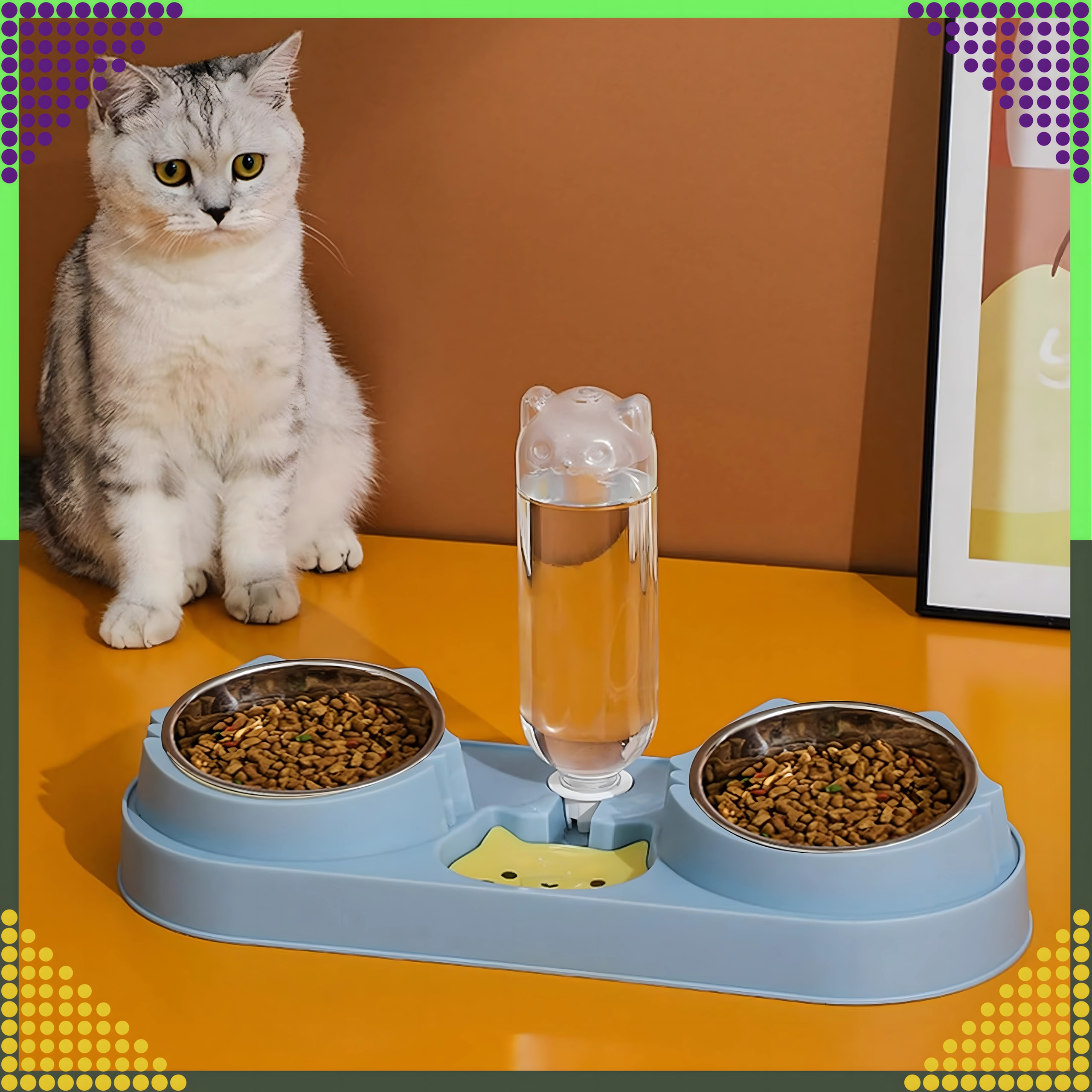 Praktická dvojitá miska pre domácich miláčikov s integrovaným dávkovačom vody zabezpečí súčasné podávanie krmiva aj čerstvej vody. Vyberateľné nerezové misky uľahčujú rýchle čistenie, stabilná základňa bráni prevráteniu a gravitačná napájačka udržiava vodu čistú a dostupnú aj počas vašej neprítomnosti.