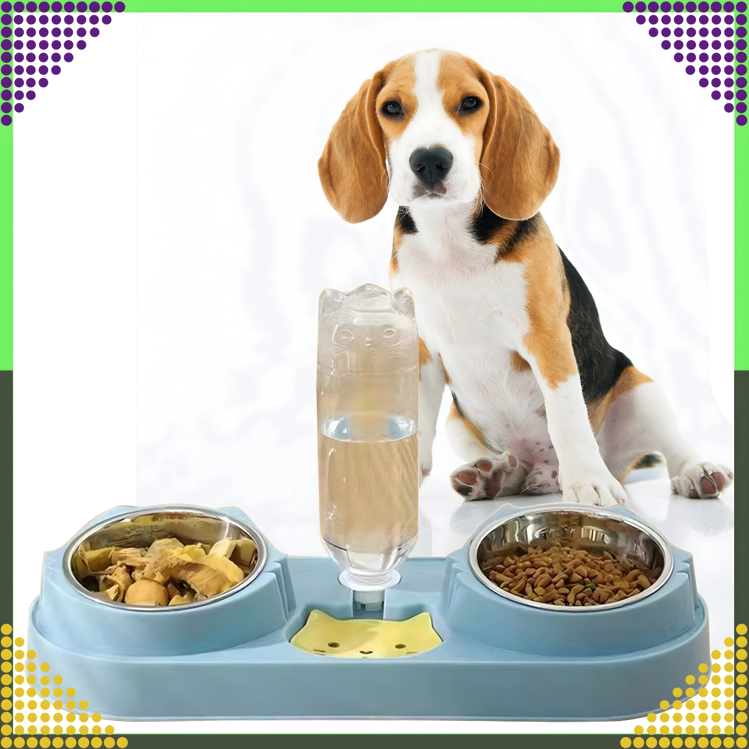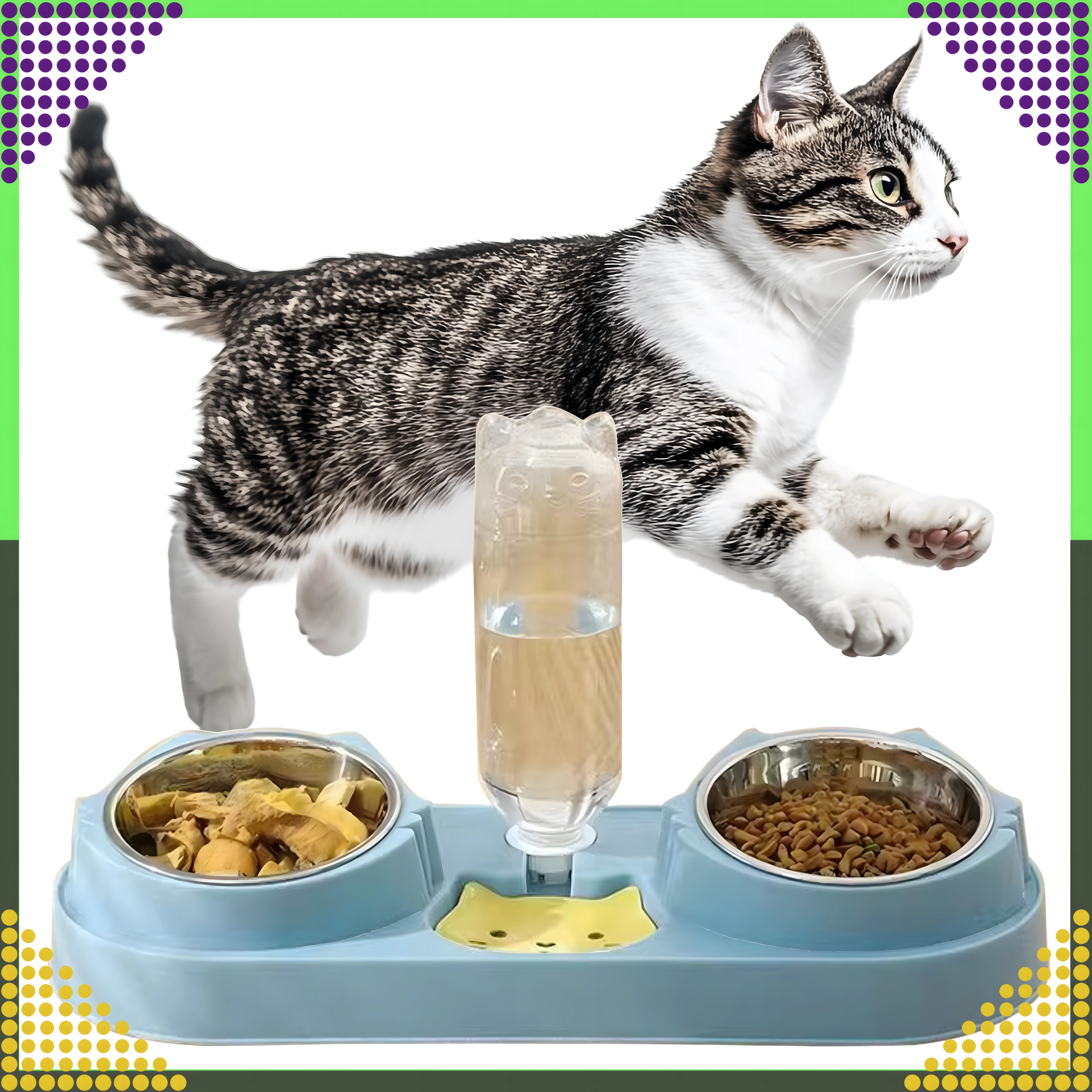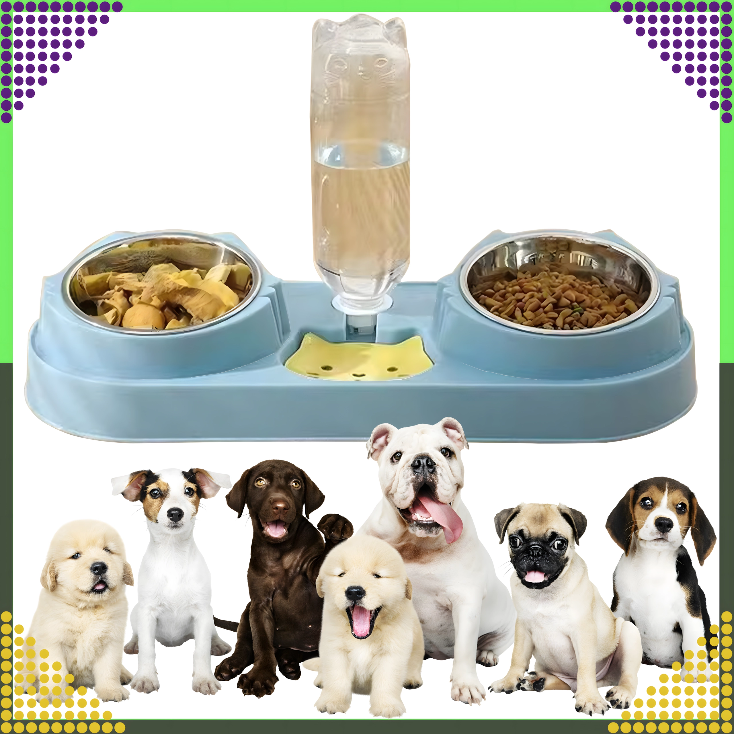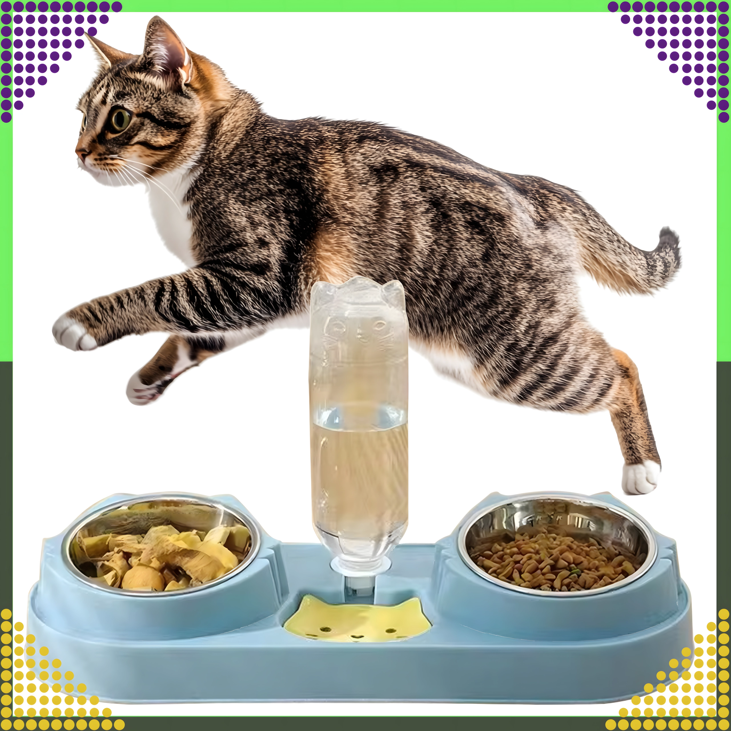 Praktická dvojitá miska pre domácich miláčikov s integrovaným dávkovačom vody zabezpečí súčasné podávanie krmiva aj čerstvej vody. Vyberateľné nerezové misky uľahčujú rýchle čistenie, stabilná základňa bráni prevráteniu a gravitačná napájačka udržiava vodu čistú a dostupnú aj počas vašej neprítomnosti.