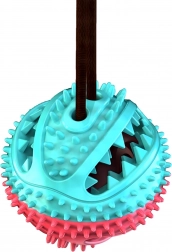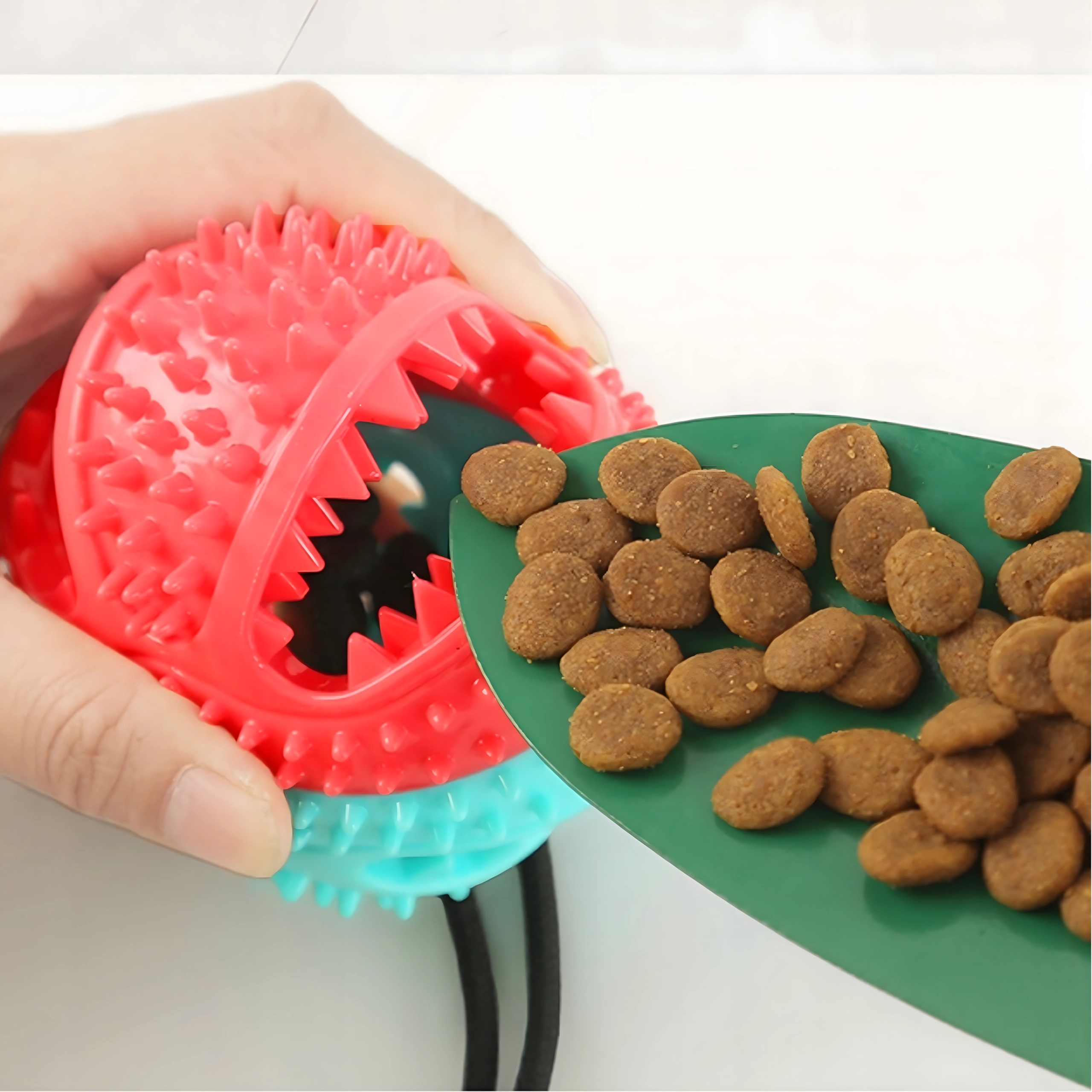 Zábavná a odolná hračka pre psov s pevnou prísavkou, elastickým lanom a pamlsovým loptičkom. Textúrované výstupky čistia zuby, masírujú ďasná a otvory na pamlsky spomalia kŕmenie aj podporia mentálnu stimuláciu. Ideálne na samostatnú aj interaktívnu hru a vybitie energie.