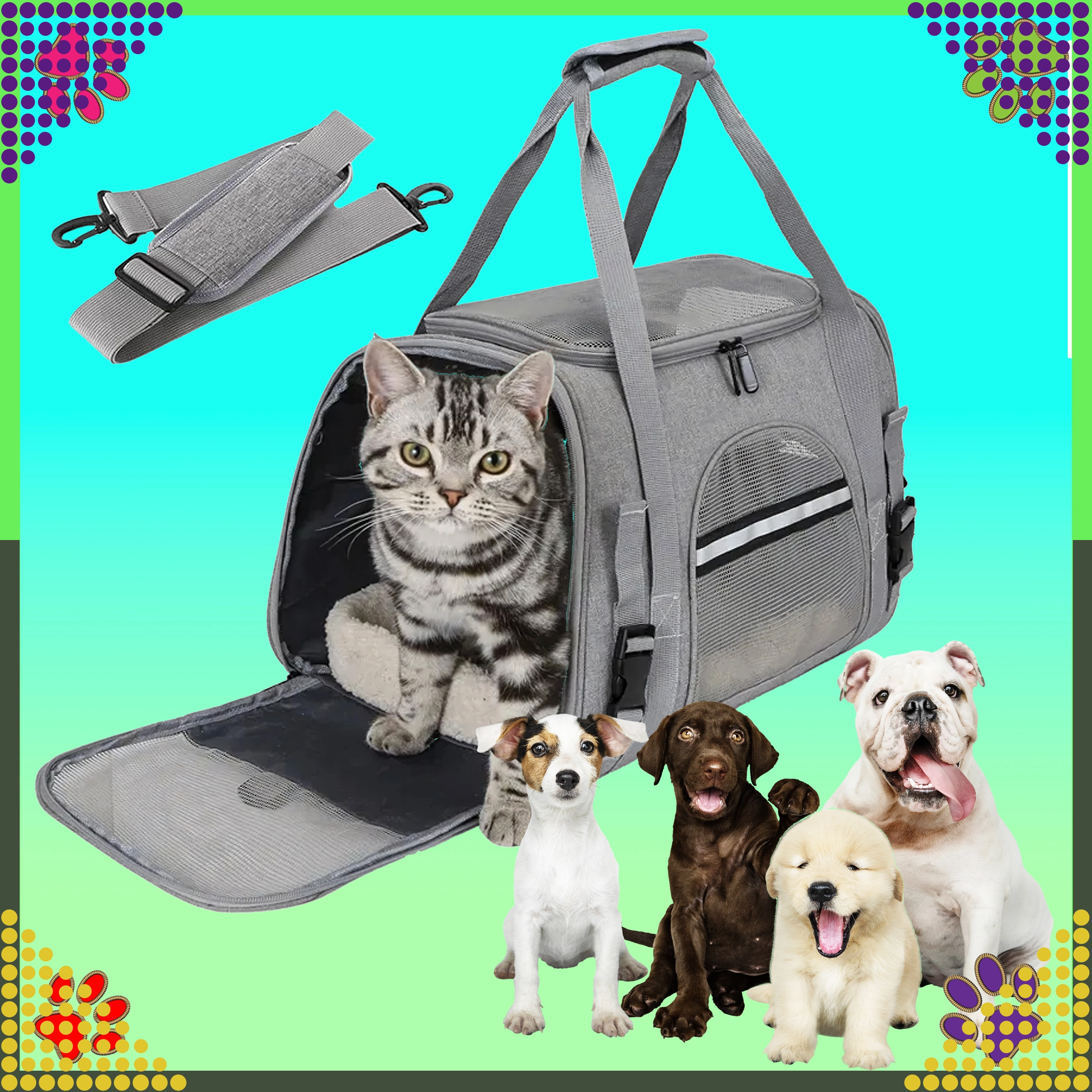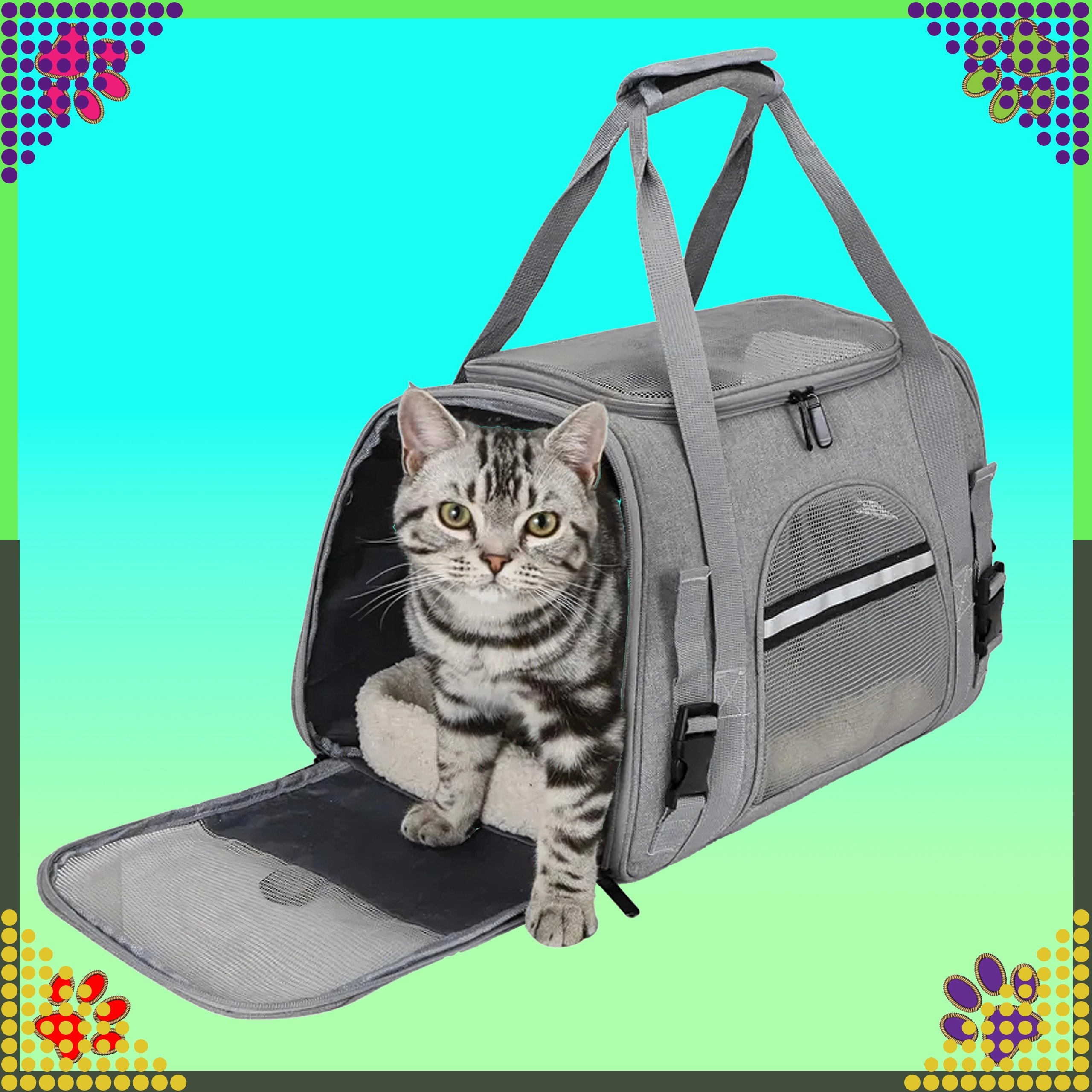 Praktický a ľahký prepravný box pre domácich miláčikov zaistí komfort a bezpečnosť pri cestovaní. Odolný polyester nepohlcuje pachy, je rezistentný proti škvrnám a počasiu a ponúka dostatok priestoru pre menších psov, mačky či morčatá. Ideálny do auta aj na kratšie presuny.