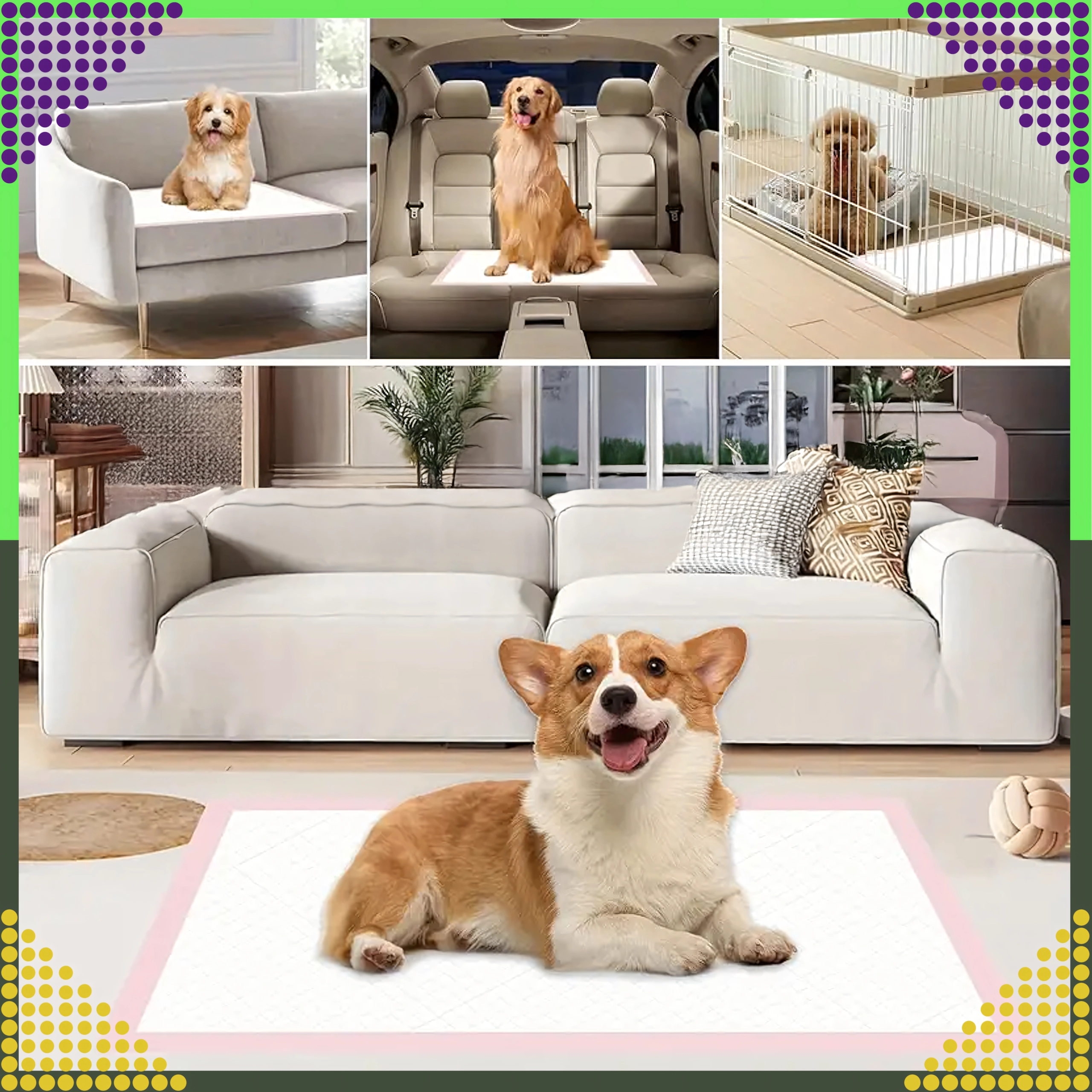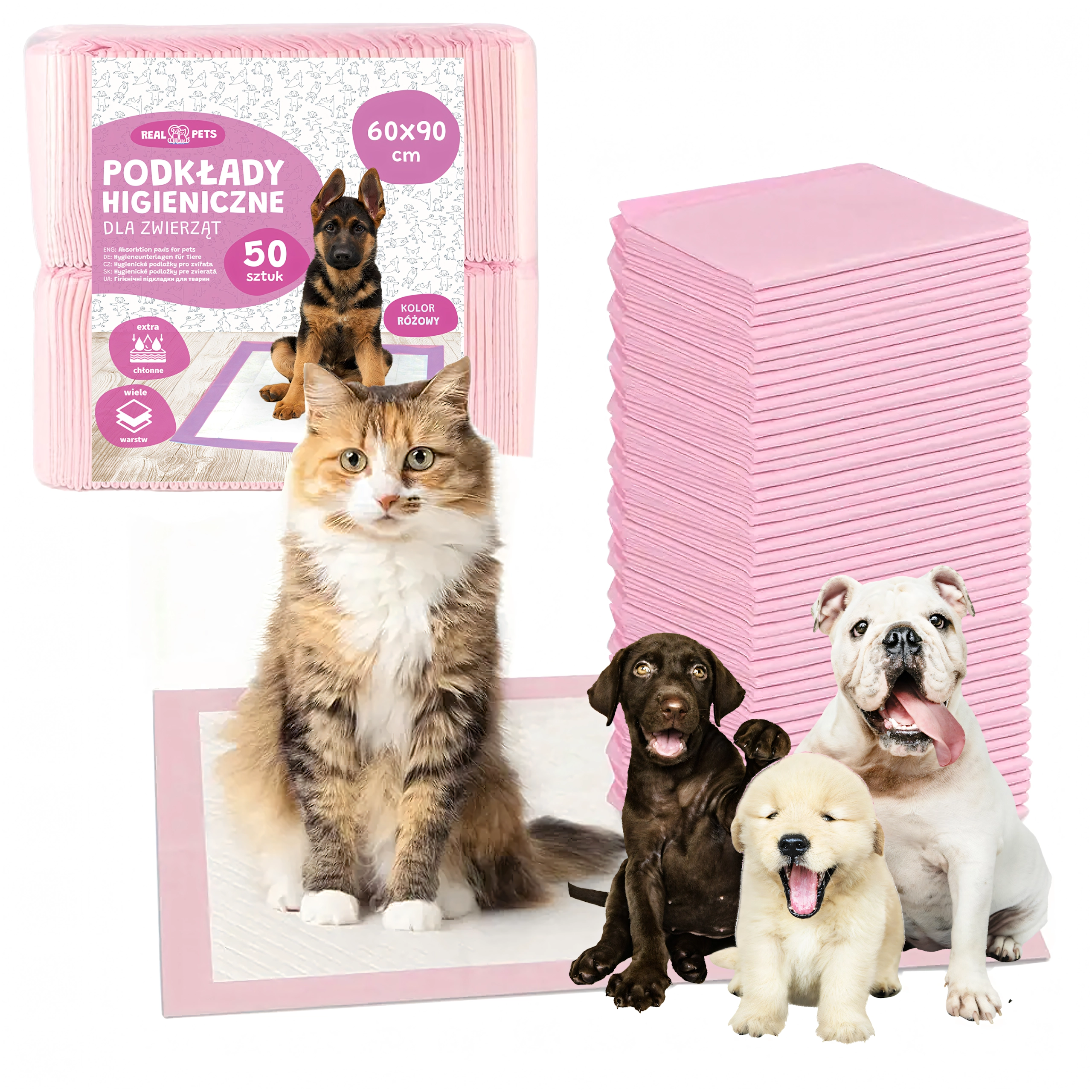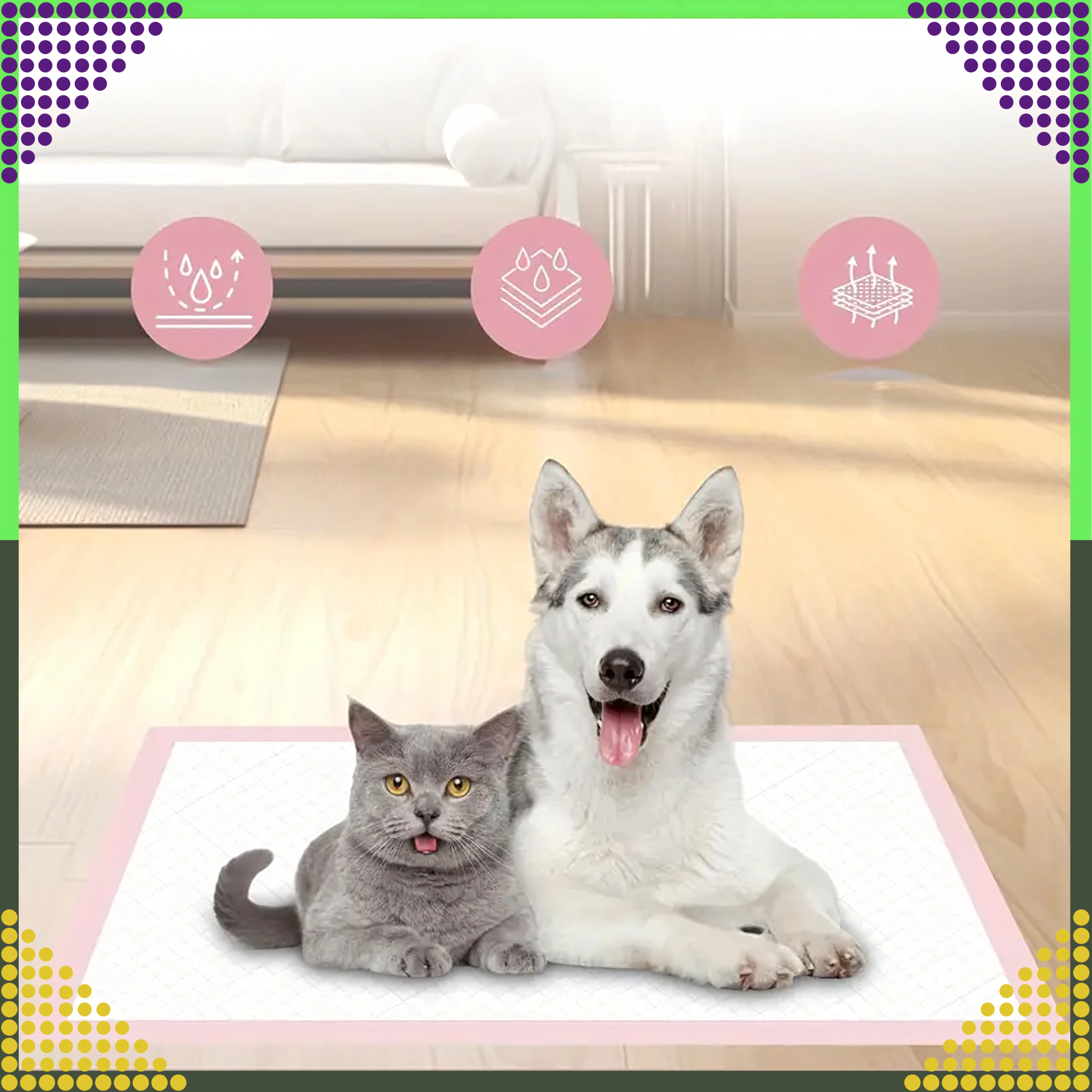 Vďaka veľkému formátu 60 × 90 cm sú podložky vhodné pre psov všetkých veľkostí aj pre mačky. Sú ideálne na učenie čistotnosti, pri rekonvalescencii, pre staršie zvieratá alebo ako ochrana do transportných boxov, pelechov a do auta.
