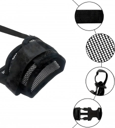 Praktický sieťovaný náhubok chráni pred hryzením a nežiaducim zbieraním potravy, pritom umožňuje voľné dýchanie a ľahké ochladzovanie. Nastaviteľný pásik s rýchloupínacou sponou udrží náhubok na mieste bez nepríjemného tlaku.