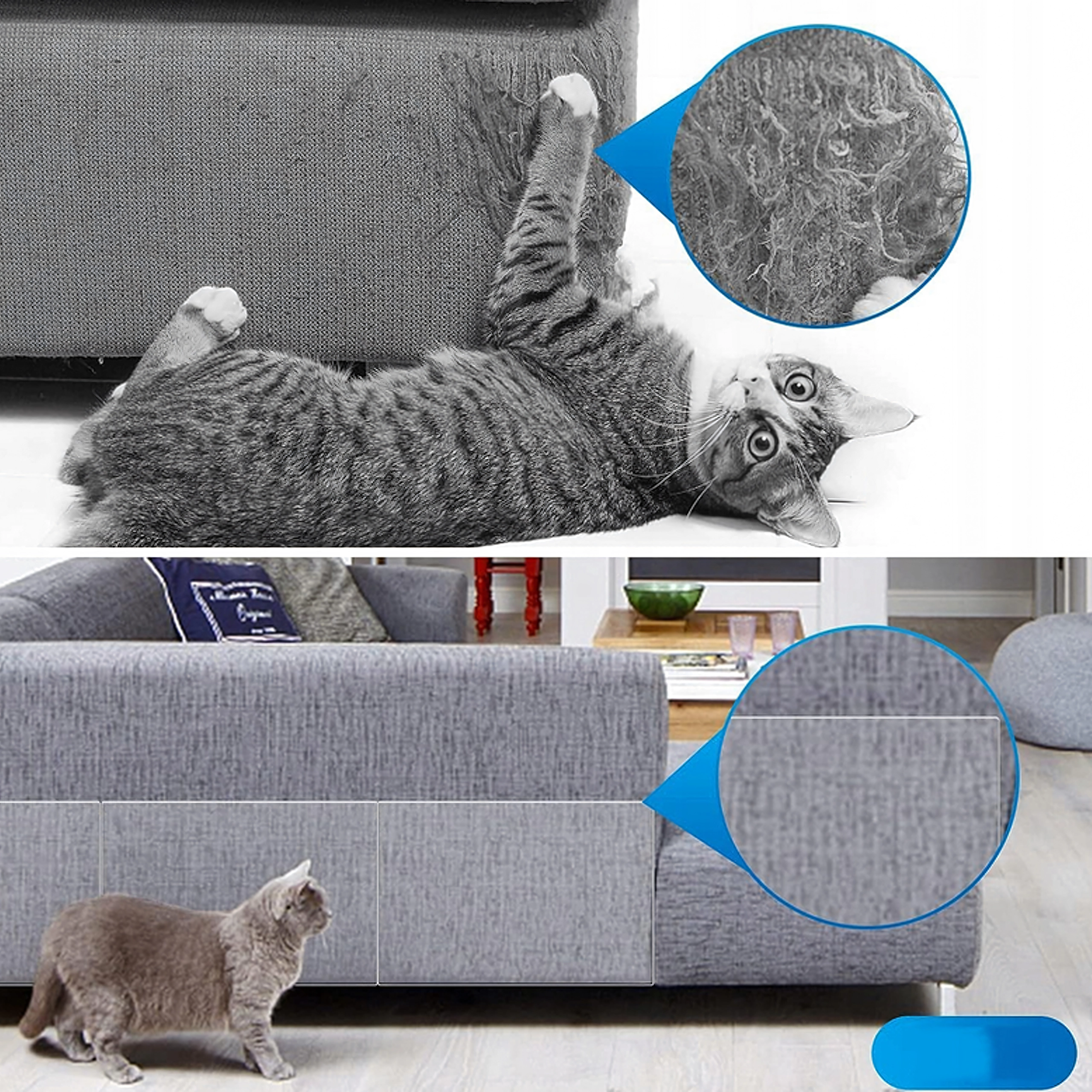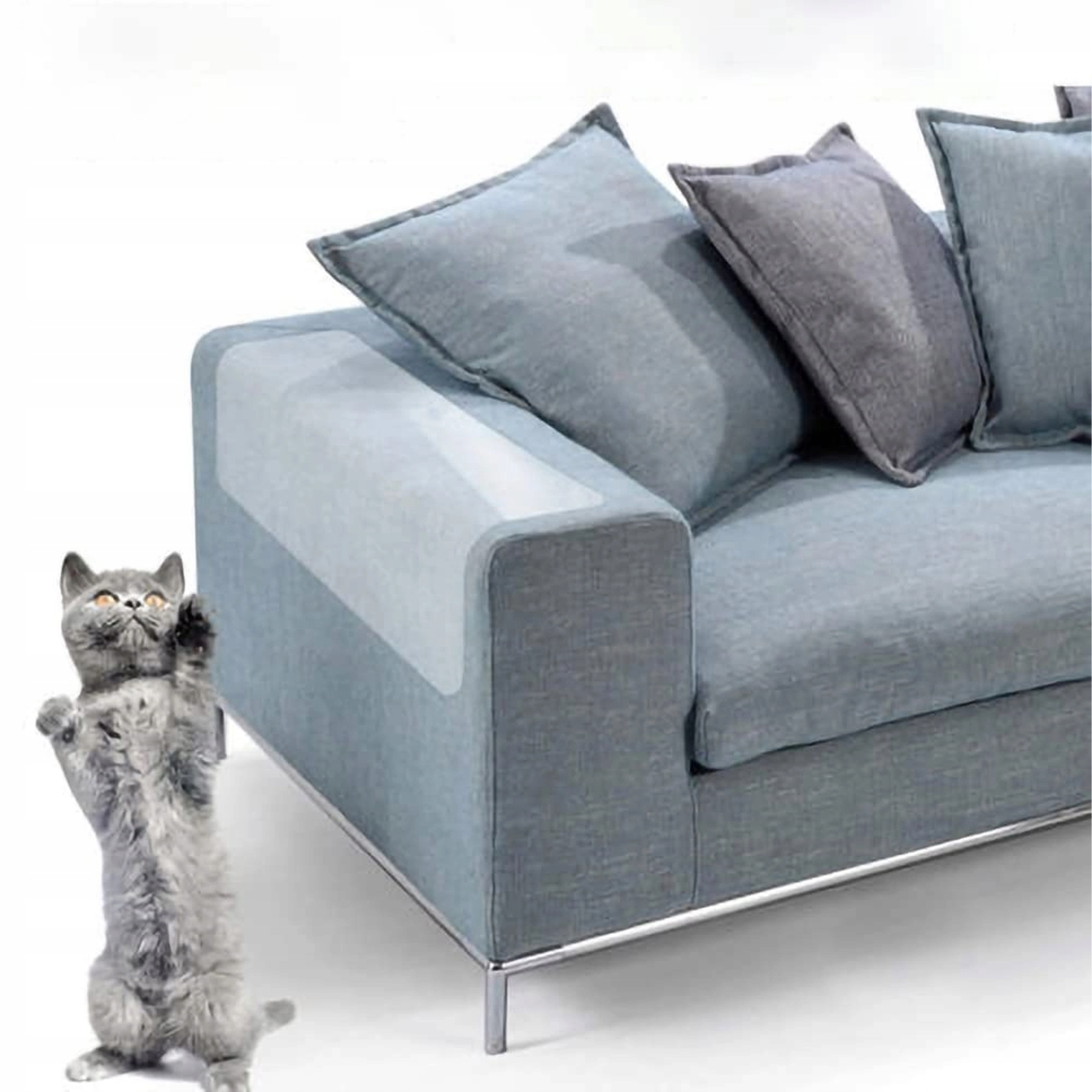 Praktická sada priehľadných fólií 45 × 15 cm (5 ks) spoľahlivo chráni nábytok, dvere a čalúnenie pred mačacími škrabancami. Fólie sú nenápadné, ľahko sa aplikujú, dajú sa zložiť bez poškodenia povrchu a opäť použiť. Bezpečné pre domácich miláčikov a ideálne pre látku, kožu aj drevo.