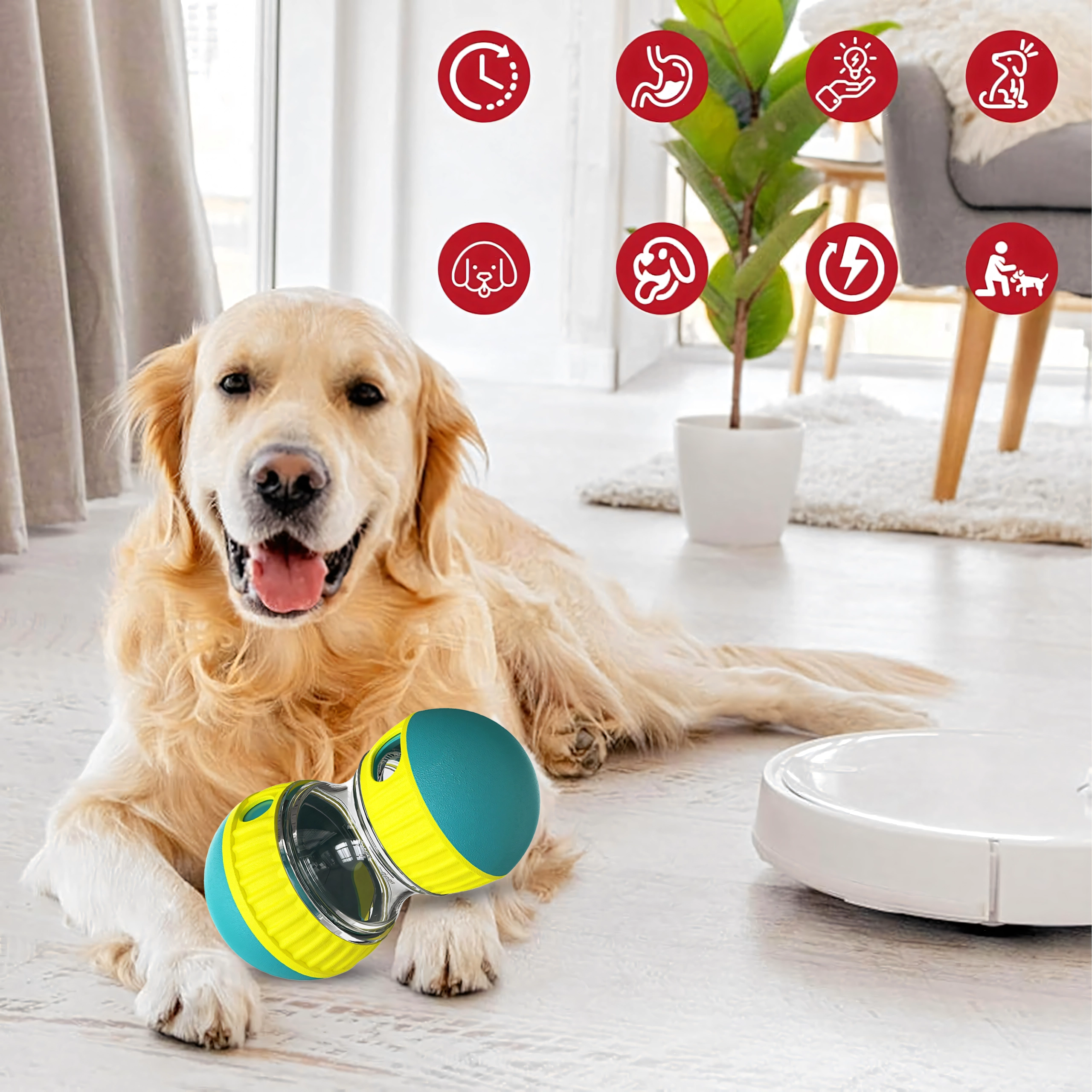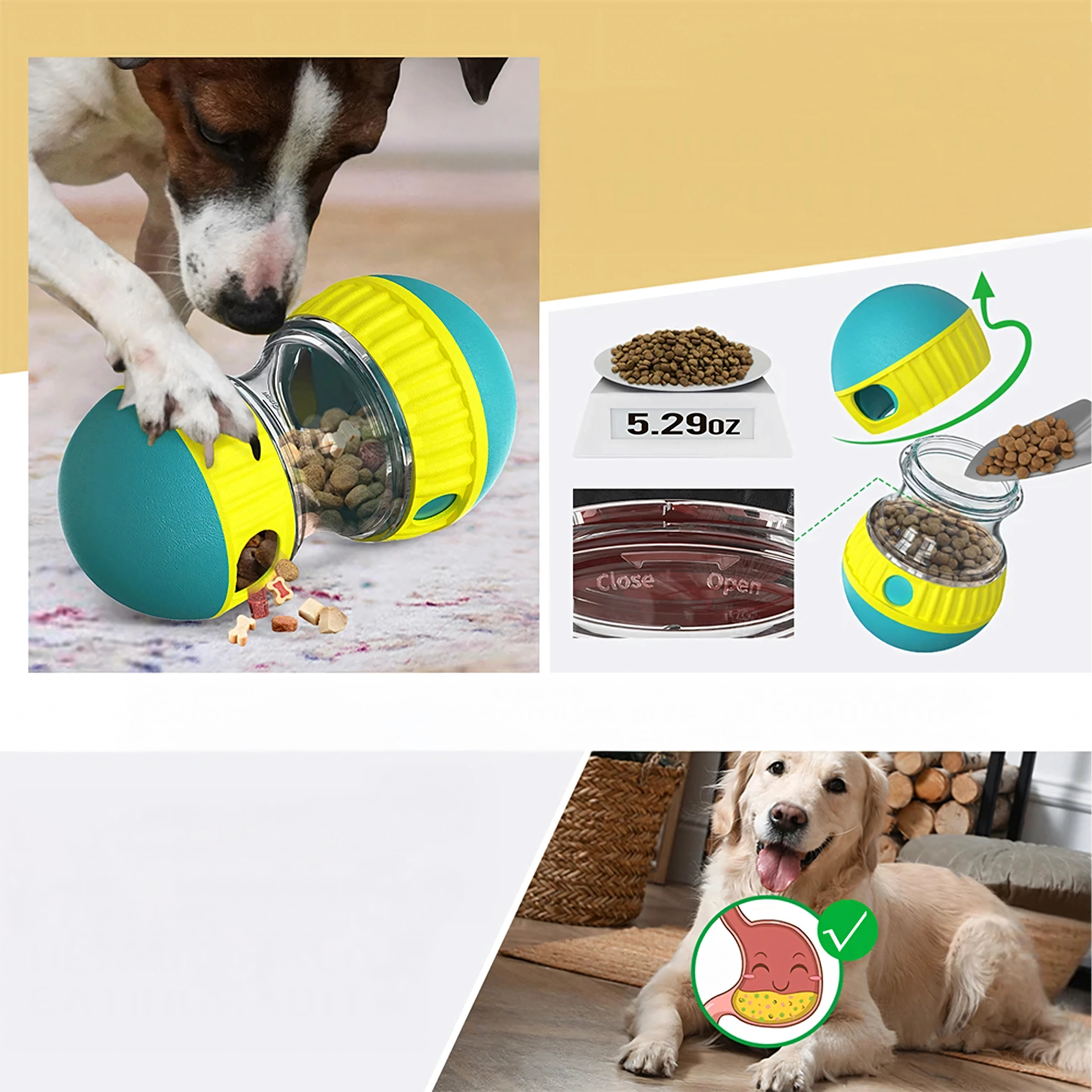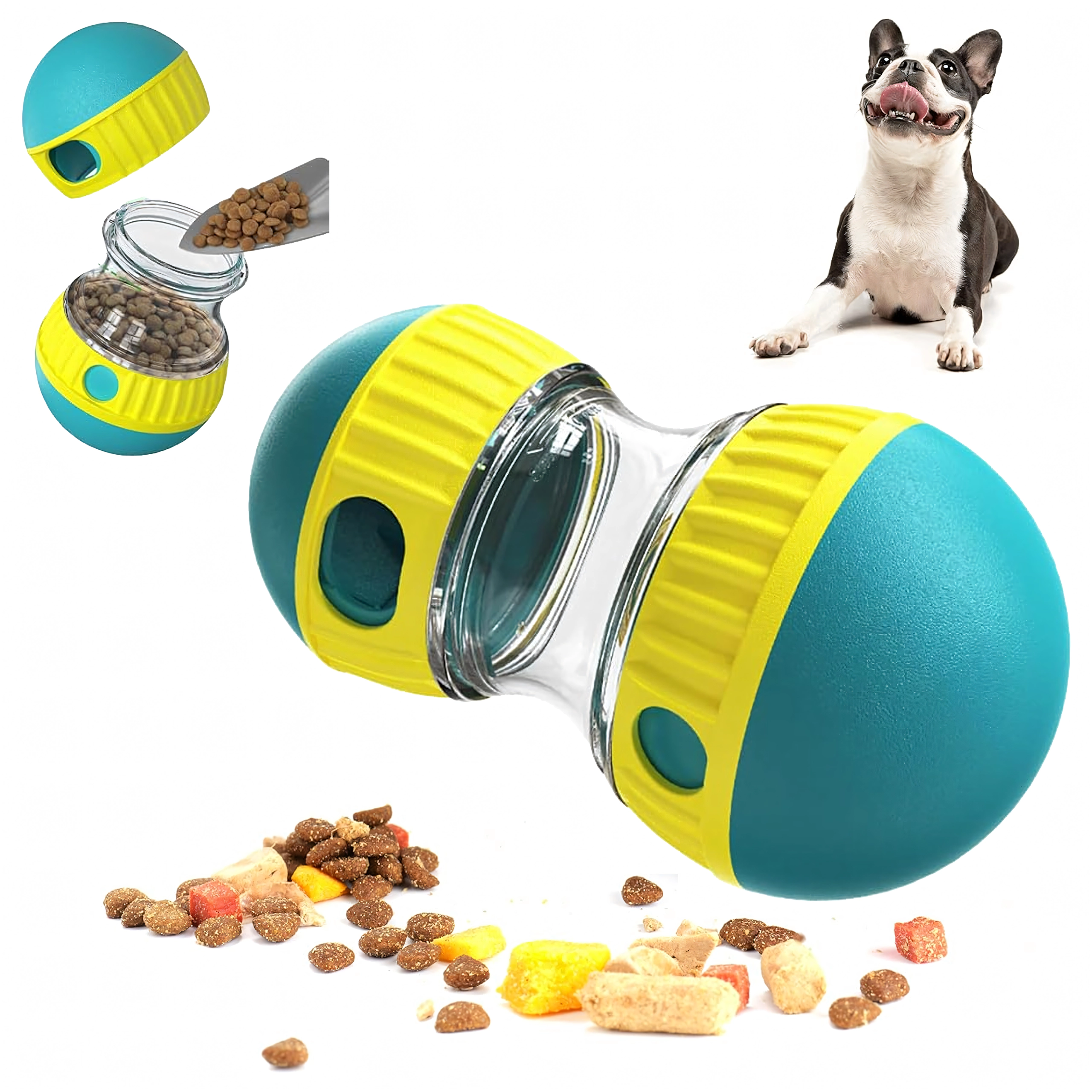Šikovná hra a kŕmenie v jednom. Priehľadná komora umožní sledovať granule vo vnútri, nastaviteľné otvory postupne uvoľňujú maškrty a pes je motivovaný hračku kotúľať a ťukať do nej labkou či ňufákom. Vďaka pomalšiemu dávkovaniu podporuje správne trávenie a obmedzuje hltanie.