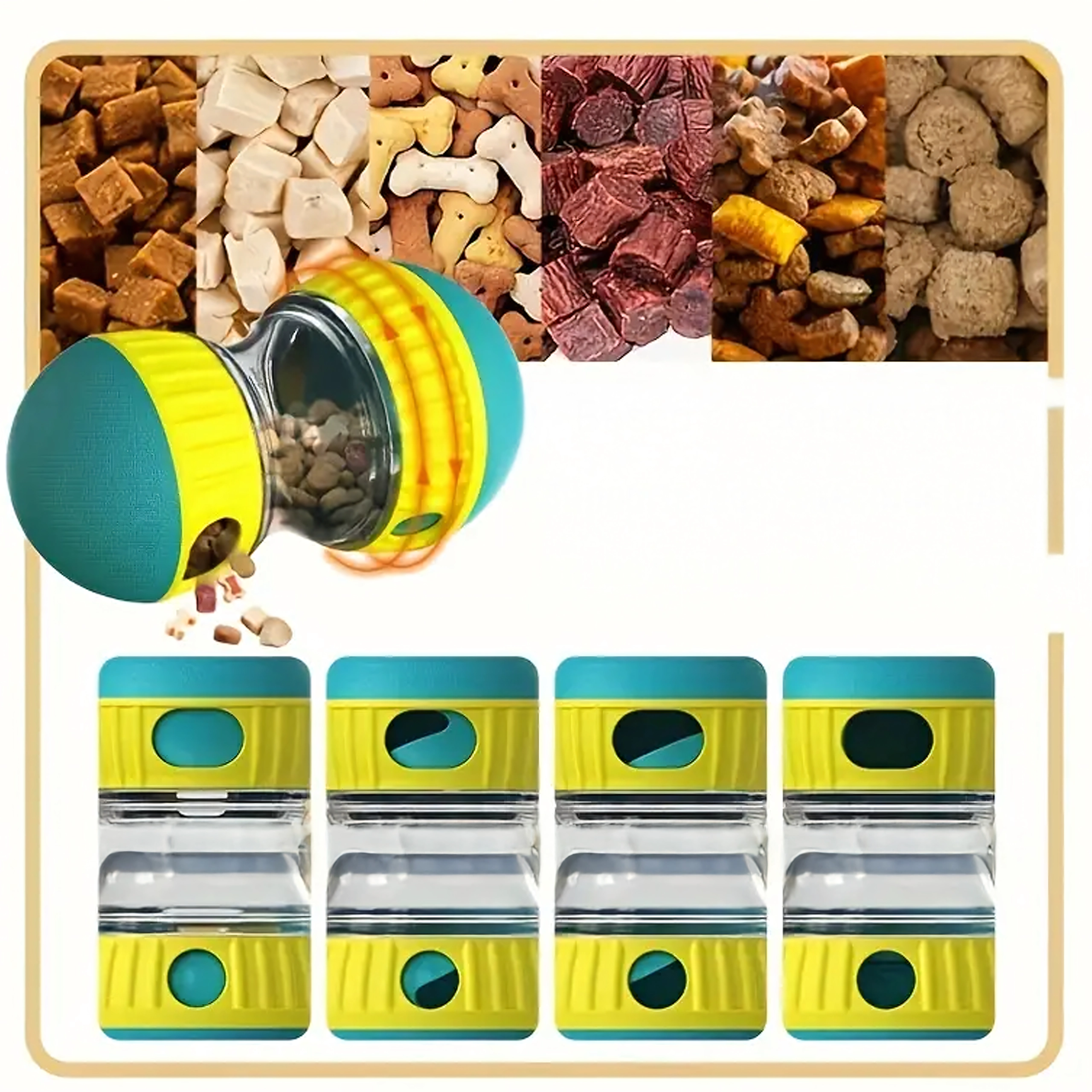 Ideálne pre suché granule a malé maškrty. Nastavte veľkosť otvorov podľa veľkosti krmiva a úrovne náročnosti. Skvelé na každodenný tréning, spestrenie kŕmnej rutiny aj zníženie nudy.