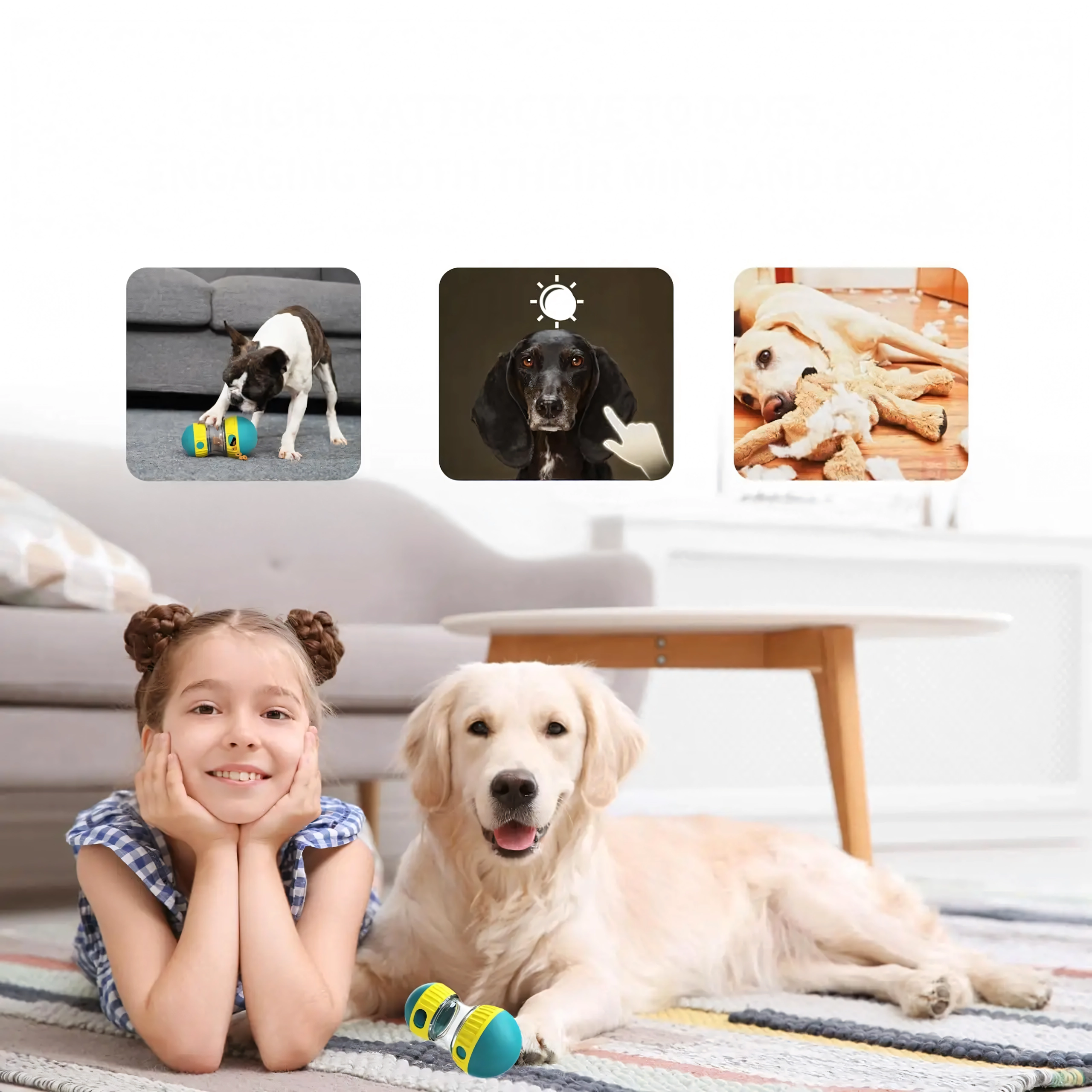 Pes musí hračku kotúľať a ťukať do nej, aby získal maškrty. Podnecuje prirodzené inštinkty, zvyšuje aktivitu a zabaví na dlhší čas.