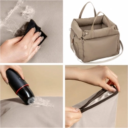 Vďaka odnímateľnému, prateľnému poťahu a odolnej tkanine je údržba jednoduchá. Protišmykové dno bráni posúvaniu, bezpečnostná vnútorná karabína drží postroj a praktické vrecká pojmú drobnosti na cesty. Pelech možno použiť aj mimo auta ako útulné lôžko.
