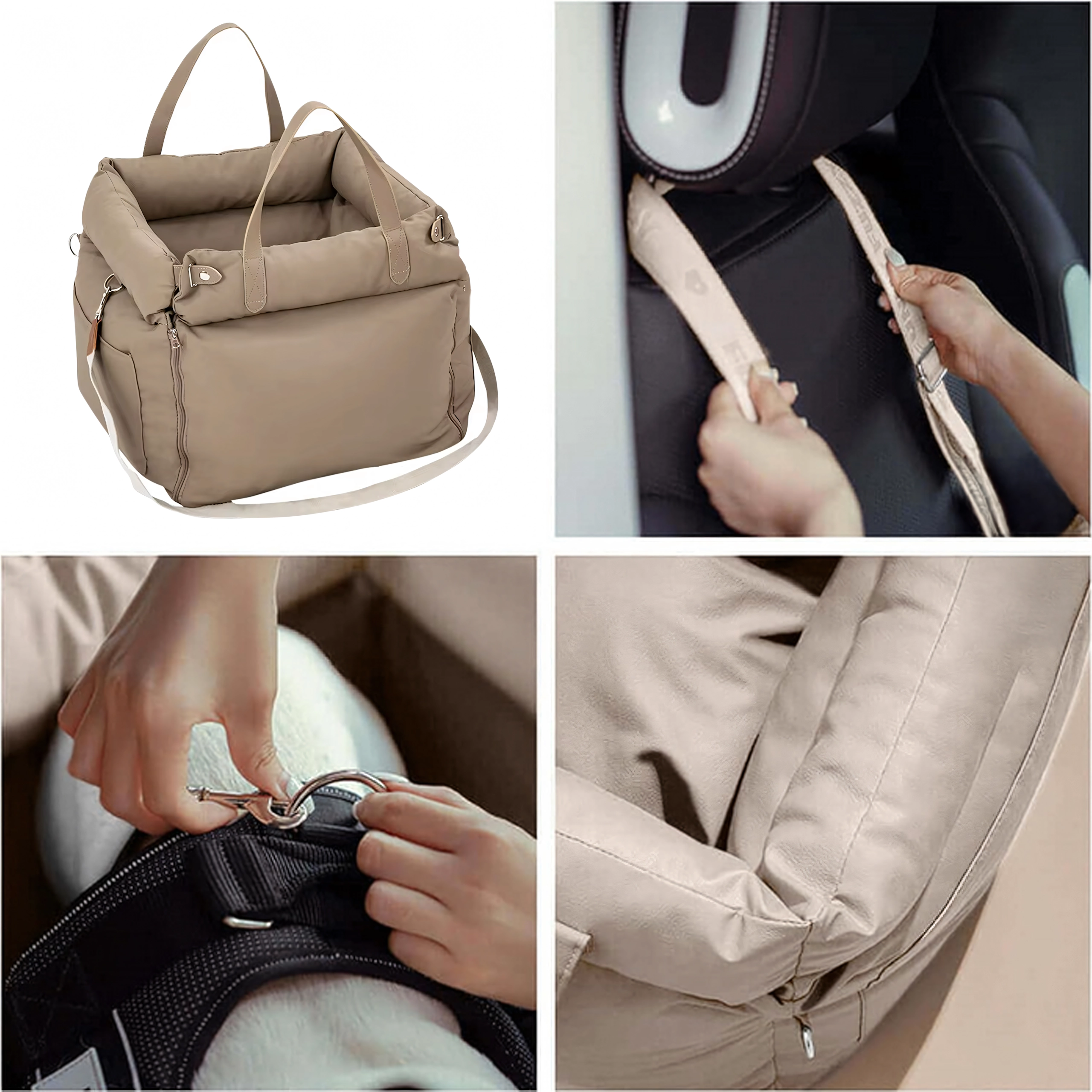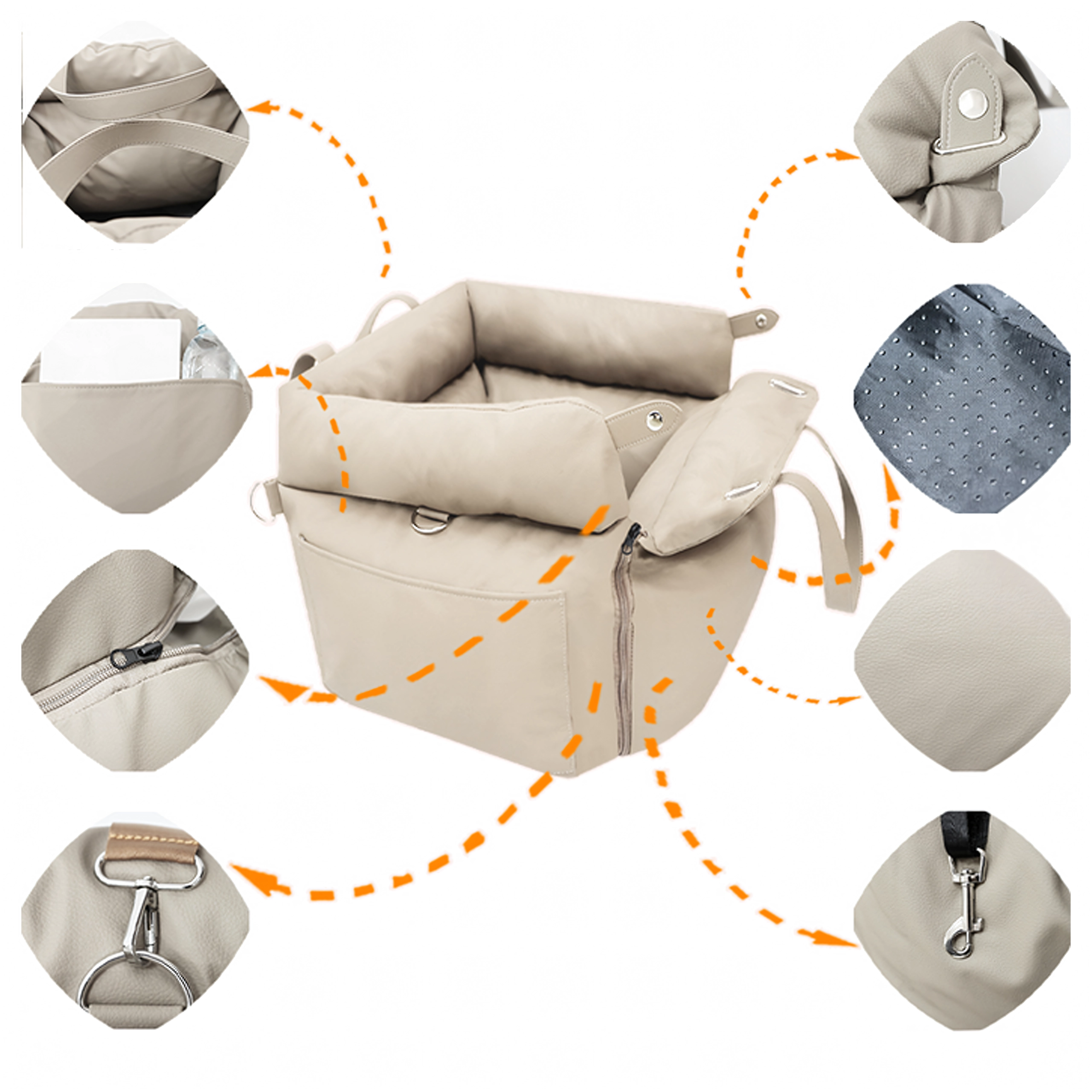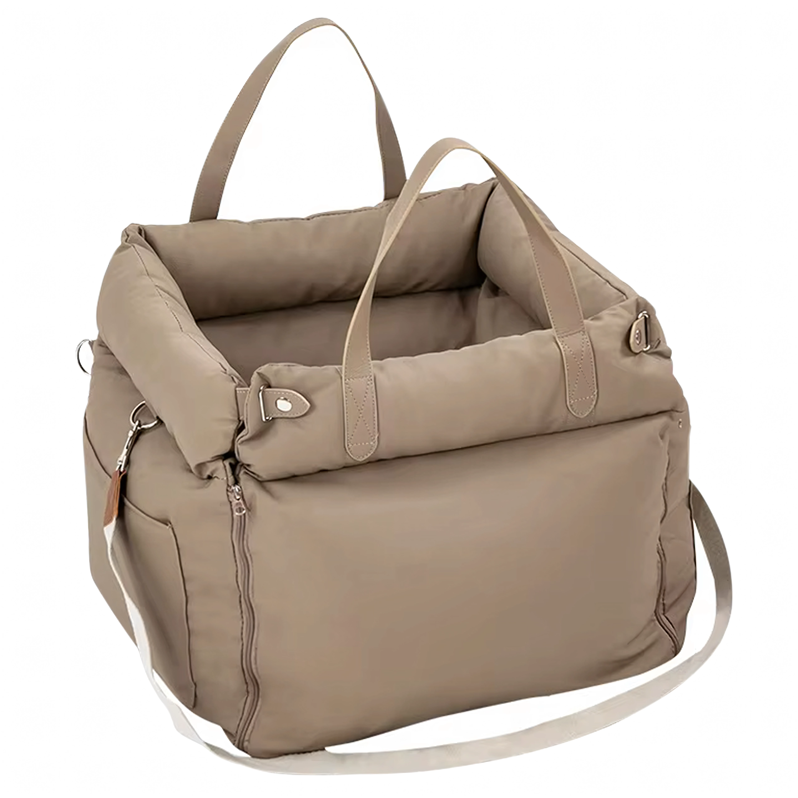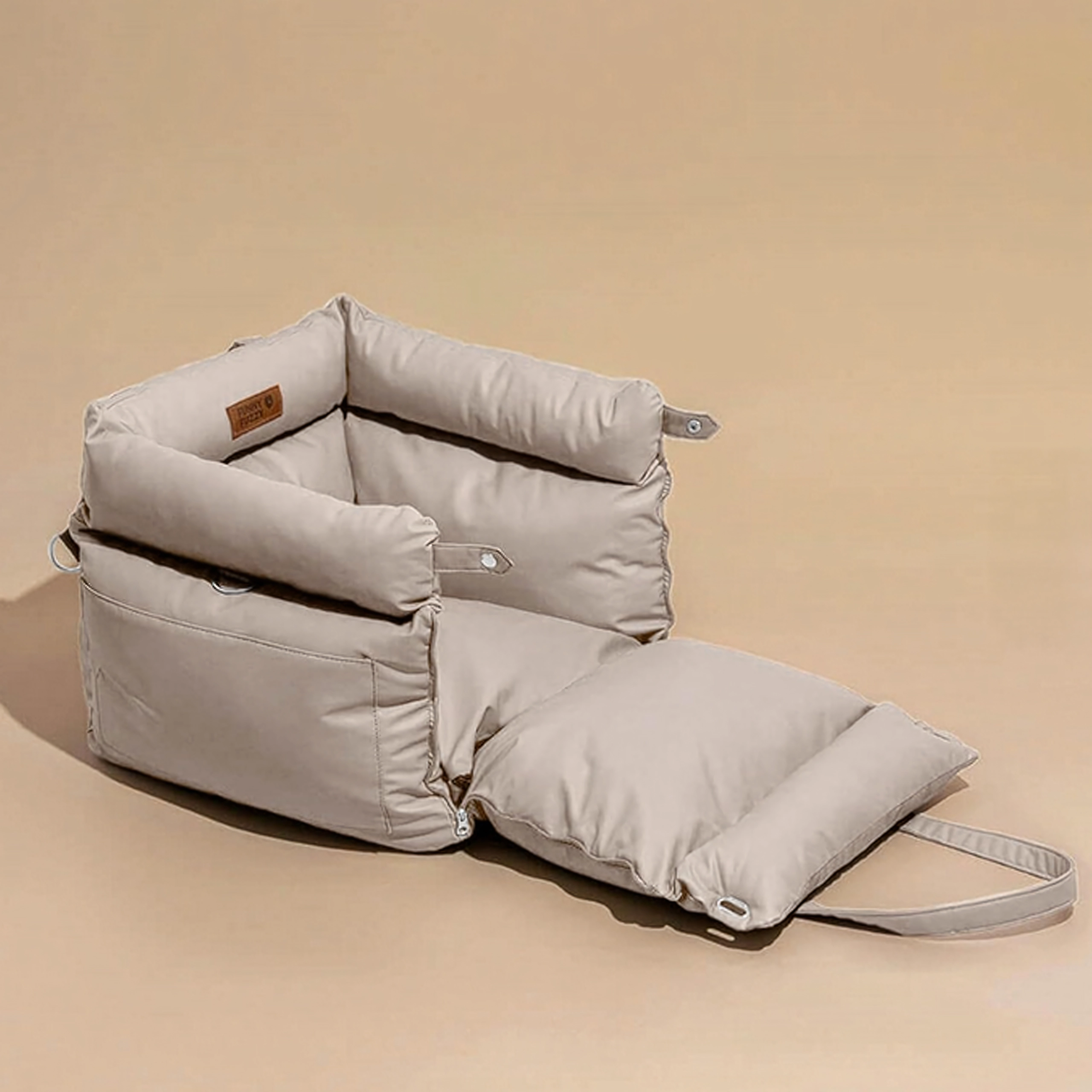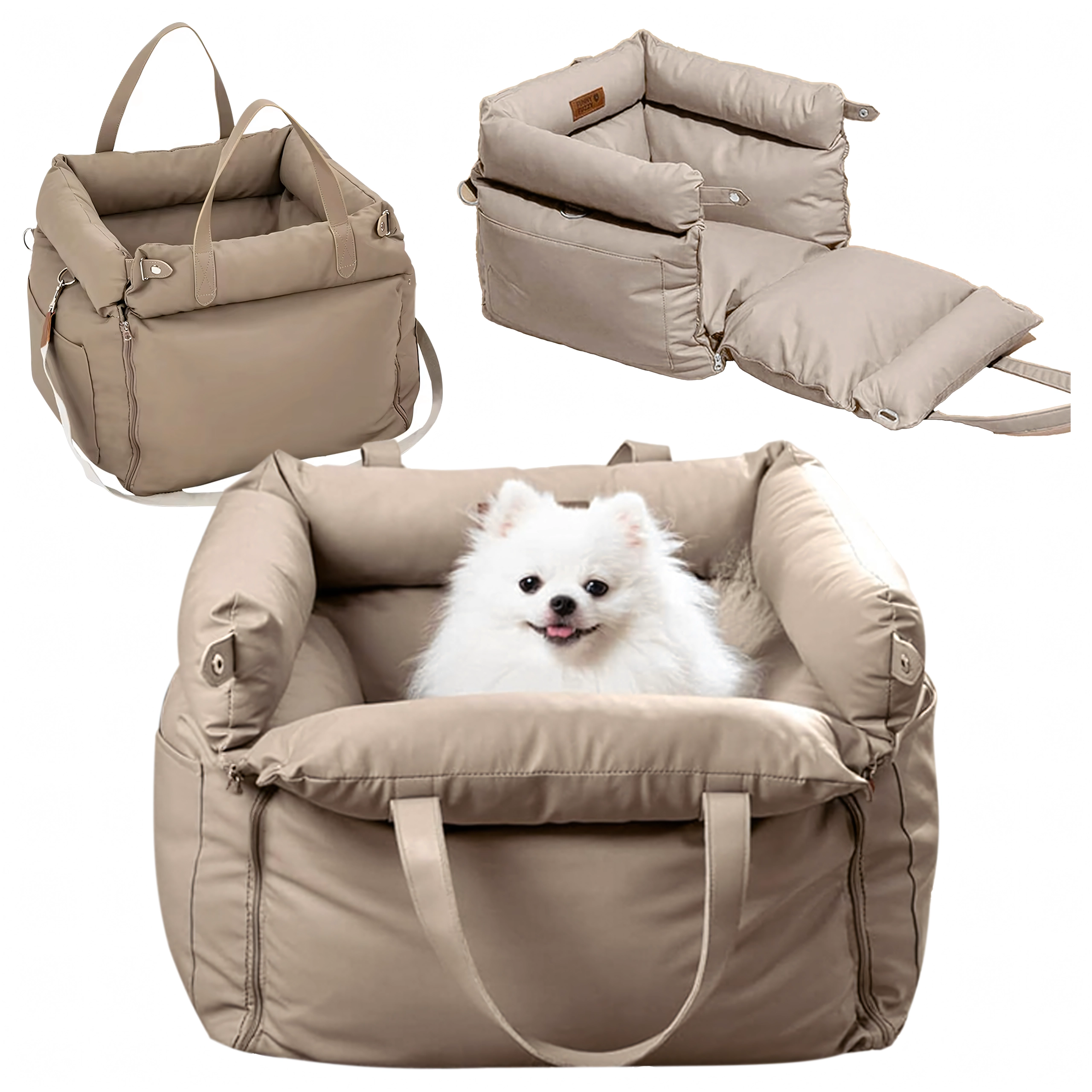 Tento prémiový cestovný pelech/booster do auta kombinuje funkciu autosedačky a prenosnej tašky, aby váš pes či mačka cestovali vždy v pokoji a bezpečí. Vysoké polstrované okraje poskytujú oporu, mäkké výplne zaisťujú pohodlie a integrované popruhy umožňujú pevné uchytenie k opierke hlavy a sedadlu.