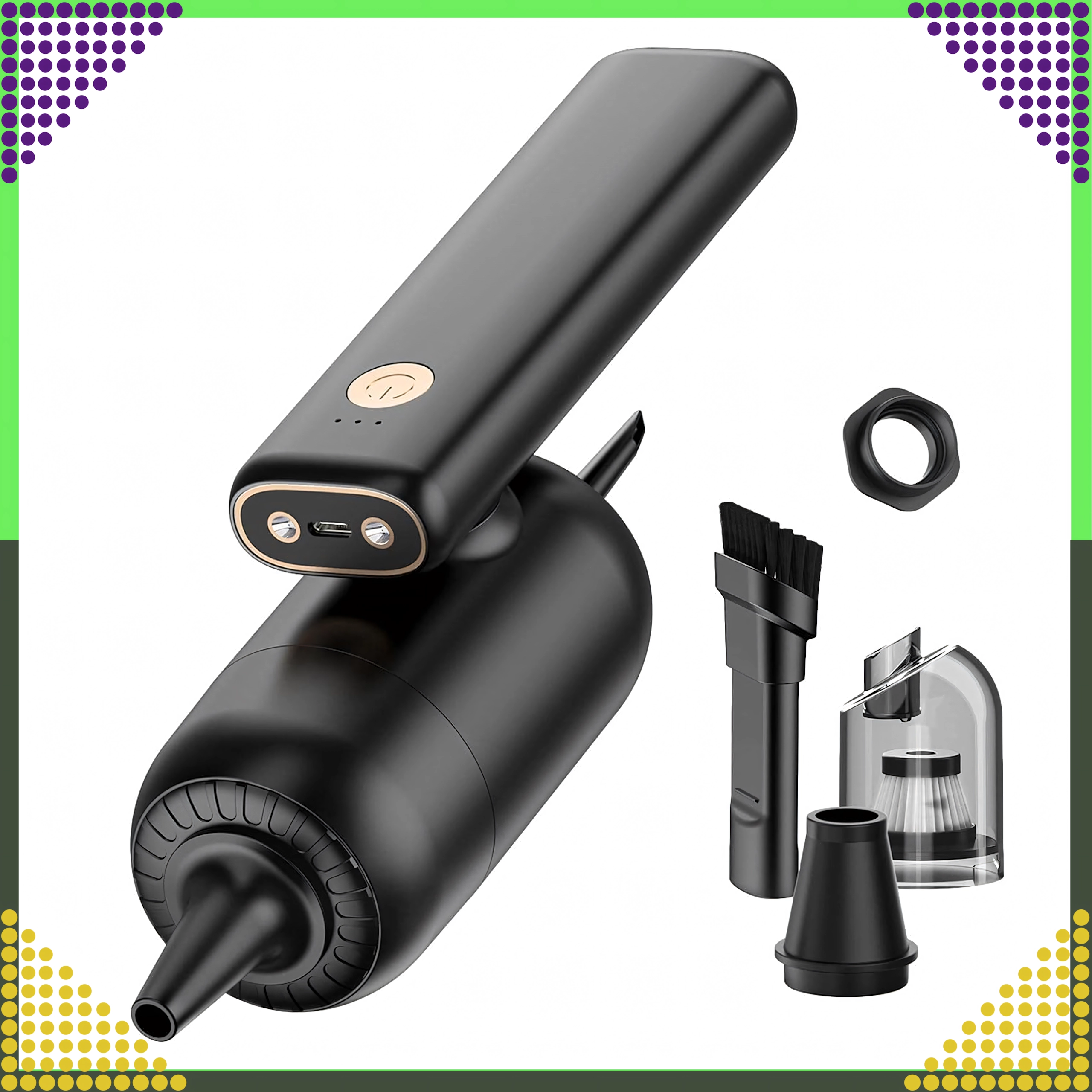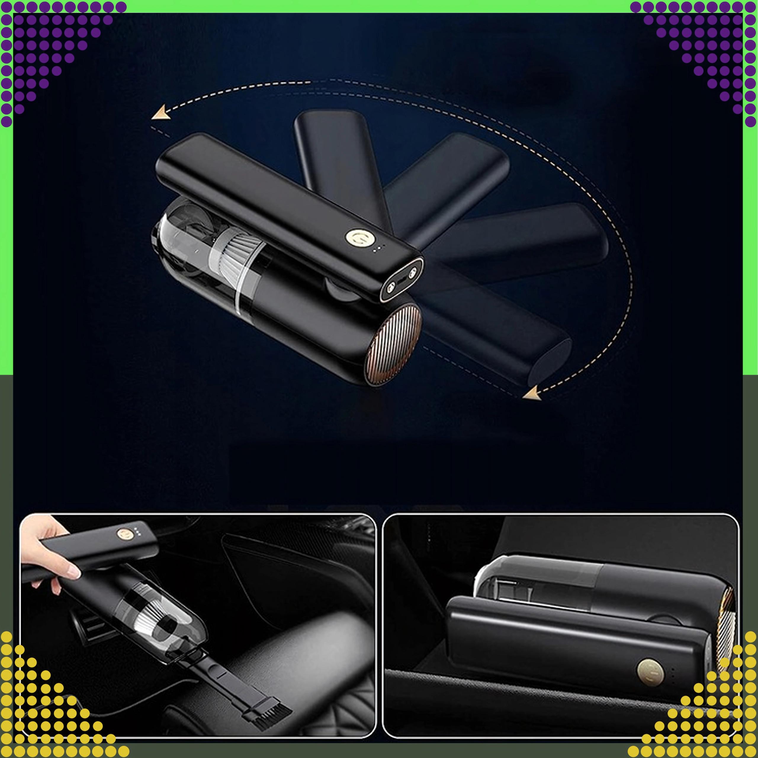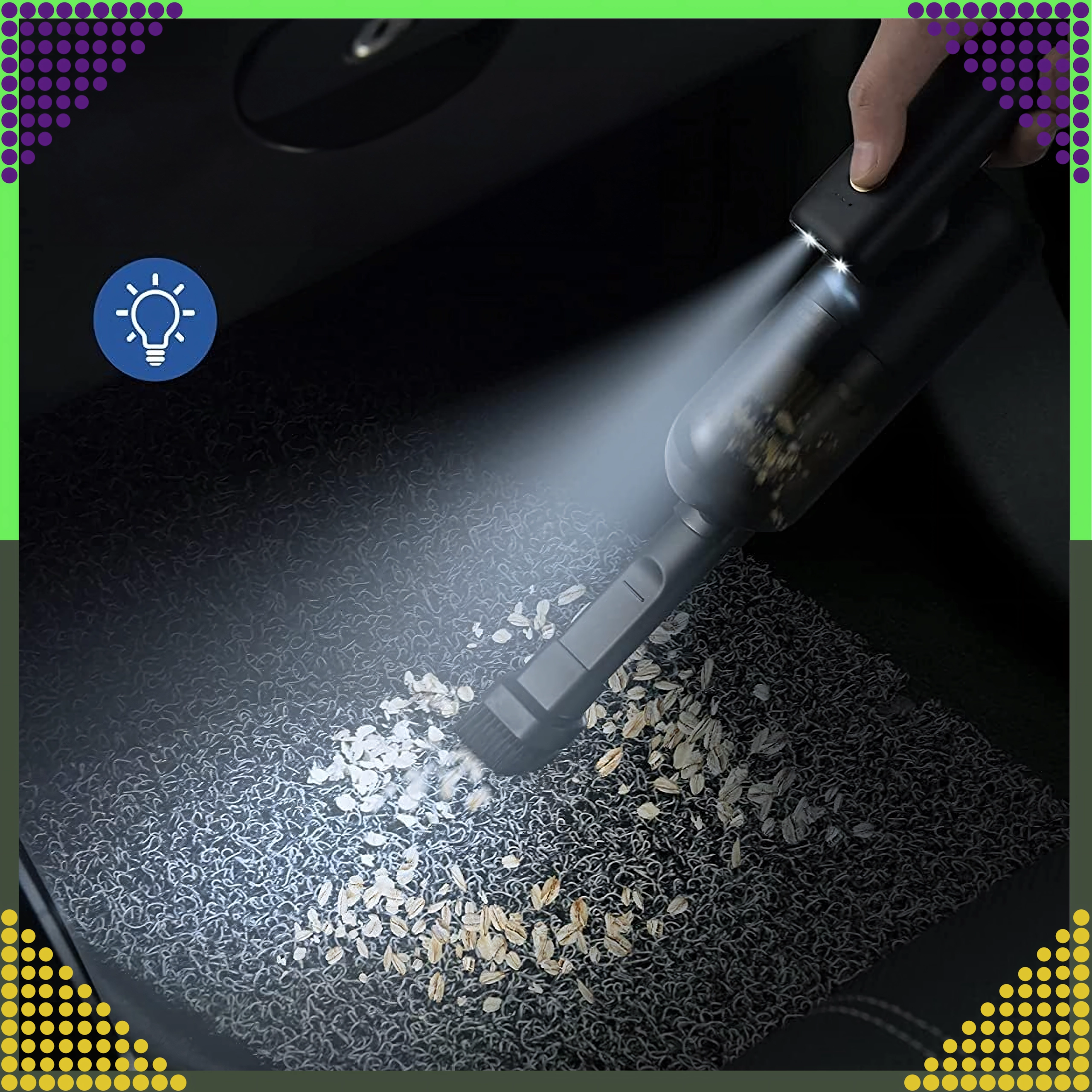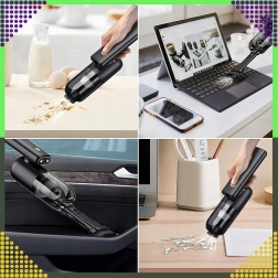 Kompaktný a výkonný ručný vysávač 2v1 pre auto aj domácnosť spája bezdrôtové používanie, silný sací výkon a funkciu ofuku v jednom zariadení. Vďaka HEPA filtru účinne zachytí prach, peľ aj drobné častice, zatiaľ čo LED osvetlenie pomôže vidieť aj na tmavých miestach. Ideálny na rýchle upratovanie piesku, prachu, omrviniek aj zvieracích chlpov v aute, na stole či okolo klávesnice.