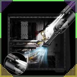 Vďaka štetinkovému nadstavcu a LED osvetleniu odstráni prach z klávesníc, PC skríň a úzkych štrbín bez rizika poškodenia súčiastok.