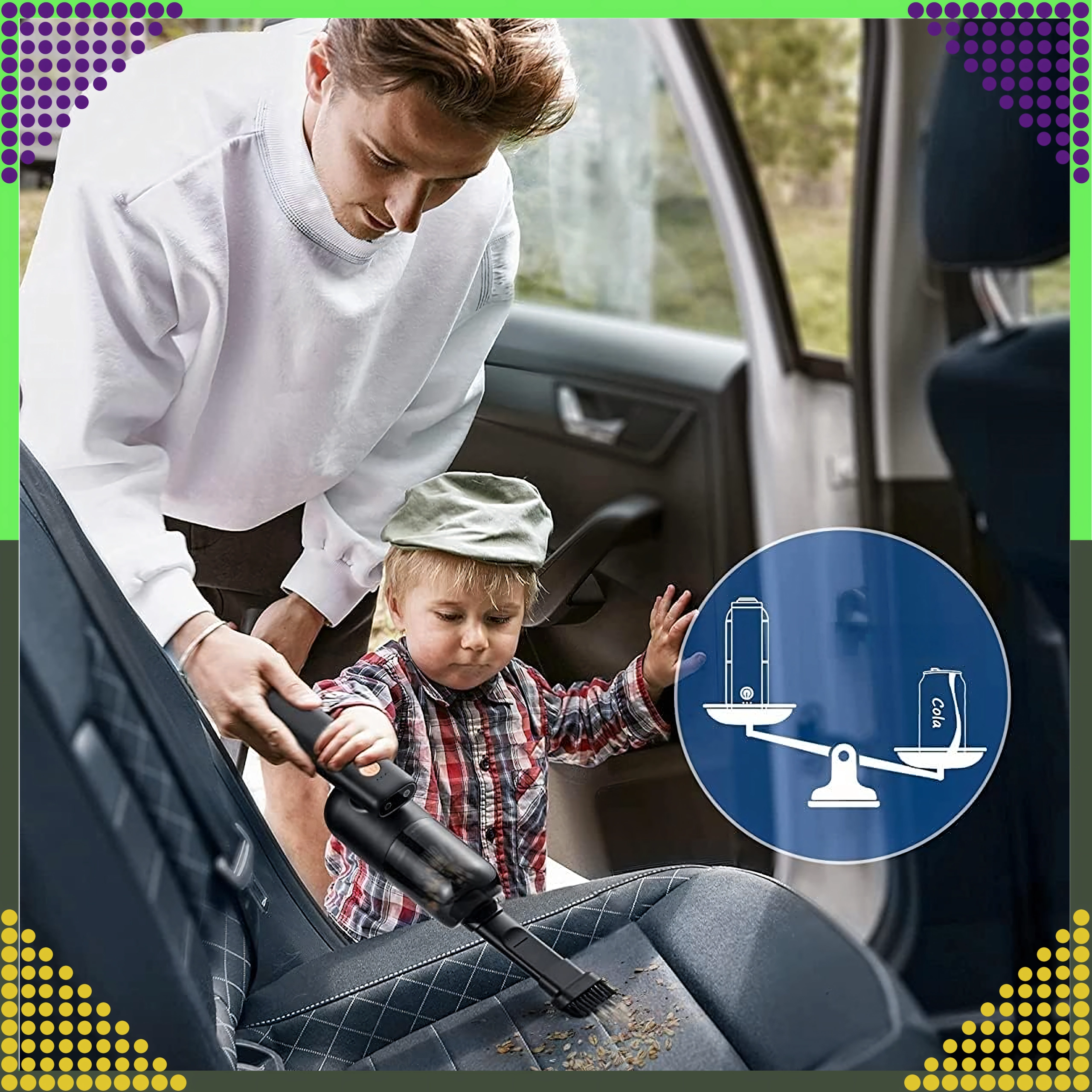 Praktický bezvreckový vysávač s motorom s výkonom 50 W a pracovným tlakom až 5000 Pa ľahko odstráni každodenné nečistoty z interiéru vozidla aj domácnosti. Ľahká konštrukcia a bezdrôtová prevádzka vám umožní upratovať kdekoľvek bez obmedzenia káblami, zatiaľ čo priehľadná nádoba na nečistoty uľahčuje rýchle vysypanie.