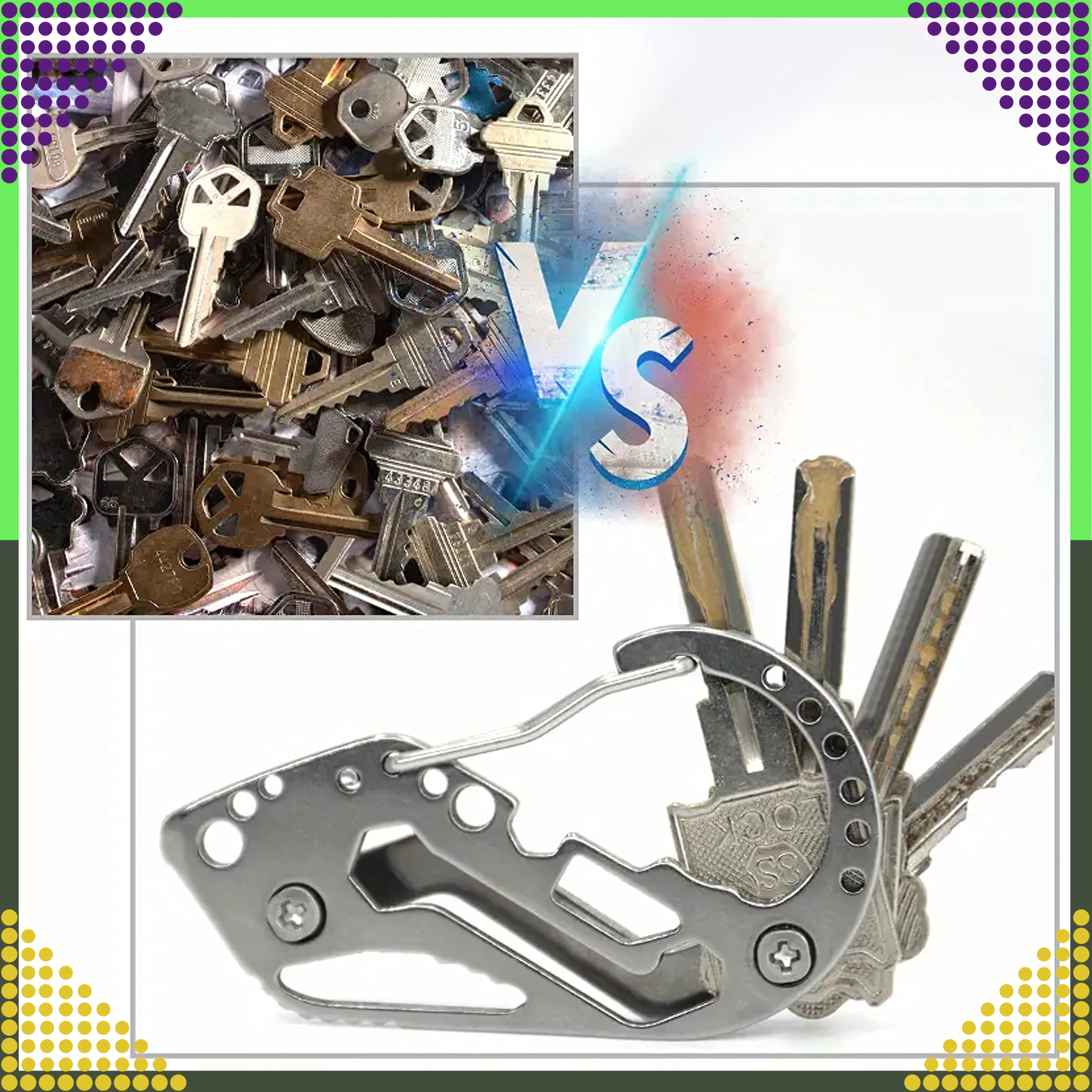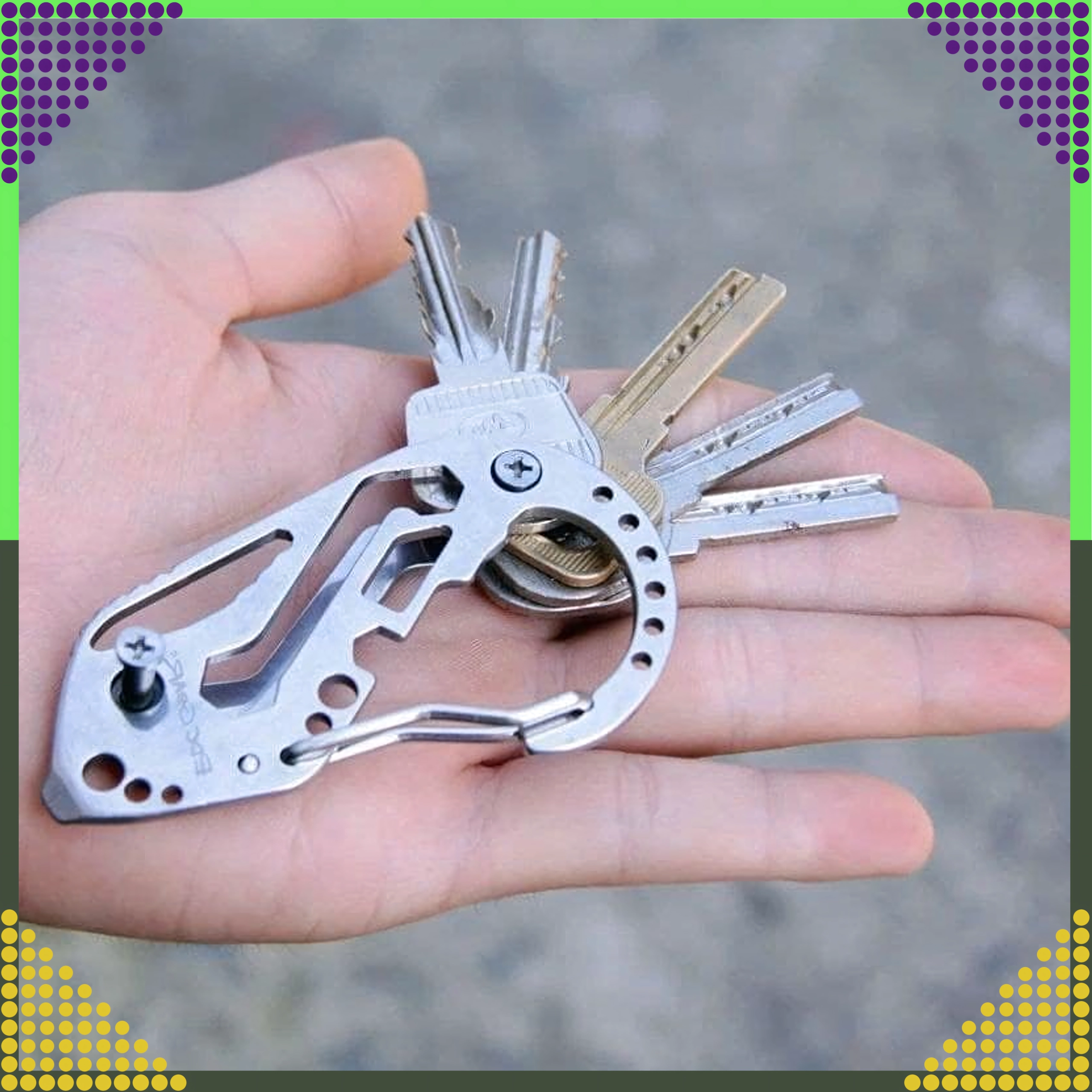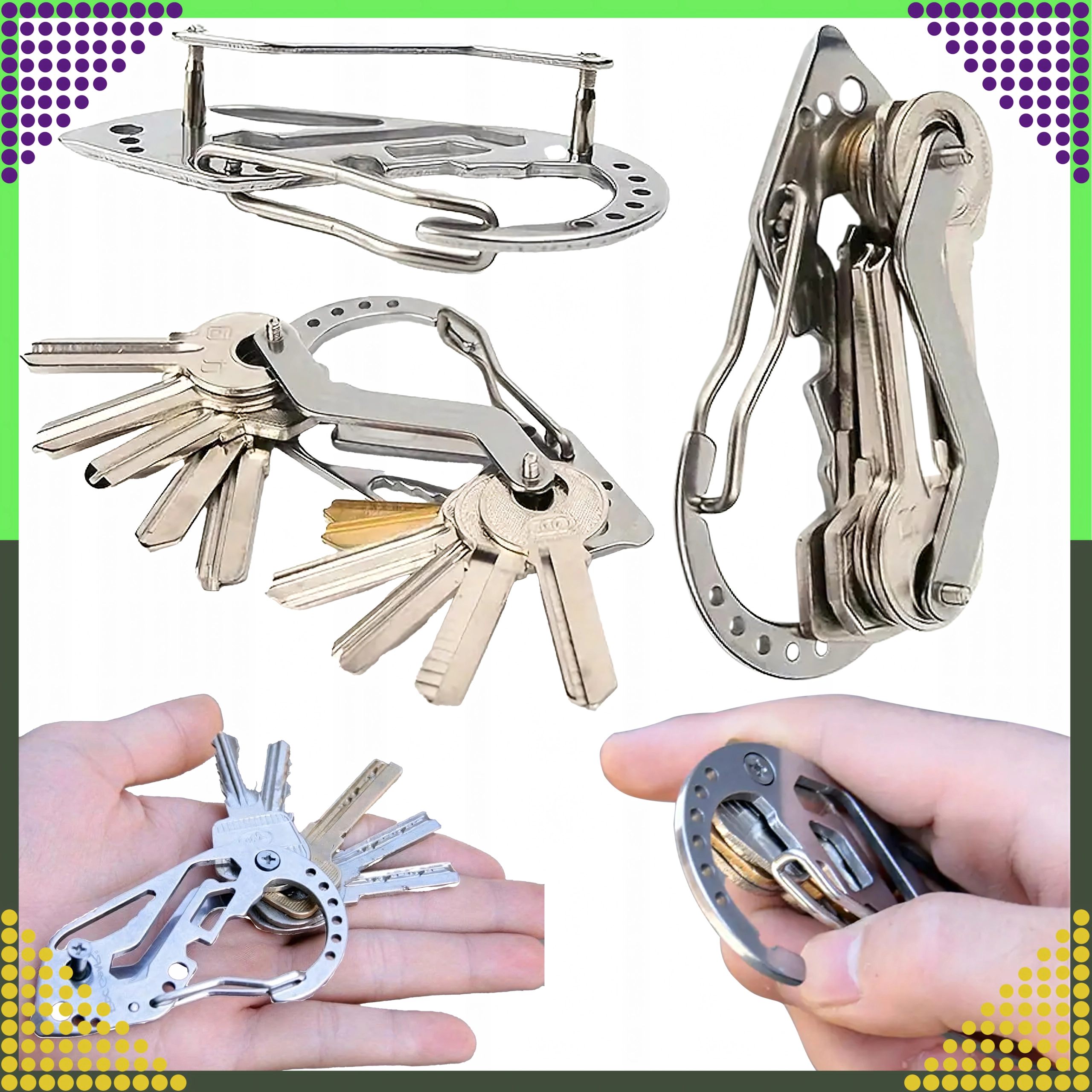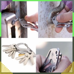 Majte svoje kľúče vždy prehľadne po ruke a zároveň získajte praktické náradie v jednom. Tento kompaktný multi‑tool s karabínou z nehrdzavejúcej ocele pojme až 8 kľúčov a ponúka integrované nástroje ako skrutkovač, otvárač fliaš a viac veľkostí otvorených kľúčov. Pevná konštrukcia, rýchle pripnutie k opasku či batohu a univerzálne využitie v každodenných aj outdoorových situáciách.
