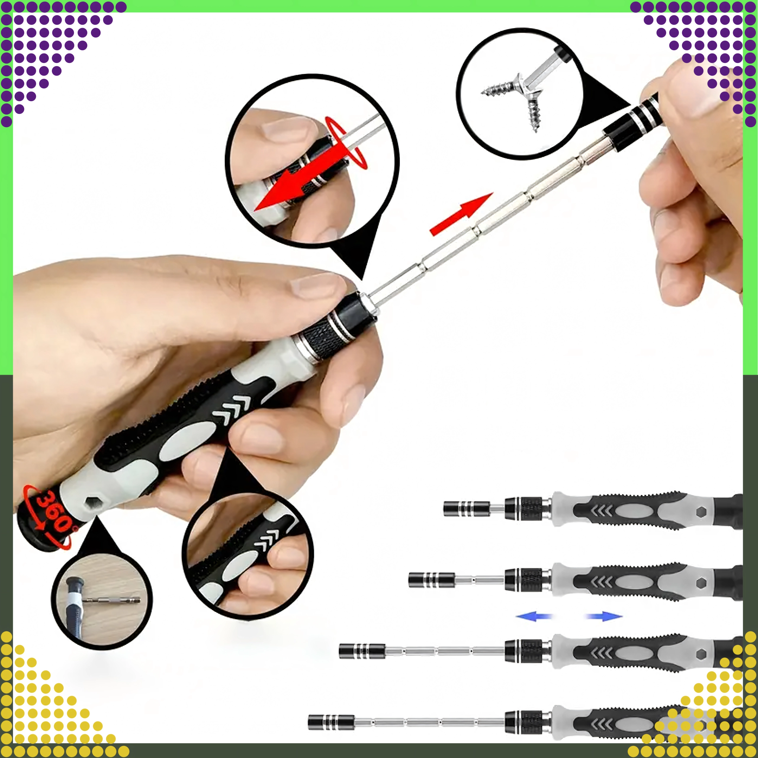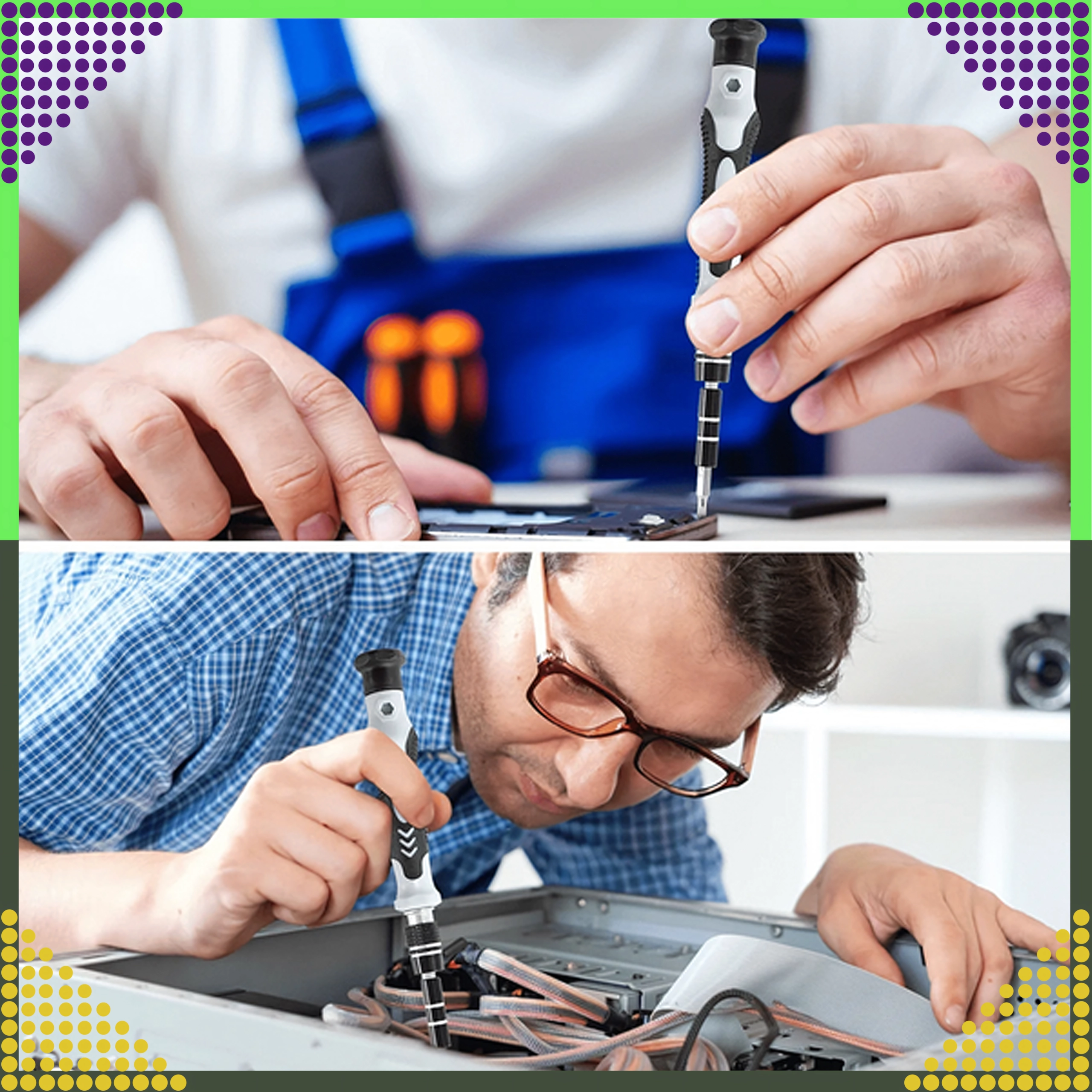 Vymeniteľné bity a štíhla rukoväť zaistia jemnú prácu na telefónoch, notebookoch, doskách plošných spojov, fotoaparátoch aj hodinkách.
