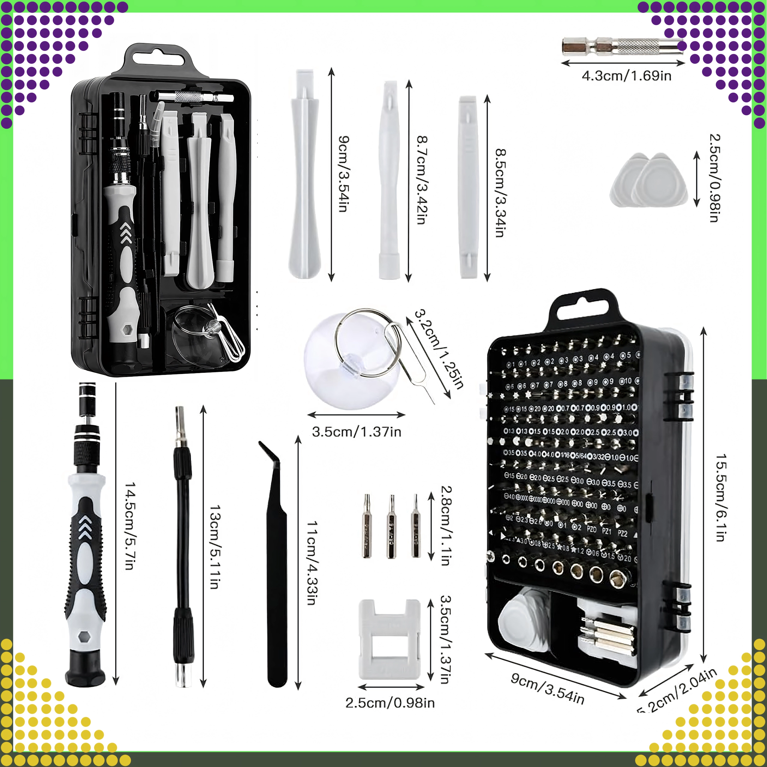 Táto univerzálna sada 118 v 1 je navrhnutá pre domáci aj profesionálny servis. Nájdete v nej 100 magnetických bitov s dlhými driekom, presnú rukoväť, predlžovacie nadstavce, páčidlá a otvárače, pinzetu aj magnetizér. Všetko je uložené v kompaktnom dvojkrídlovom puzdre, ktoré udrží poriadok a uľahčí prenášanie.