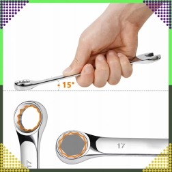 Otvorený koniec na rýchle povoľovanie v úzkych priestoroch, očkový koniec na pevné a bezpečné uchopenie skrutky.