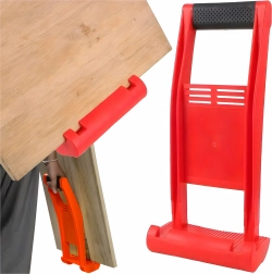 Široká základňa a hák pod hranu dosky poskytujú potrebnú páku a stabilitu. Manipulácia je bezpečná a plynulá aj pri rozmerných paneloch.