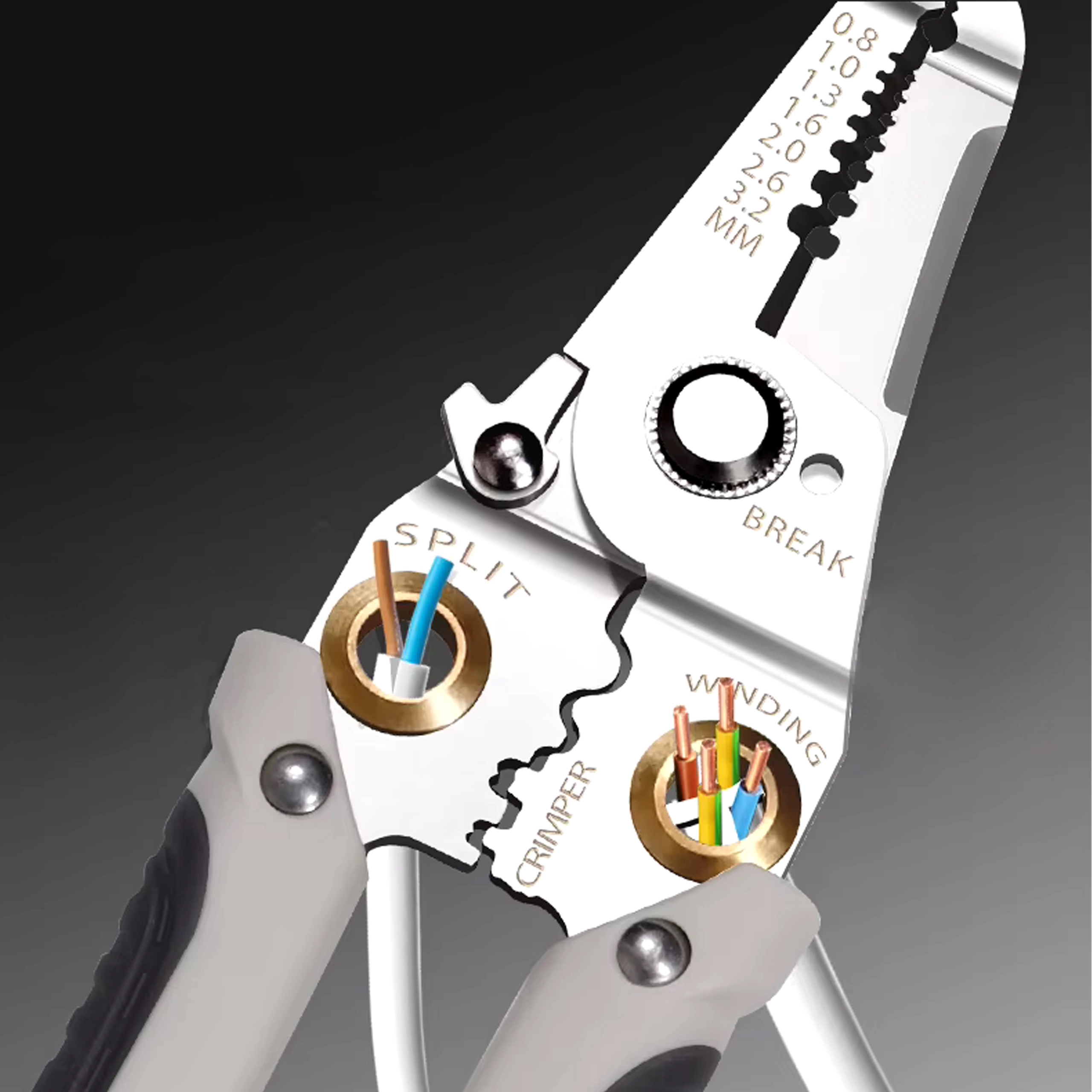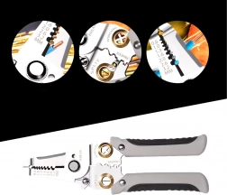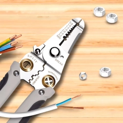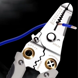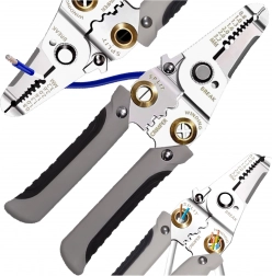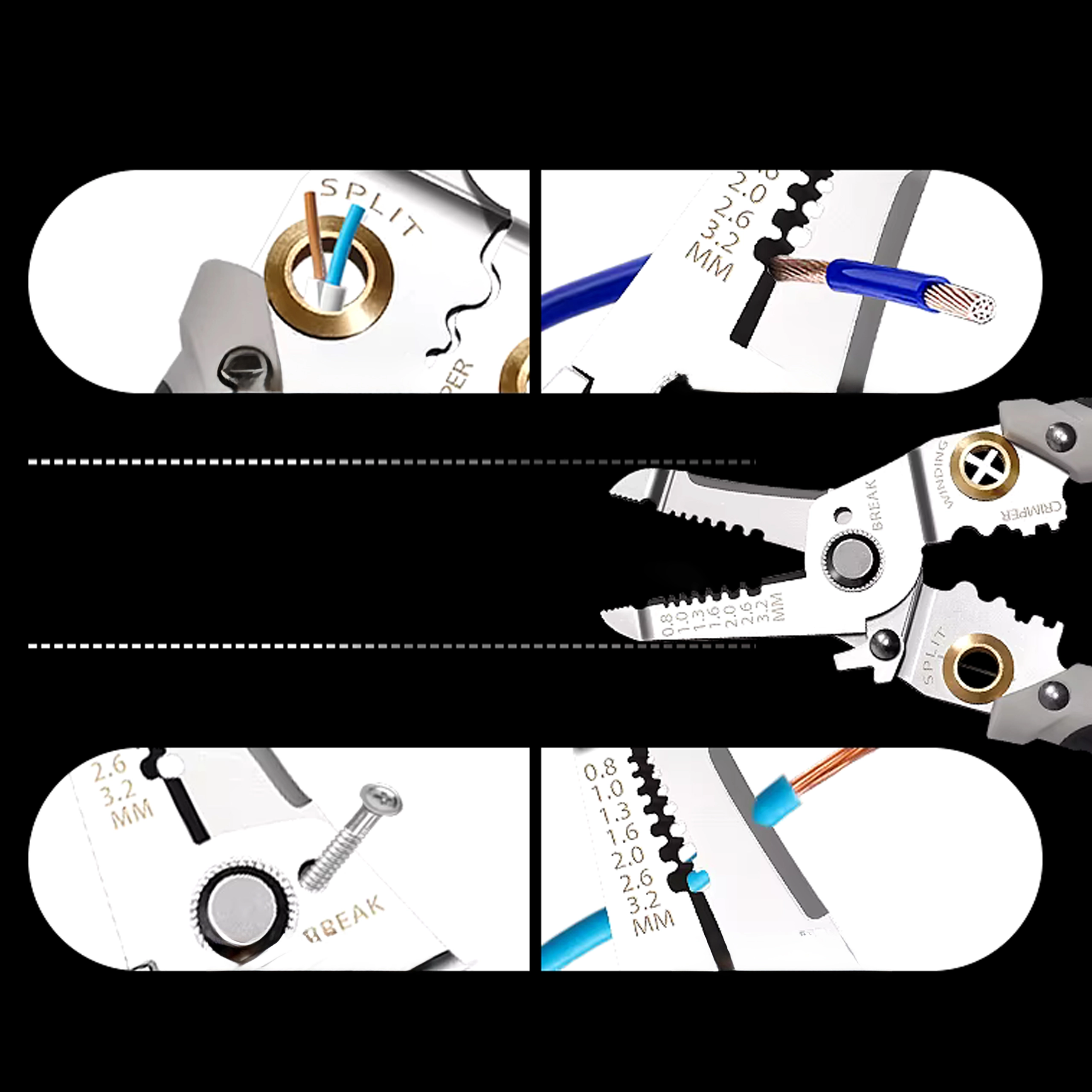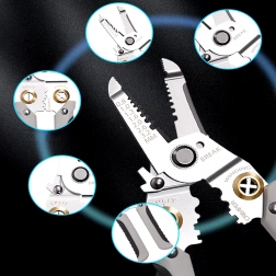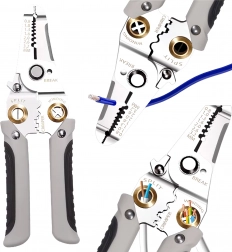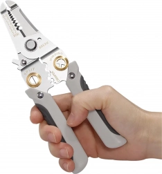 Tieto multifunkčné kliešte na káble uľahčia všetky práce s elektroinštaláciou. V jednom kompaktnom tele získate nástroj na precízne odizolovanie vodičov, čisté strihy, spoľahlivé krimpovanie konektorov aj pevné uchopenie a organizáciu kabeláže. Kvalitná nehrdzavejúca oceľ a premyslená konštrukcia zabezpečujú dlhú životnosť a presnosť.