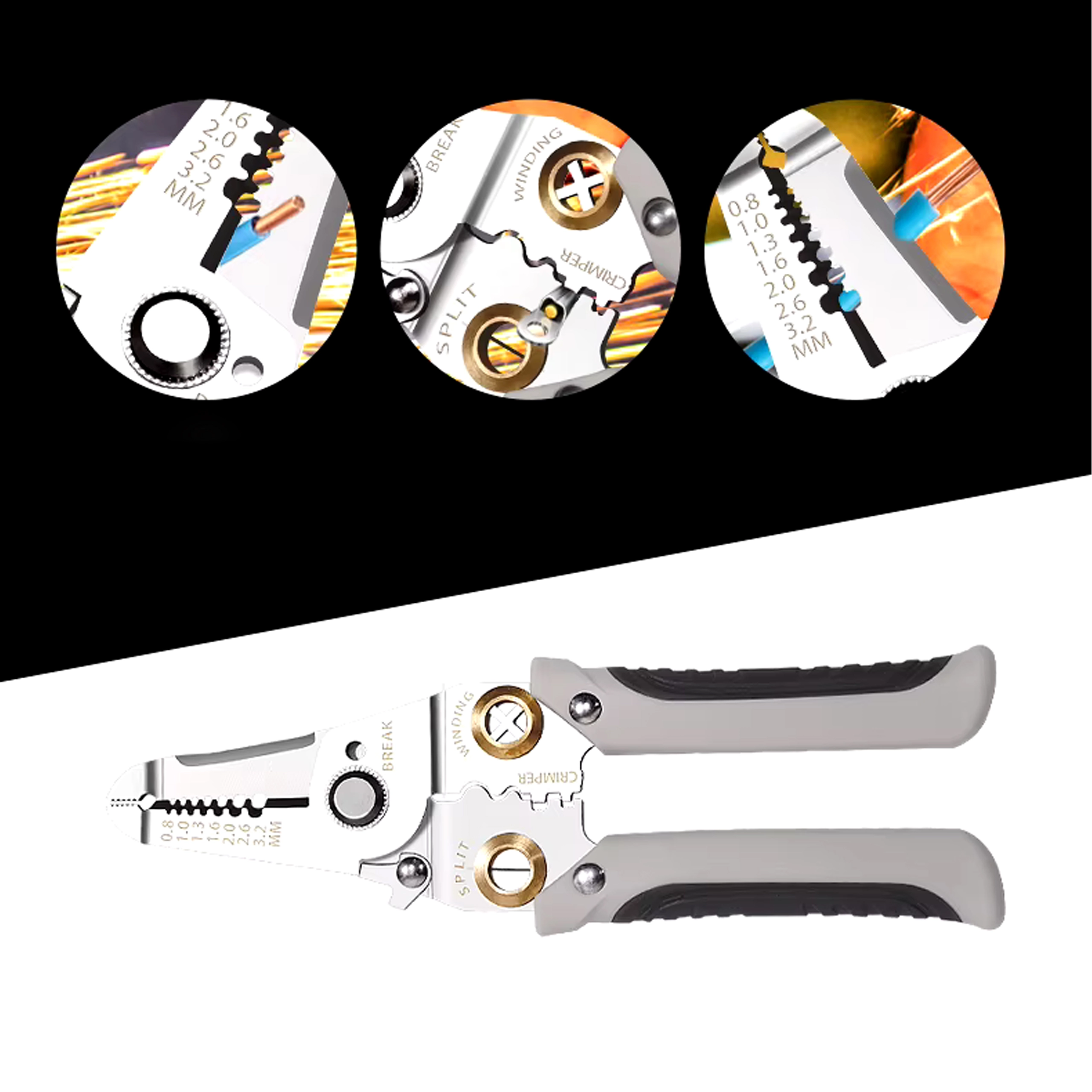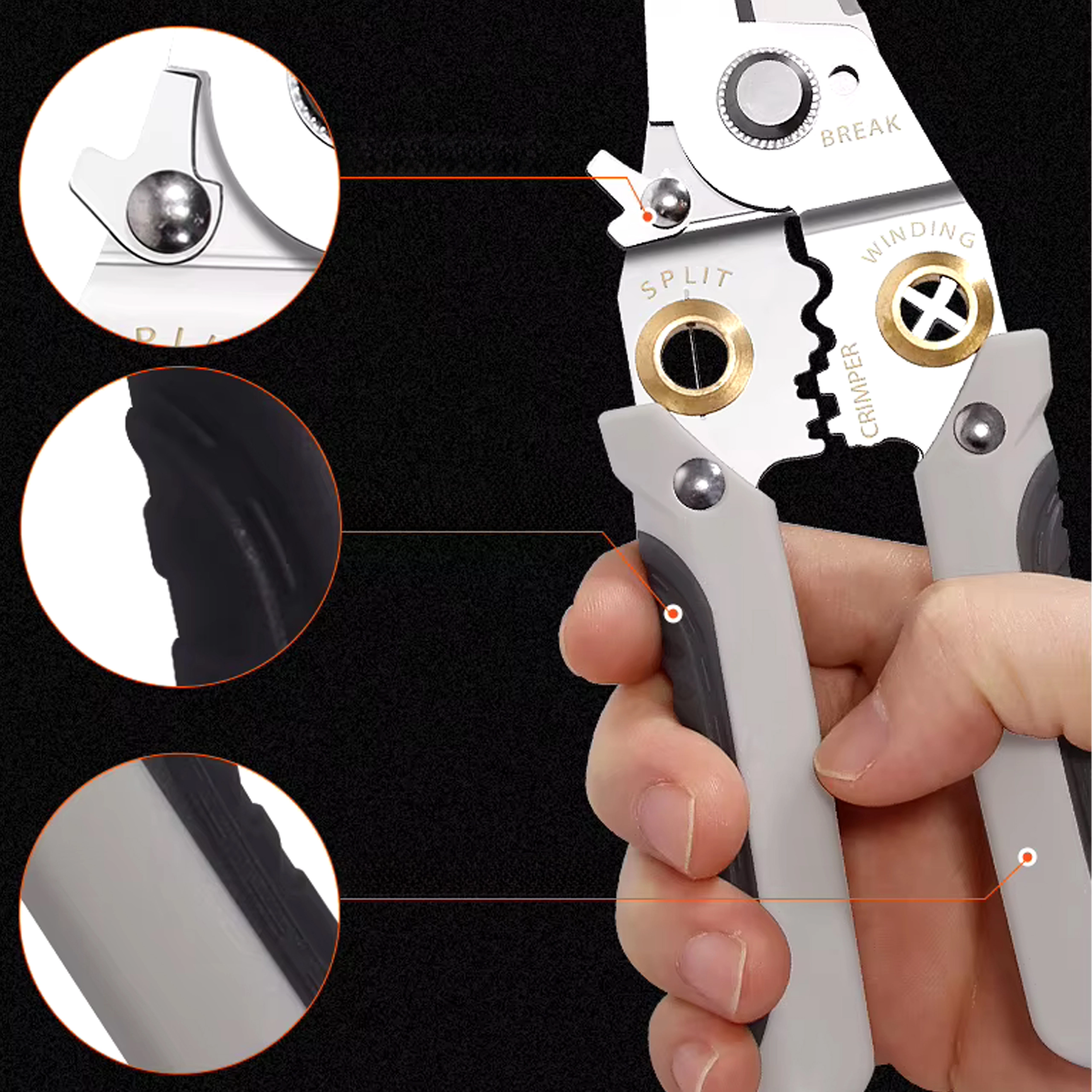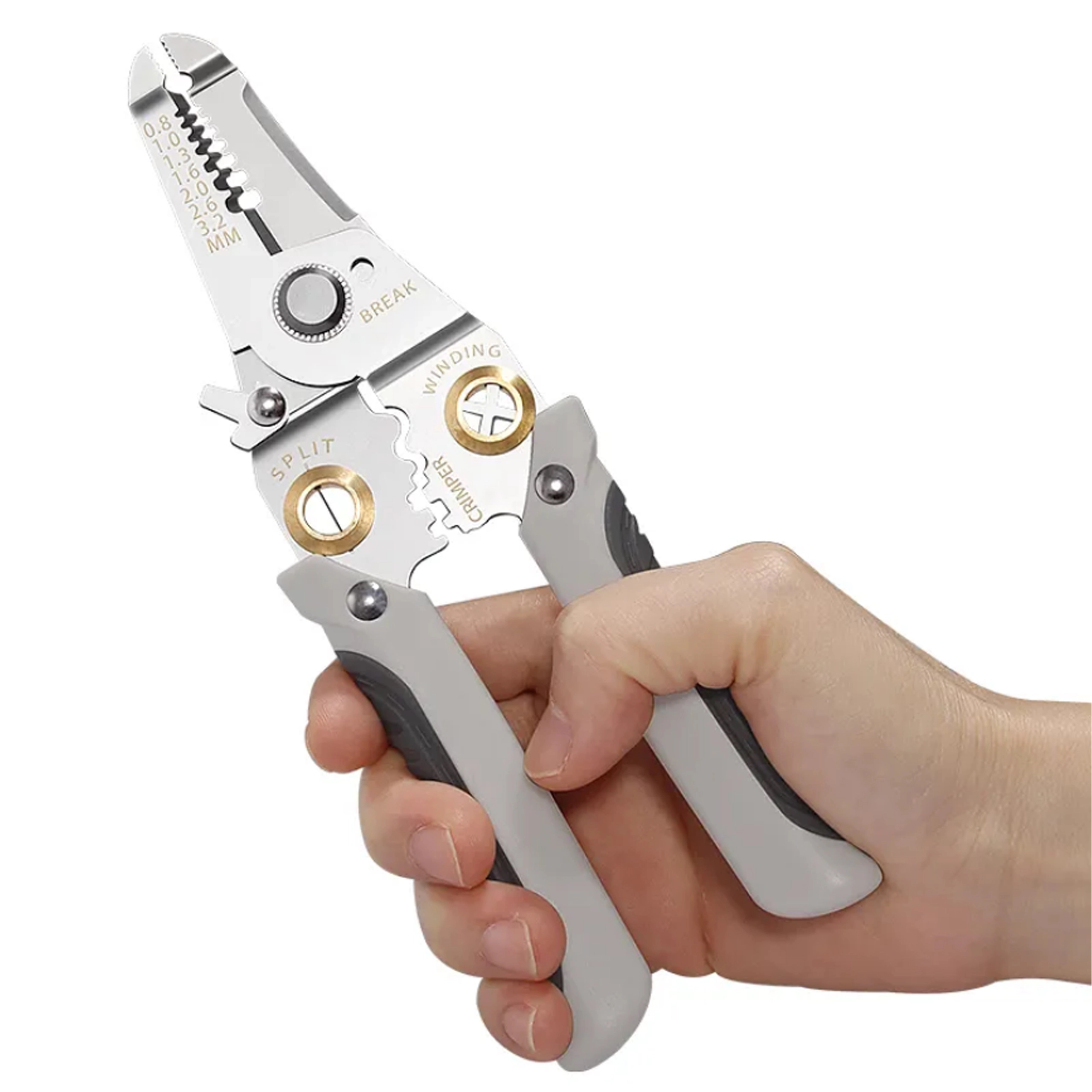 Tieto multifunkčné kliešte na káble uľahčia všetky práce s elektroinštaláciou. V jednom kompaktnom tele získate nástroj na precízne odizolovanie vodičov, čisté strihy, spoľahlivé krimpovanie konektorov aj pevné uchopenie a organizáciu kabeláže. Kvalitná nehrdzavejúca oceľ a premyslená konštrukcia zabezpečujú dlhú životnosť a presnosť.