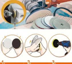 Využijete ich pri práci s gresovou dlažbou, keramikou, prírodným kameňom, mramorom a žulou. Hodia sa na hrany aj rovné plochy, pre dielne, montáže aj renovácie. Kompatibilné s bežnými uhlovými brúskami a leštičkami s príslušným unášačom.