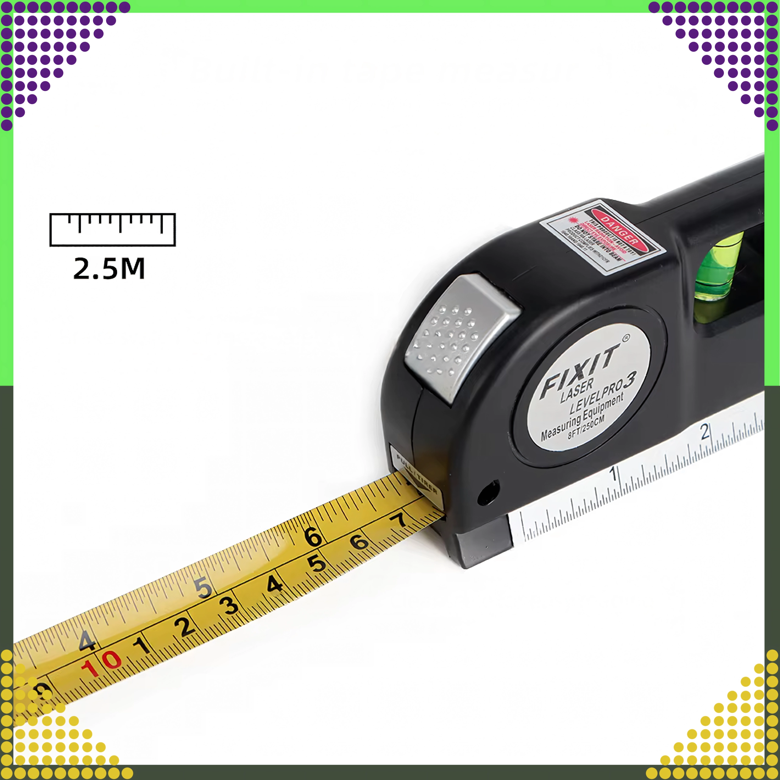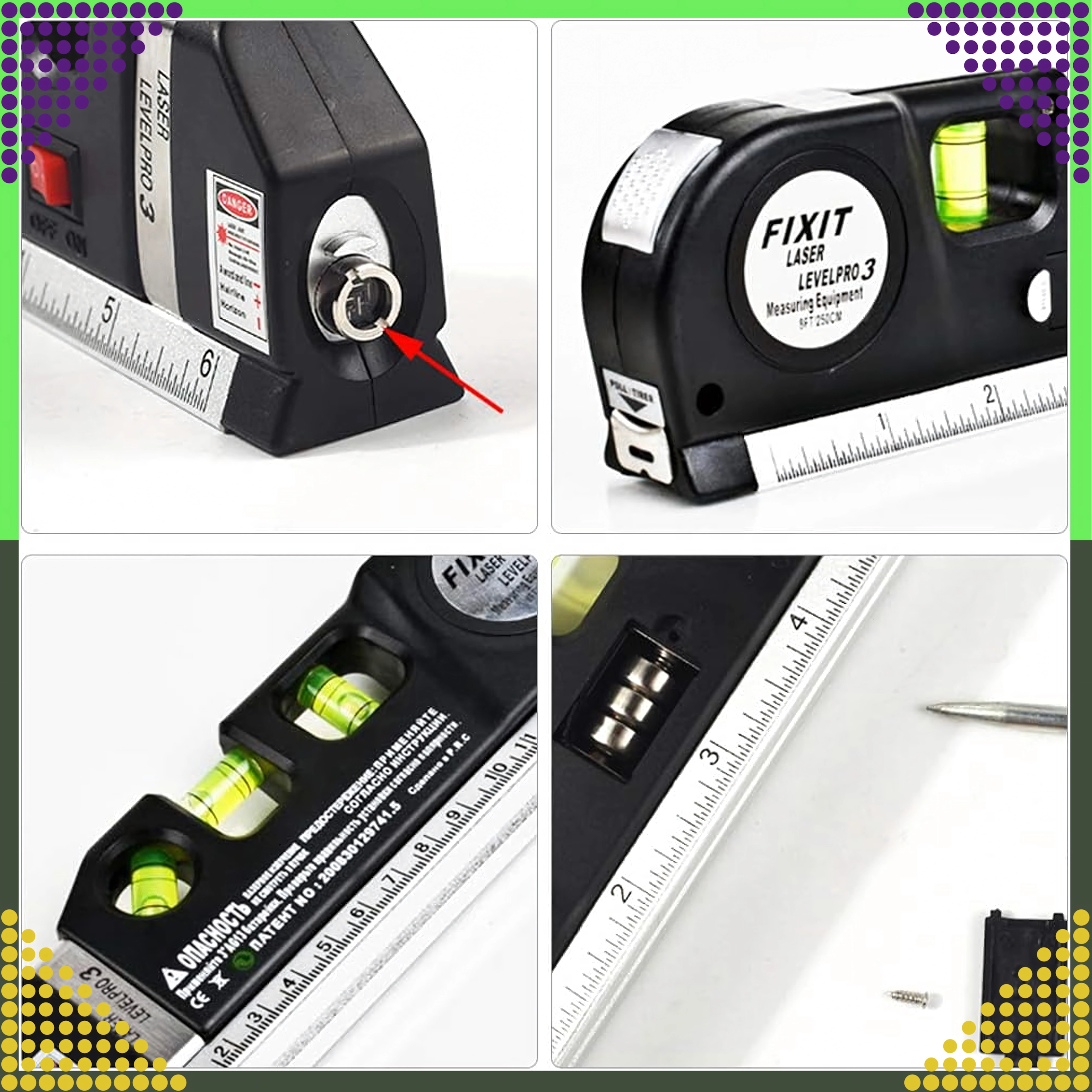 Táto ľahká a kompaktná laserová vodováha (cca 175 g, 18 × 6 × 3 cm) je ideálnym pomocníkom na presné meranie, niveláciu a vyrovnávanie. Vďaka integrovanej meracej páske 2,5 m, trom libelám a laserovej línii ľahko zvládnete montáž poličiek, obkladov, obrazov aj presné rezanie a vŕtanie.