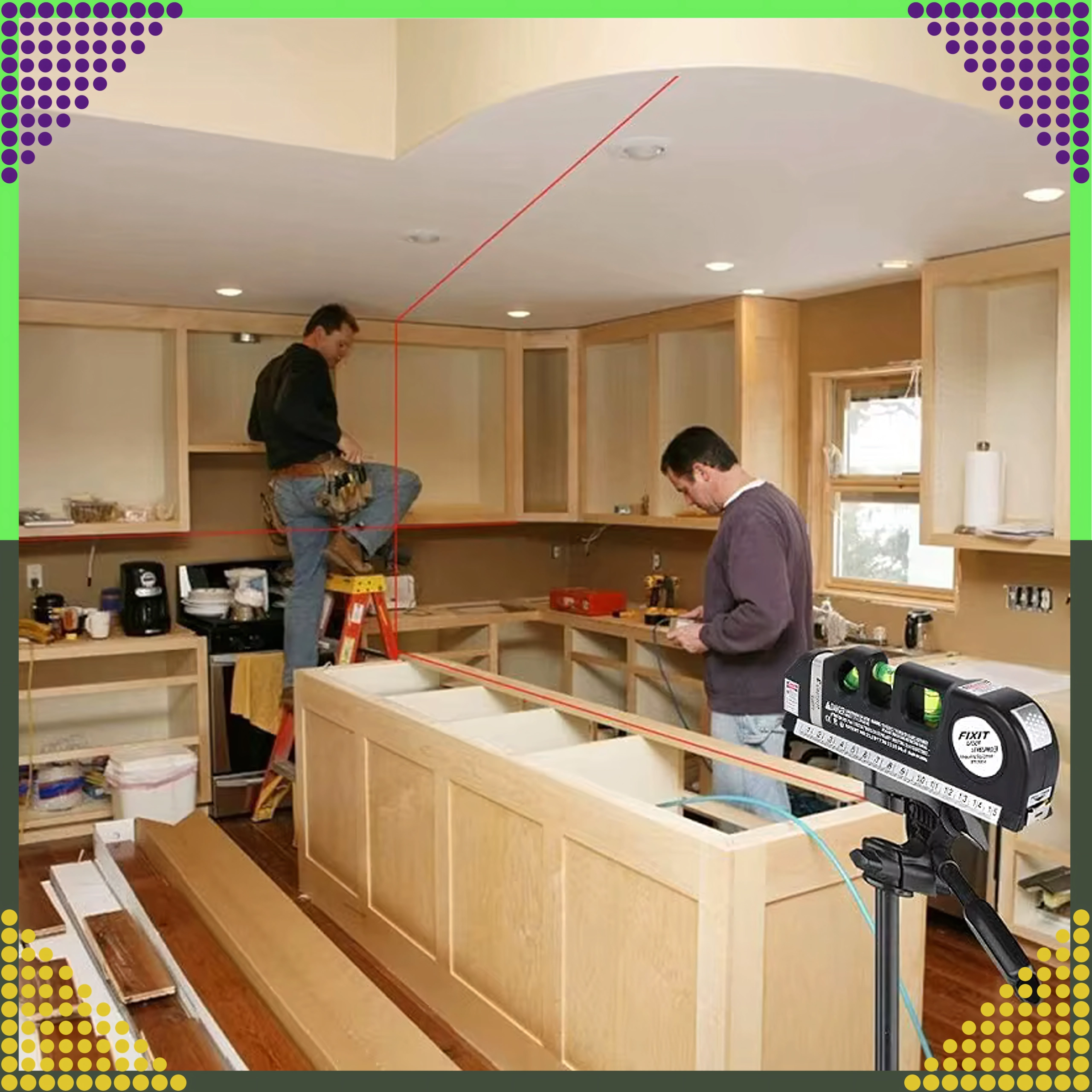 Projekcia jasnej horizontálnej a vertikálnej línie pomôže ľahko a správne umiestniť rámy, poličky či obklady.