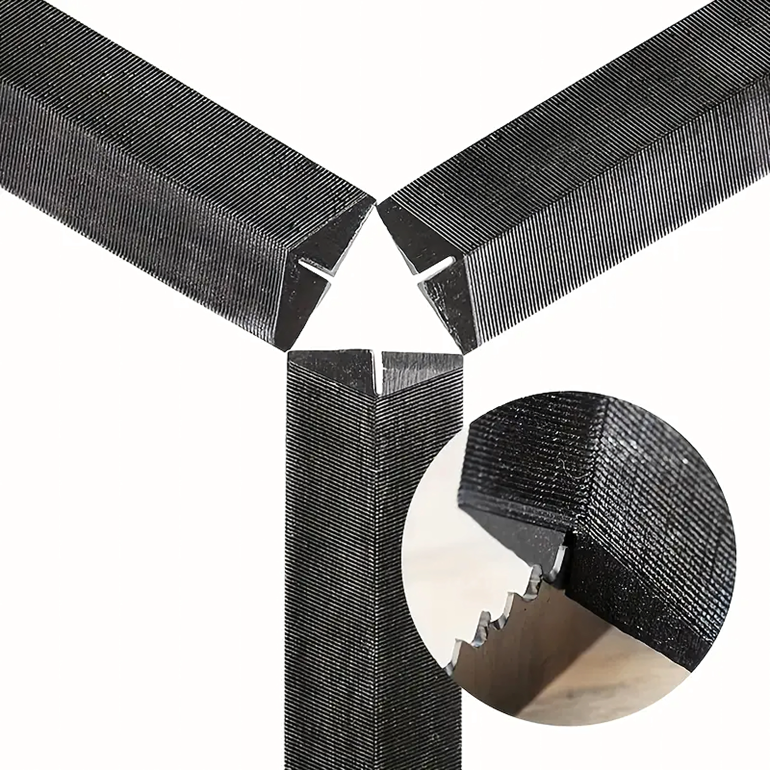 Úzke hrany a ostré kúty pilníka perfektne sedia do drážok, zubov a ťažko prístupných miest, kde bežné ploché pilníky nestačia.