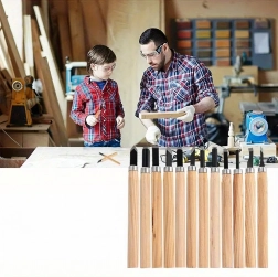 Hladké drevené rukoväte s kovovou objímkou dobre sedia v ruke a zaisťujú stabilný úchop aj pri dlhšej práci.