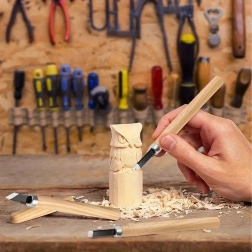 Ideálna pre začiatočníkov aj pokročilých: od jemného zdobenia, výroby reliéfov až po tvorbu figúrok, pečiatok či dekorácií. Vďaka rôznym tvarom čepelí zvládnete presné rezy, V-drážky, dutiny aj ploché zárezy v dreve, linoleu či mäkkých materiáloch.