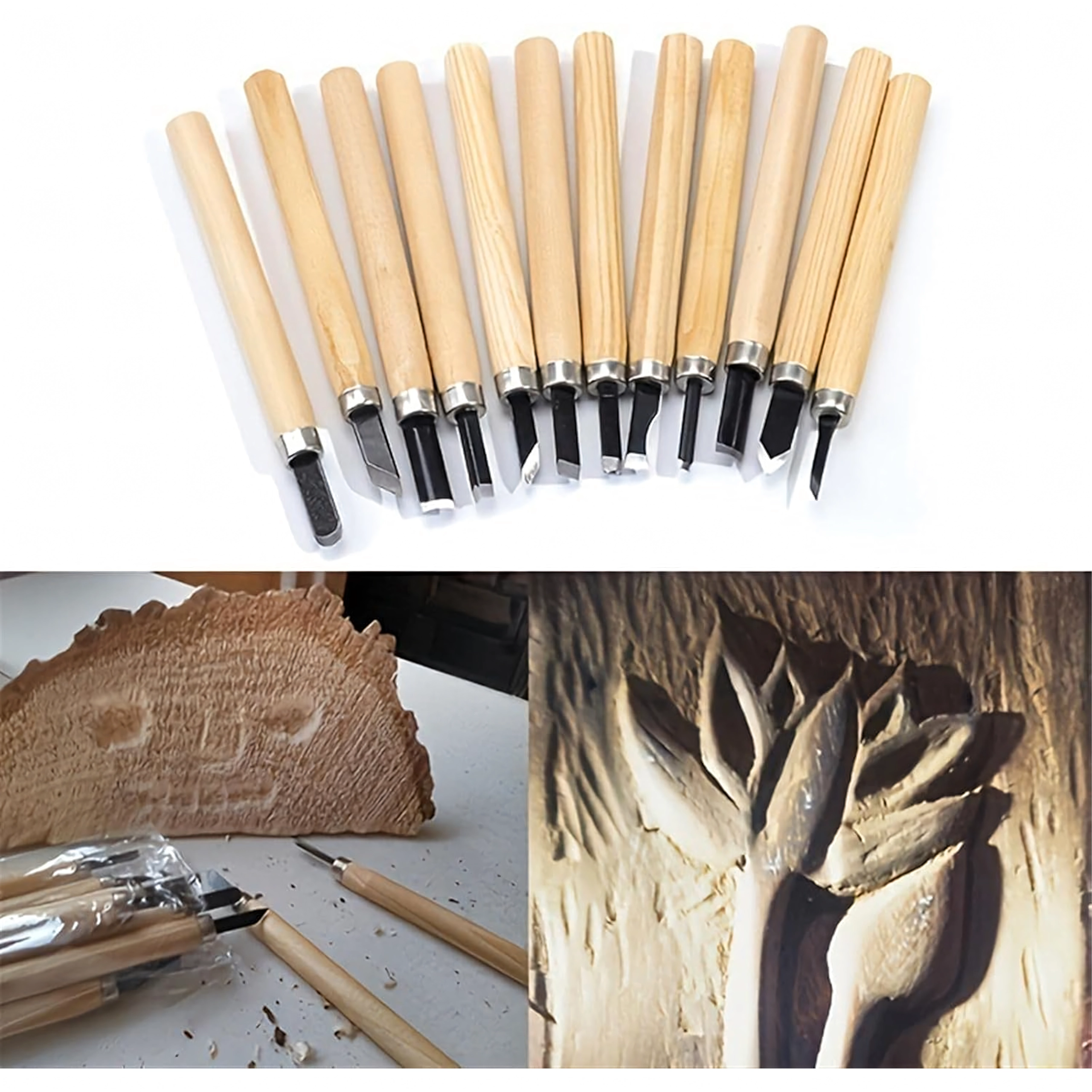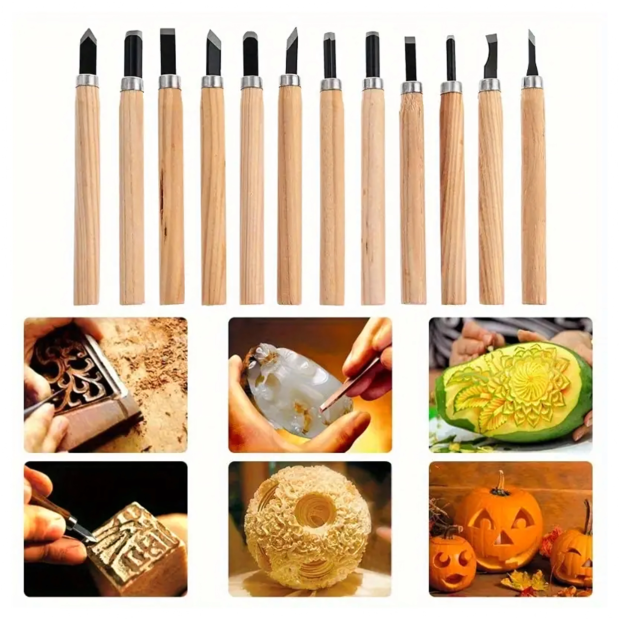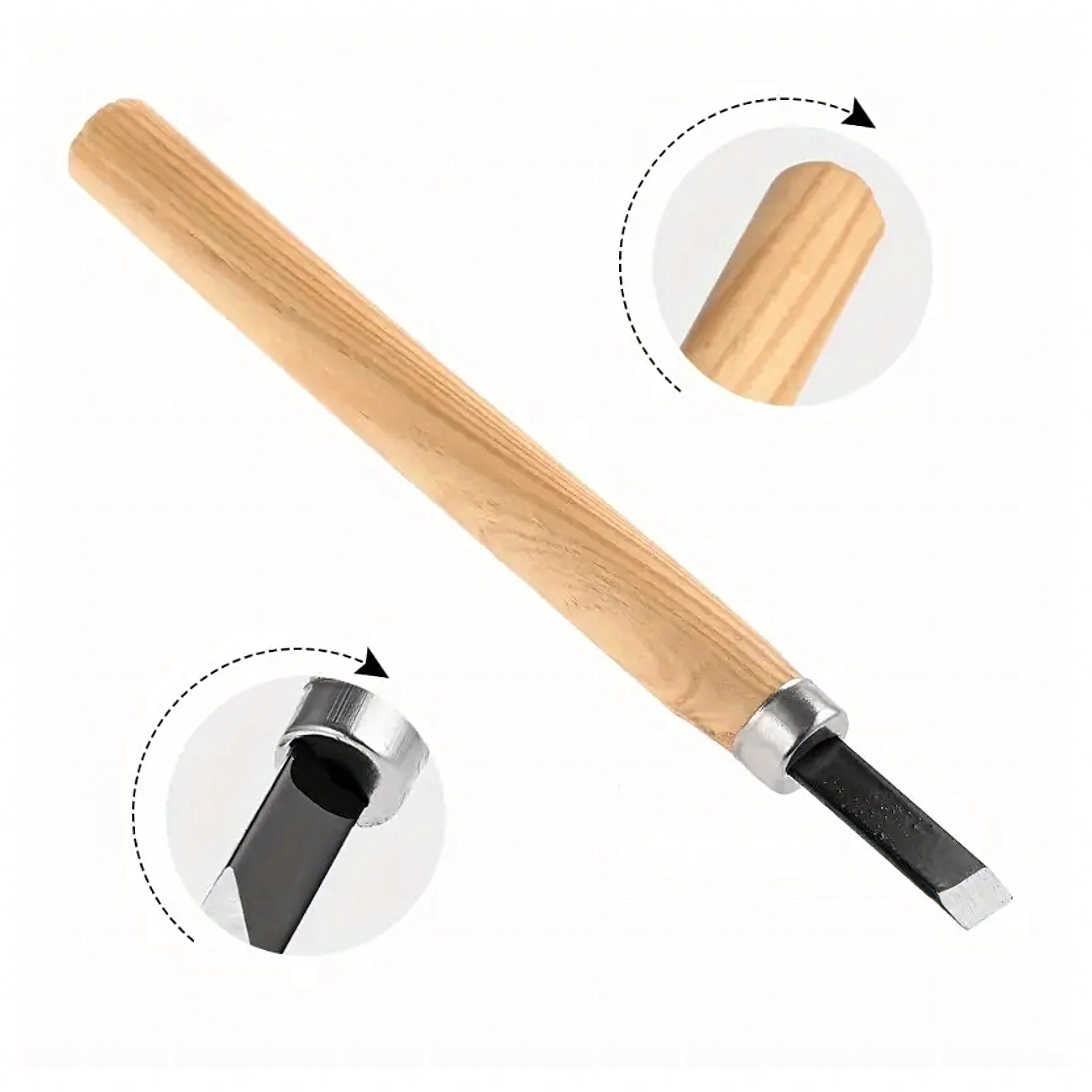 Súprava zahŕňa ploché, V a U dláta na detaily, prehĺbenia aj rovné odoberanie materiálu – všetko, čo potrebujete na rezbárske projekty.