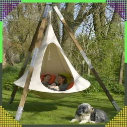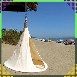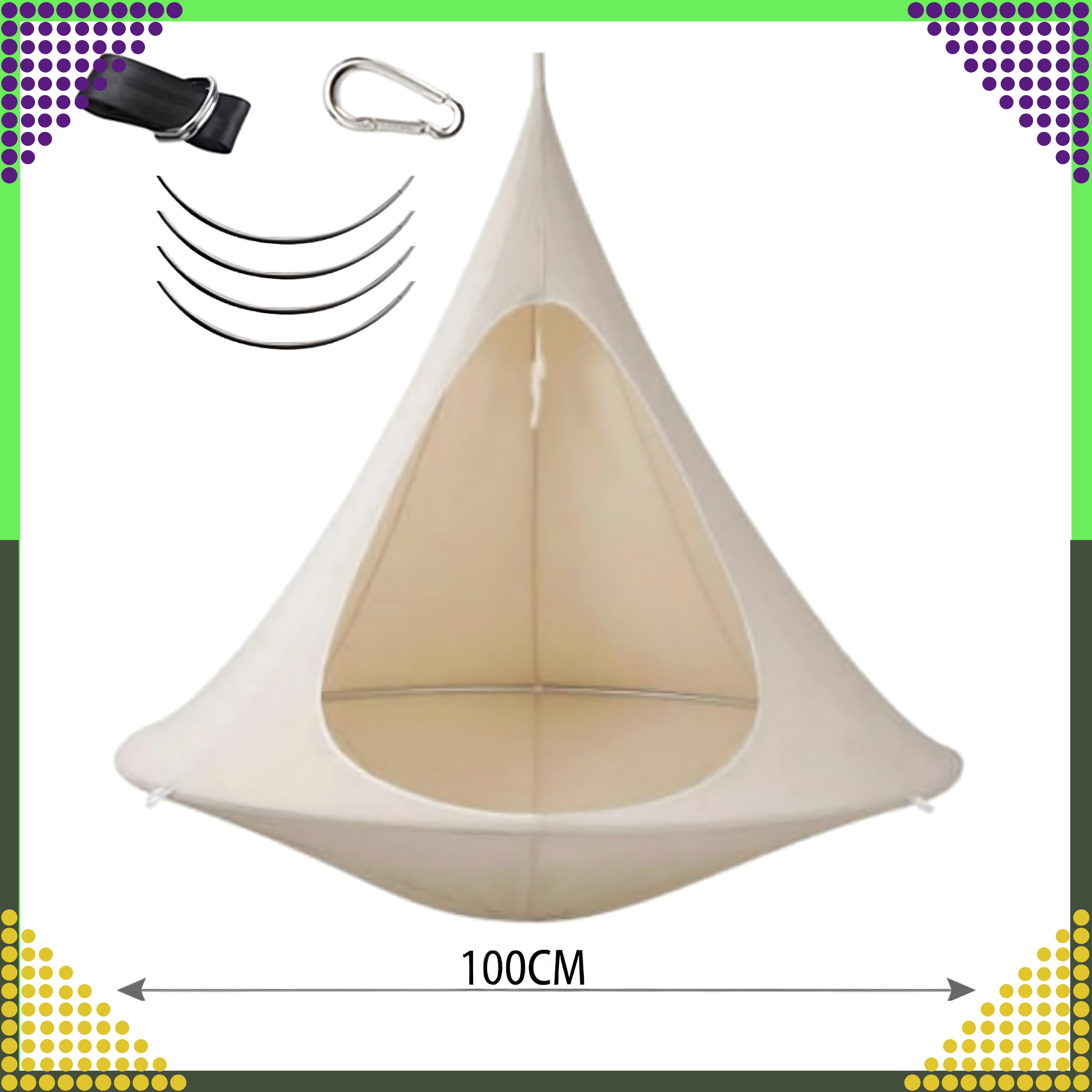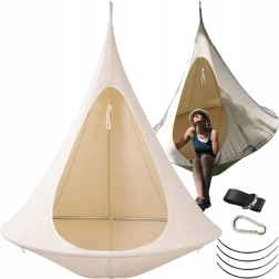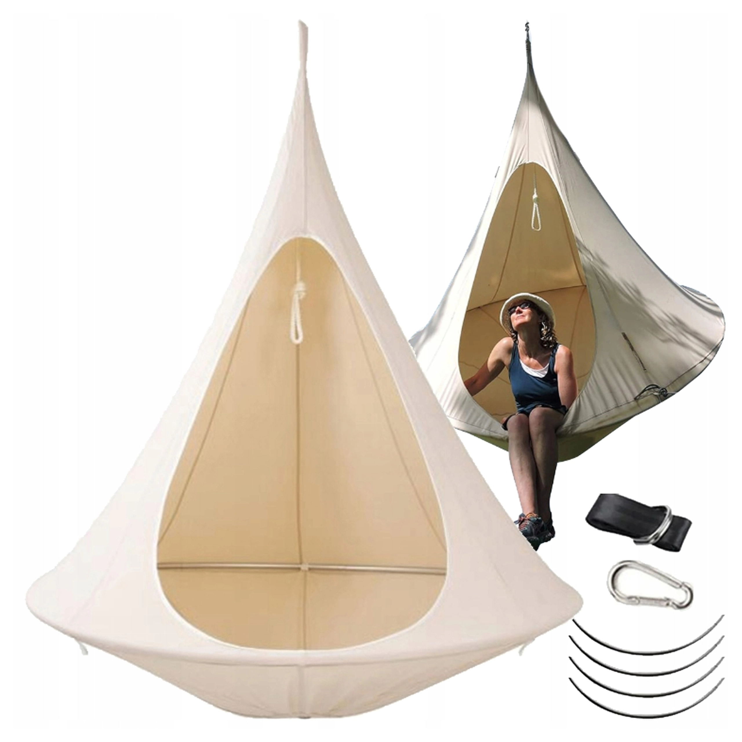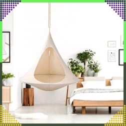 Závesný hamak v tvare kokonu vytvára príjemné, bezpečné a pokojné útočisko na čítanie, relax alebo popoludňajší šlofík. Vďaka priedušnému materiálu a odolnému zaveseniu na jednom bode sa hodí do detskej izby, obývačky aj na záhradu pod strom. Béžová farba sa ľahko kombinuje s akýmkoľvek štýlom.