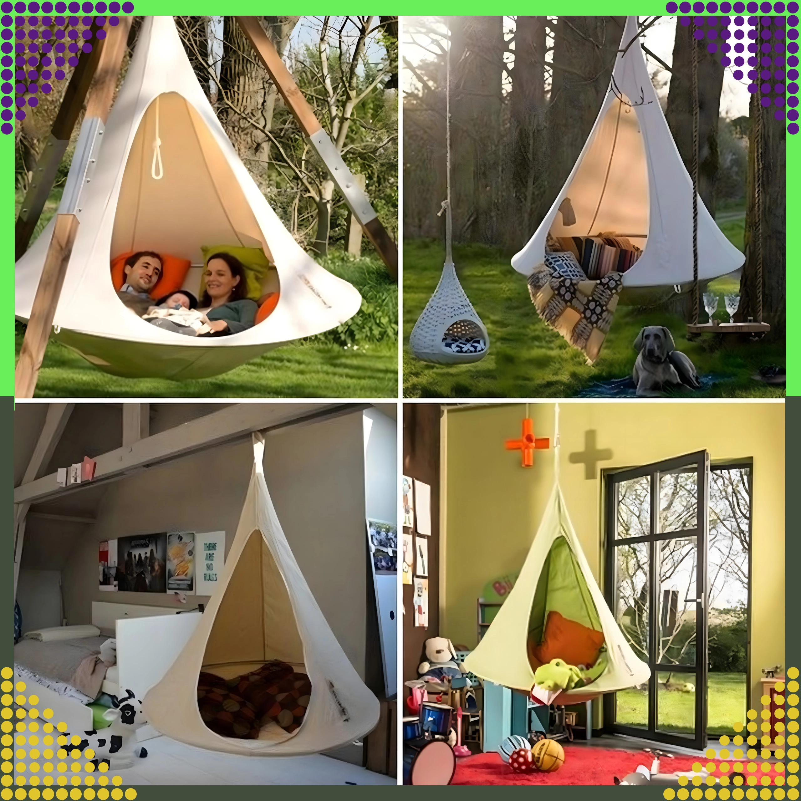 - Pohodlný relax: útulný „kokon“ na čítanie, hojdanie a oddych.