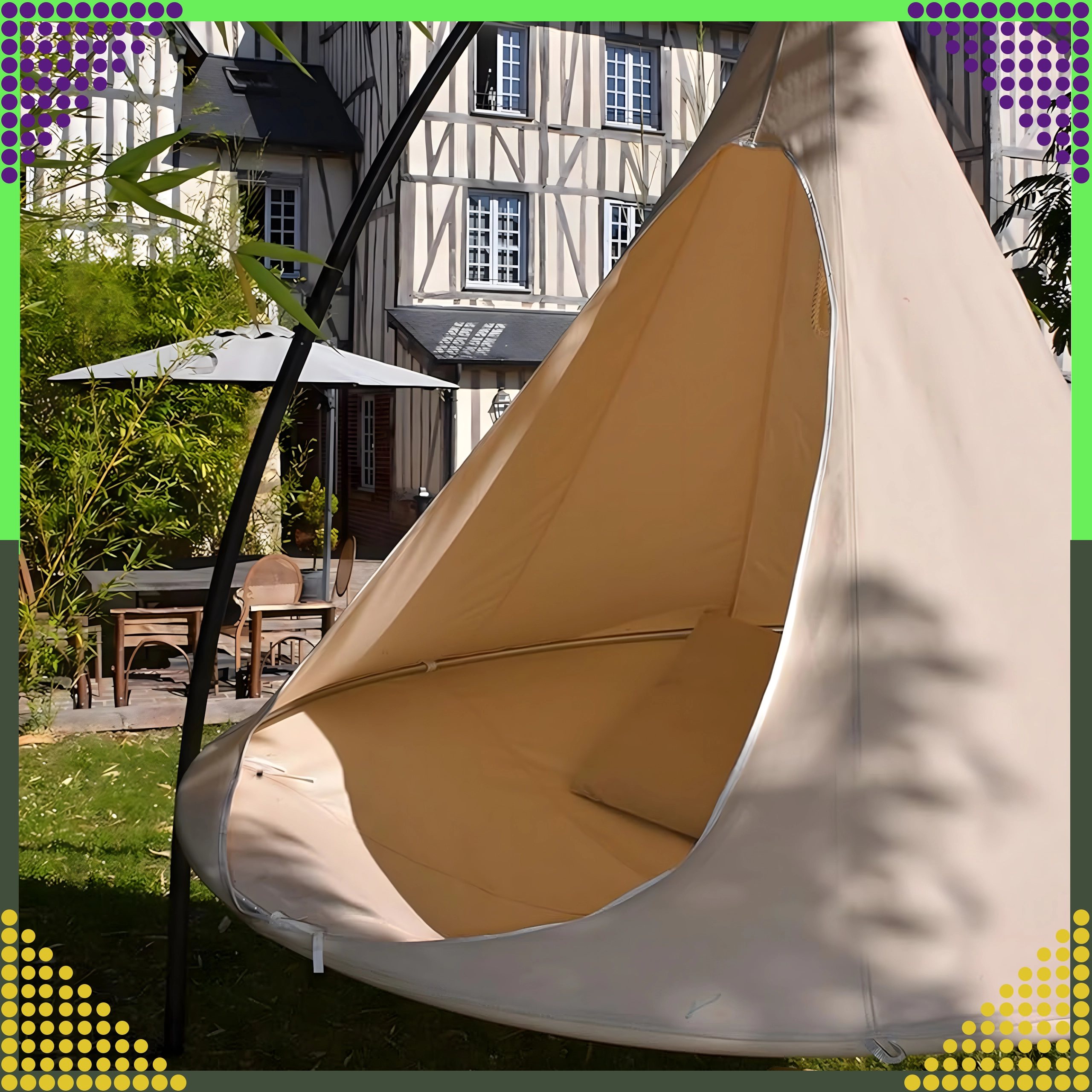 Užite si dokonalý oddych v závesnom hamaku typu kokon, ktorý kombinuje štýlový dizajn, pevnú konštrukciu a maximálne pohodlie. Tento útulný „kokon“ je ideálny pre záhradu, terasu, balkón aj interiér a vďaka nosnosti 150 kg poteší deti aj dospelých. Priedušný materiál a jednoduchá údržba z neho robia skvelé miesto na relax počas celého roka.