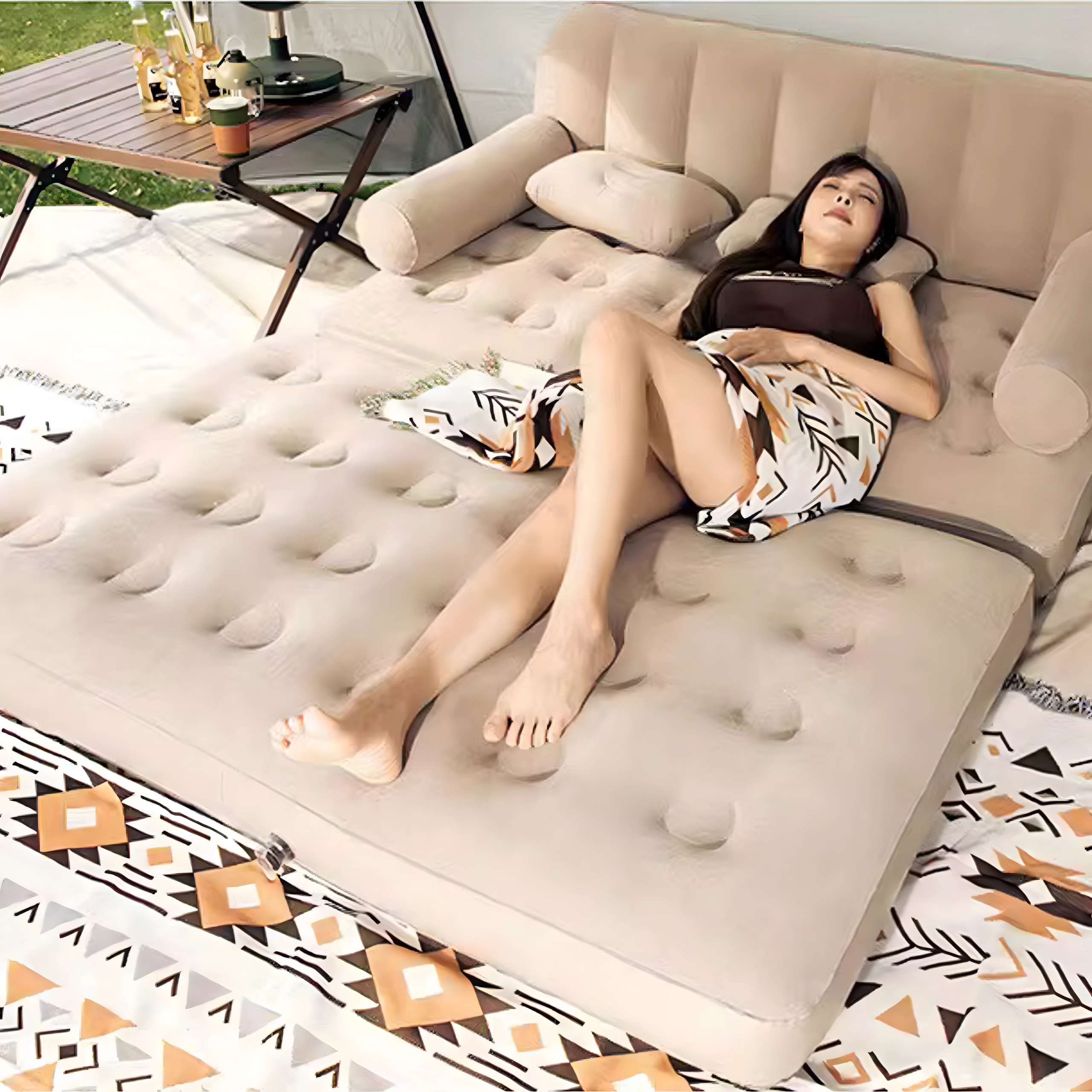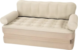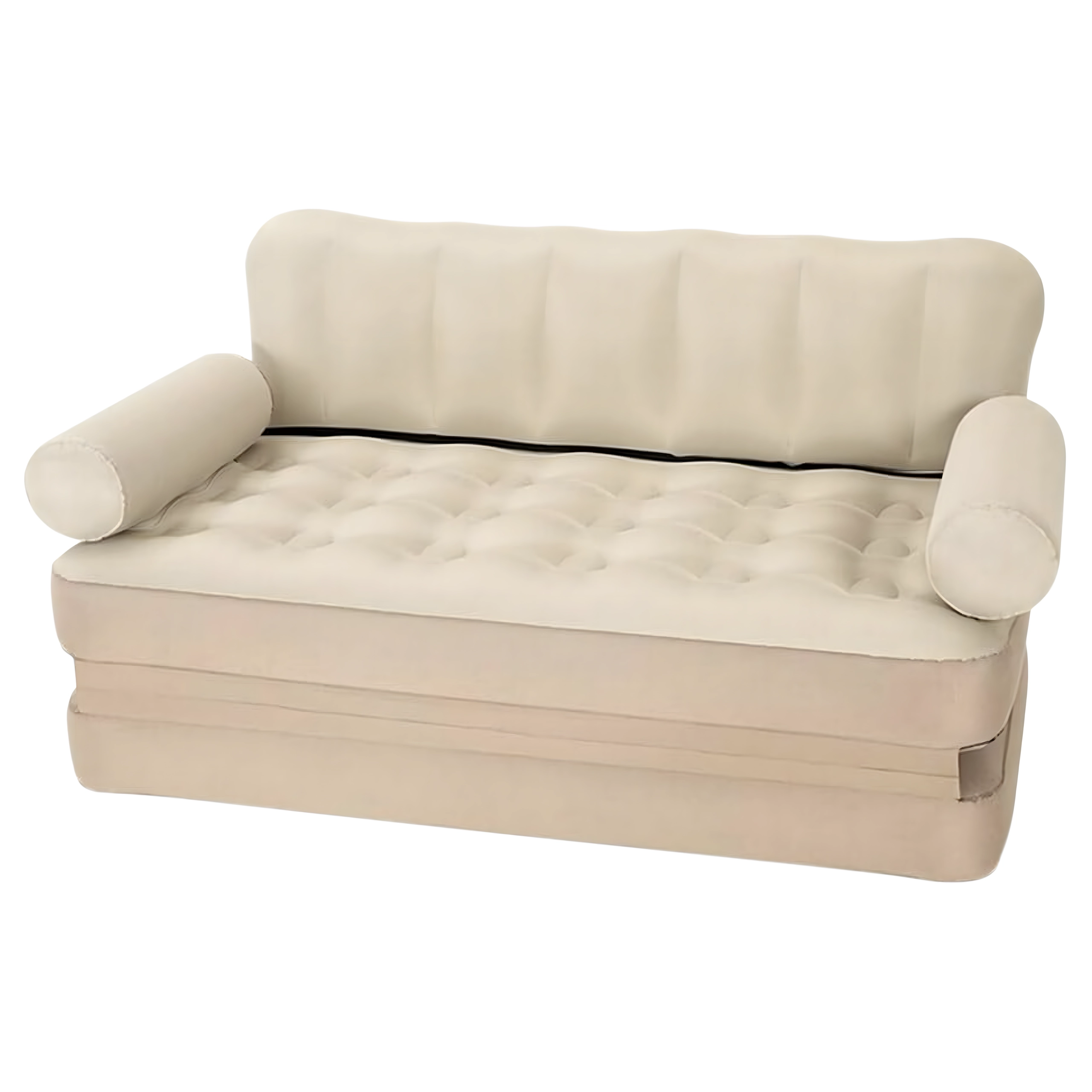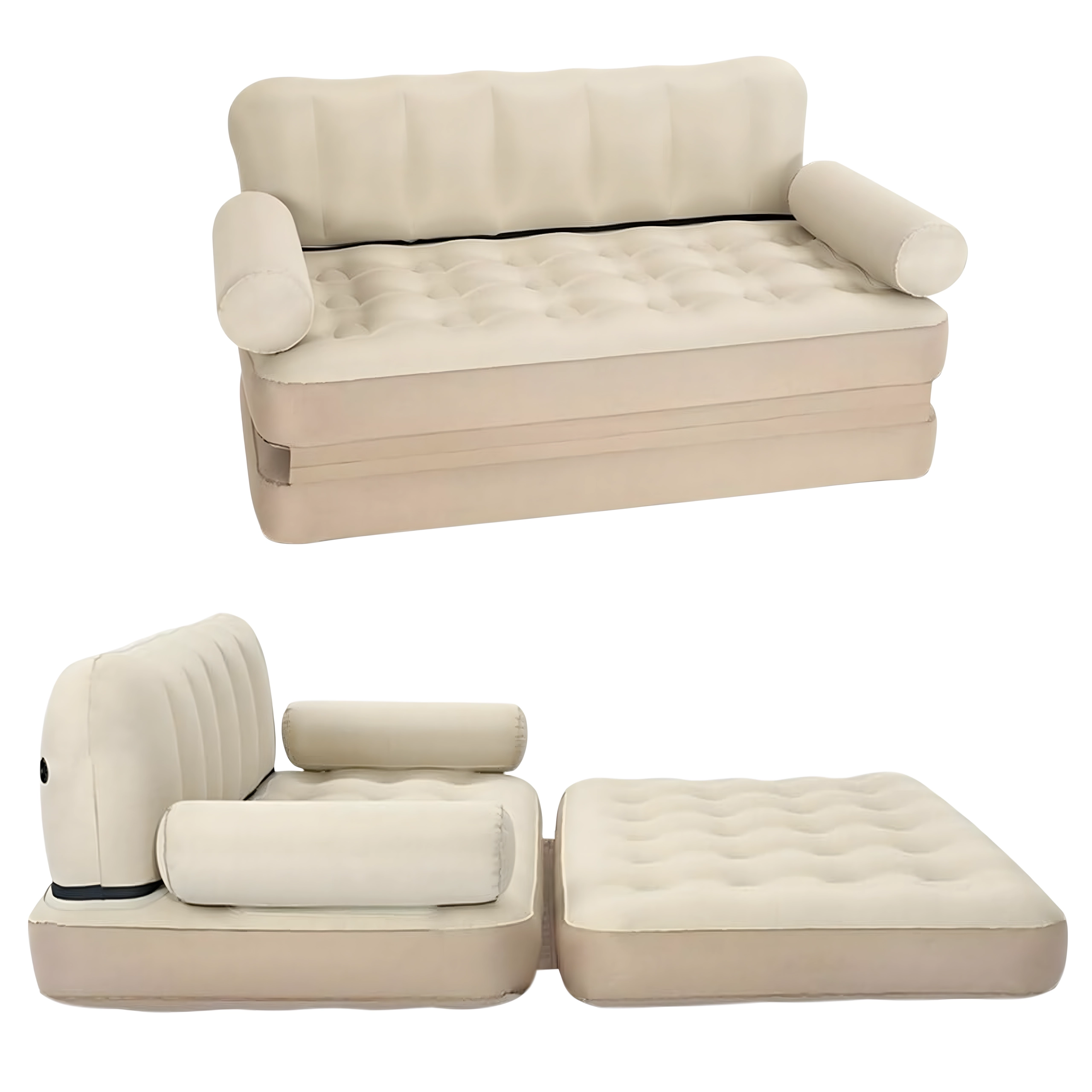 Univerzálna nafukovacia sofa 5v1 je praktický nábytok pre každodenné pohodlie doma aj na cestách. Slúži ako pohovka, leňoška, matrac a posteľ pre dve osoby. Vďaka odolnému PVC je ľahká, ľahko prenosná a v elegantnej béžovej farbe sa hodí do každého interiéru aj na záhradu.