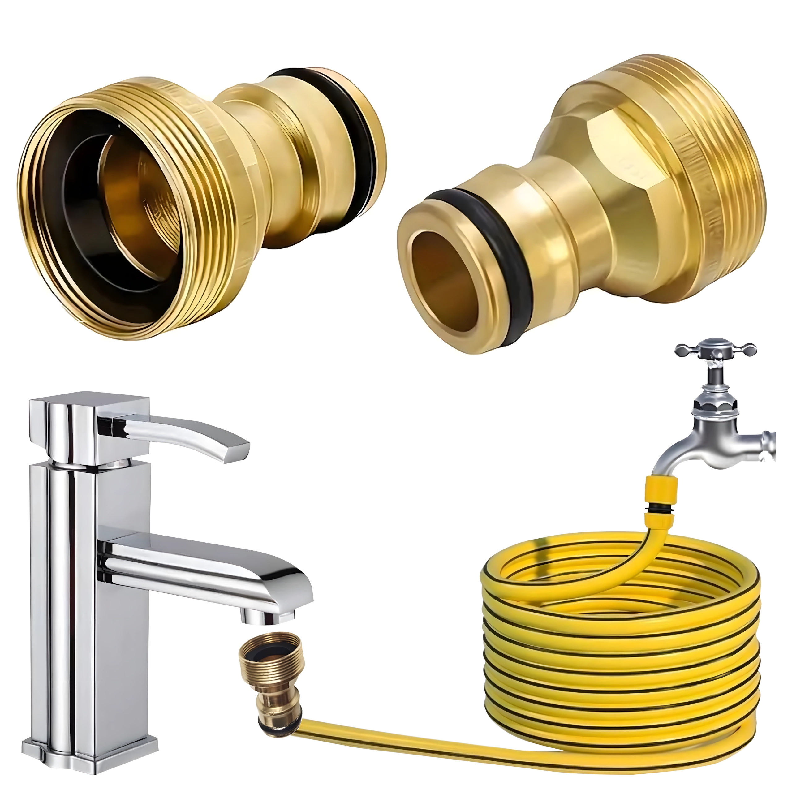 Univerzálny mosadzný adaptér G3/4 umožní rýchle pripojenie záhradnej hadice ku kohútiku bez náradia. Vďaka odolnej mosadznej konštrukcii a vymeniteľnému tesniacemu O-krúžku zaistí spoľahlivé, tesné a bezkvapkové spojenie na zavlažovanie, umývanie auta aj upratovanie okolo domu.