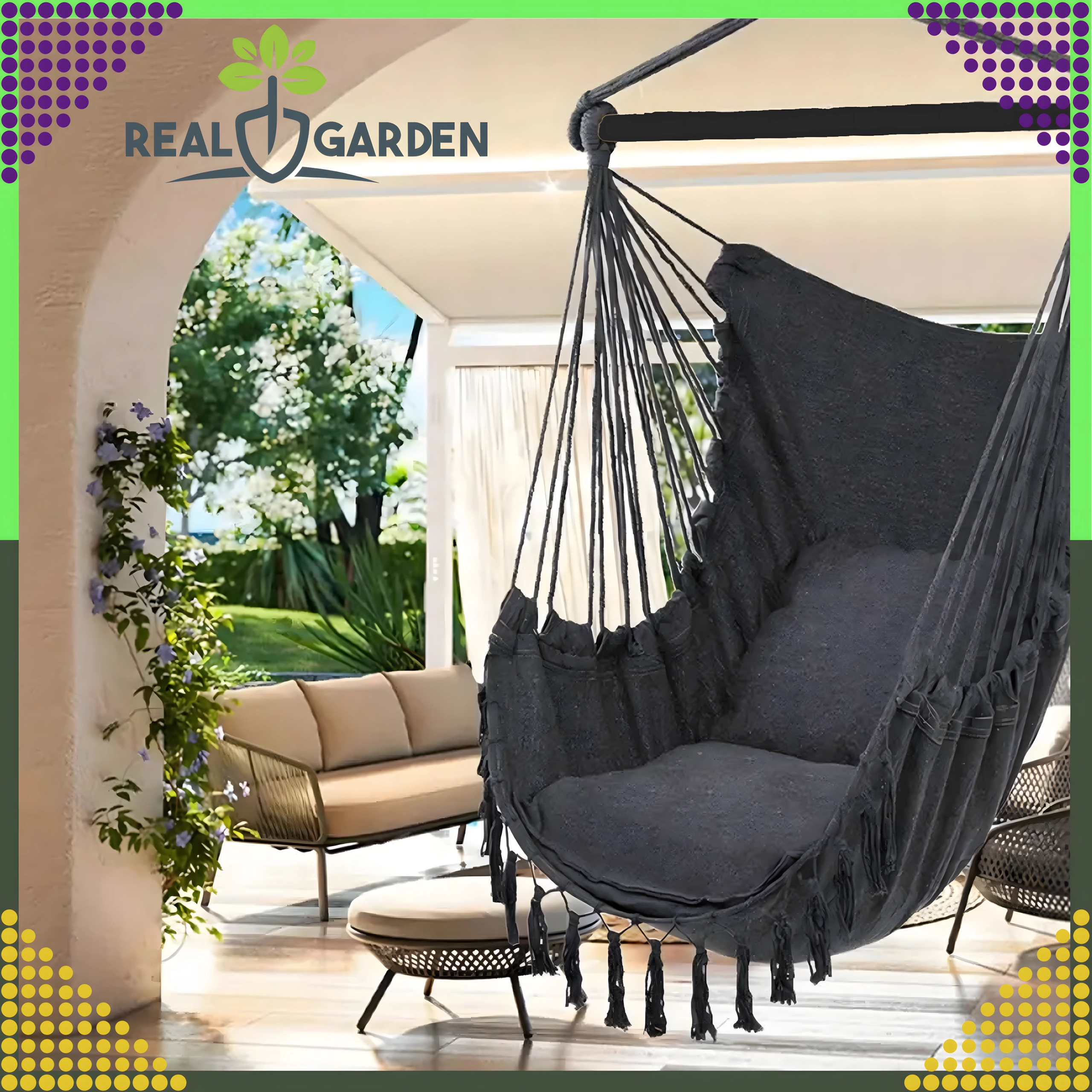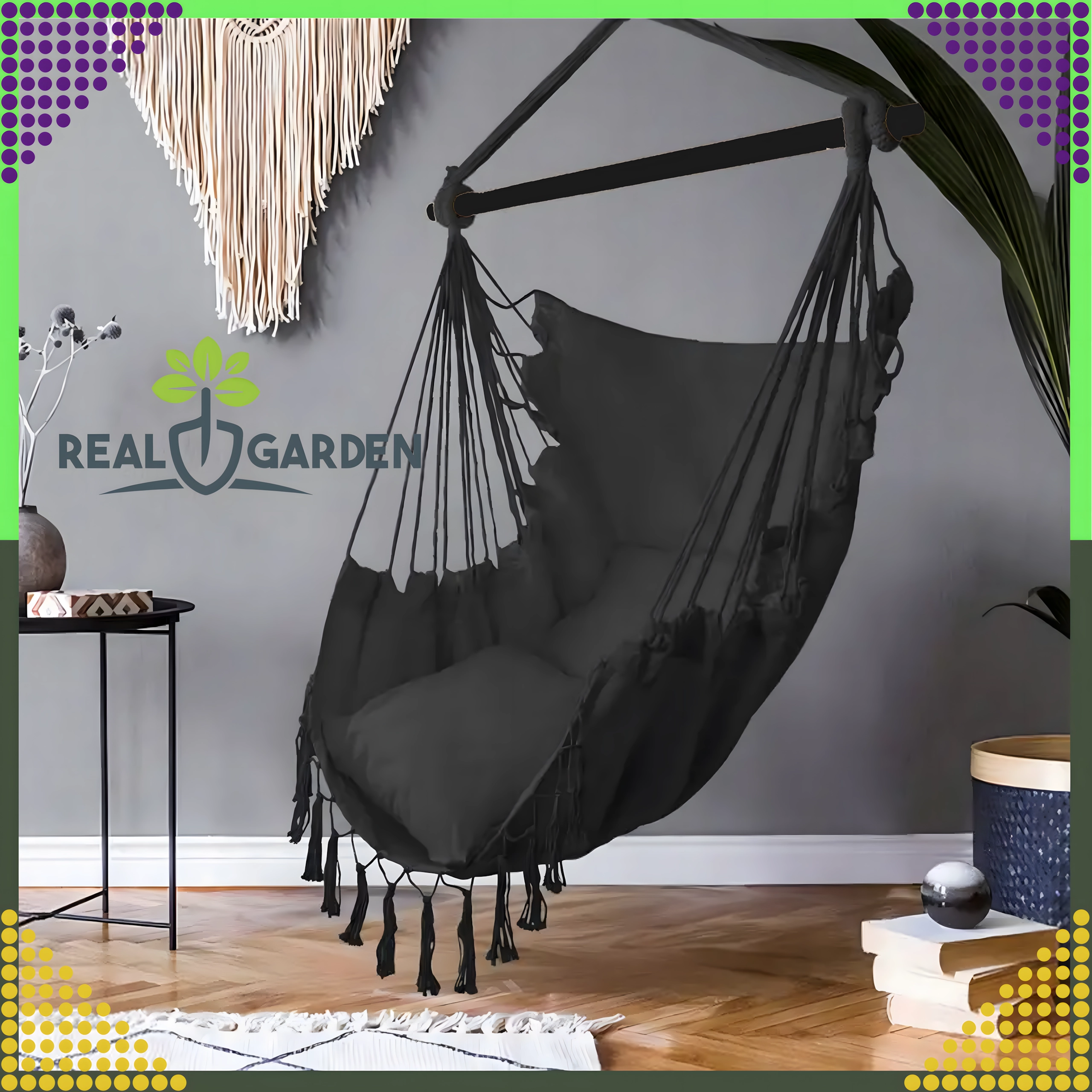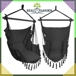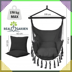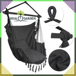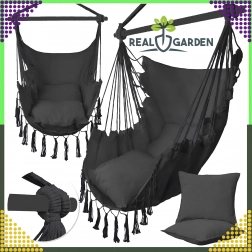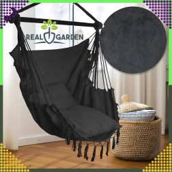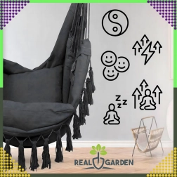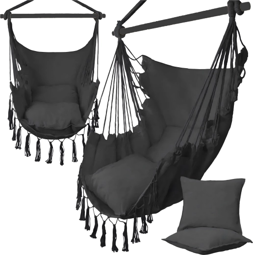 Závesné brazílske kreslo je skvelou voľbou na relax doma aj vonku. Ľahká, no pevná konštrukcia a príjemne priedušná tkanina zaistia pohodlie pri čítaní, oddychu aj jemnom hojdání, ktoré napomáha uvoľneniu celého tela. Elegantné čierne prevedenie ľahko zladíte s interiérom v boho štýle aj moderným exteriérom.