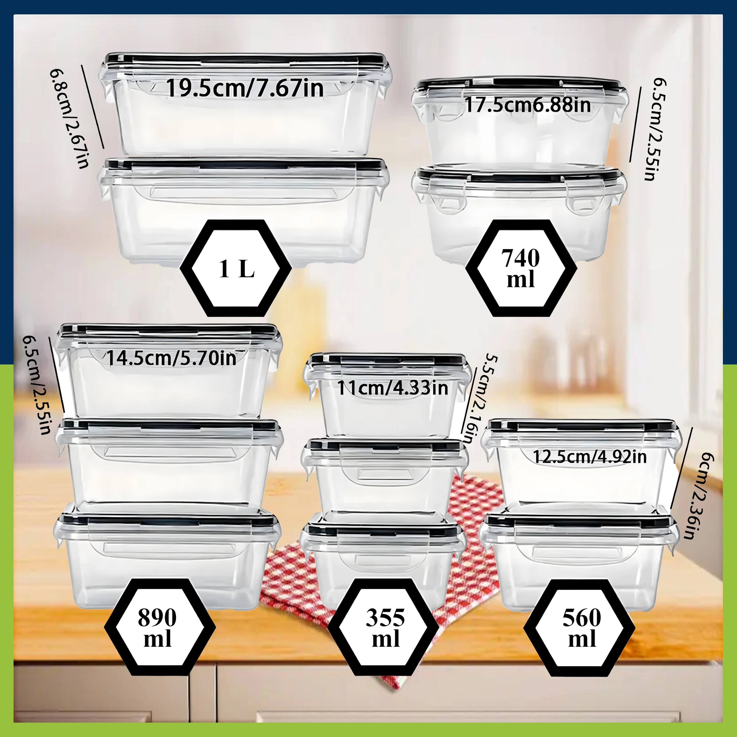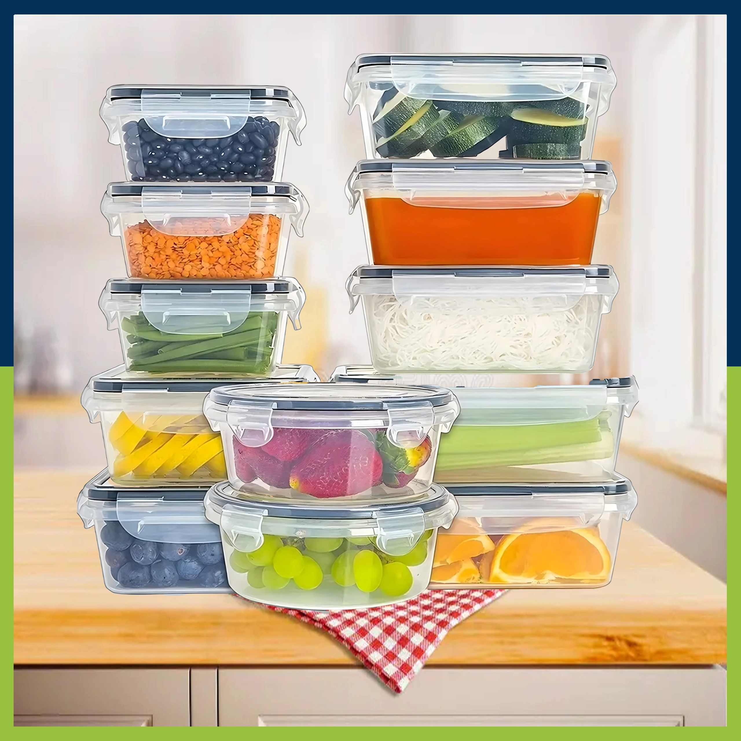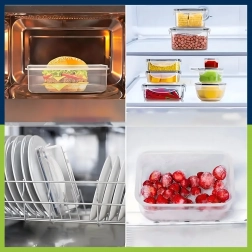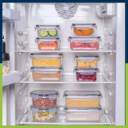 Táto všestranná sada obsahuje malé aj väčšie nádoby na desiaty, ovocie, zeleninu, zvyšky jedál aj prípravu meal prepu. Priehľadné steny uľahčujú rýchlu identifikáciu obsahu a pevné viečka so západkami zaisťujú spoľahlivú tesnosť proti únikom tekutín a pachov.