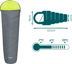 Duté vlákno Hollow Fiber 170 g/m² efektívne zadržiava teplo a zabezpečuje komfortnú teplotu v rozmedzí +6 až +10 °C s extrémnou hranicou až -7 °C. Vďaka hmotnosti iba 0,8 kg a kompaktným rozmerom po zbalení sa skvele hodí na trekking, stanovanie aj festivaly. V balení nechýba praktický transportný obal.
